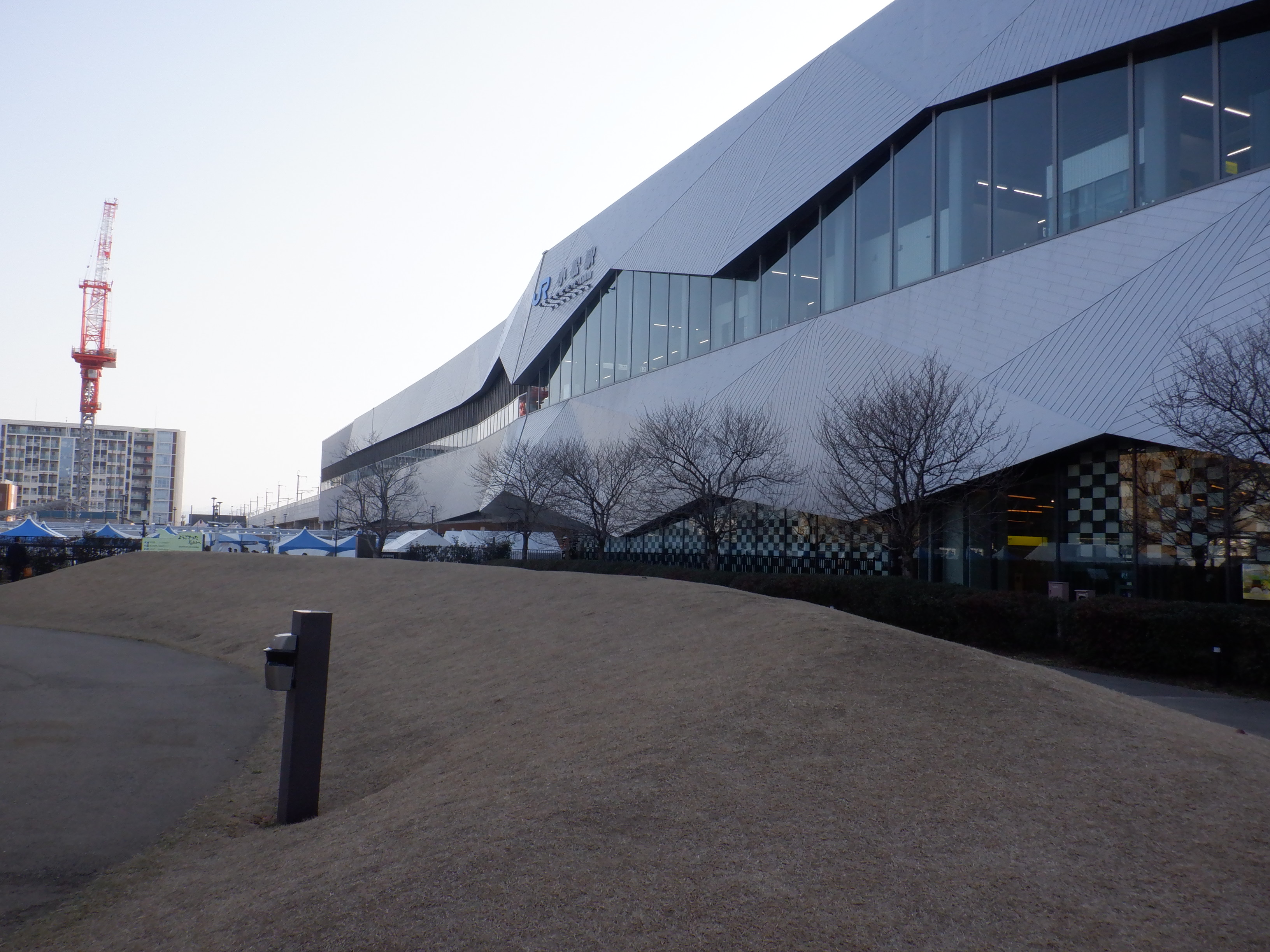 東口の様子。こちらは新幹線開業記念イベントの準備中でした。