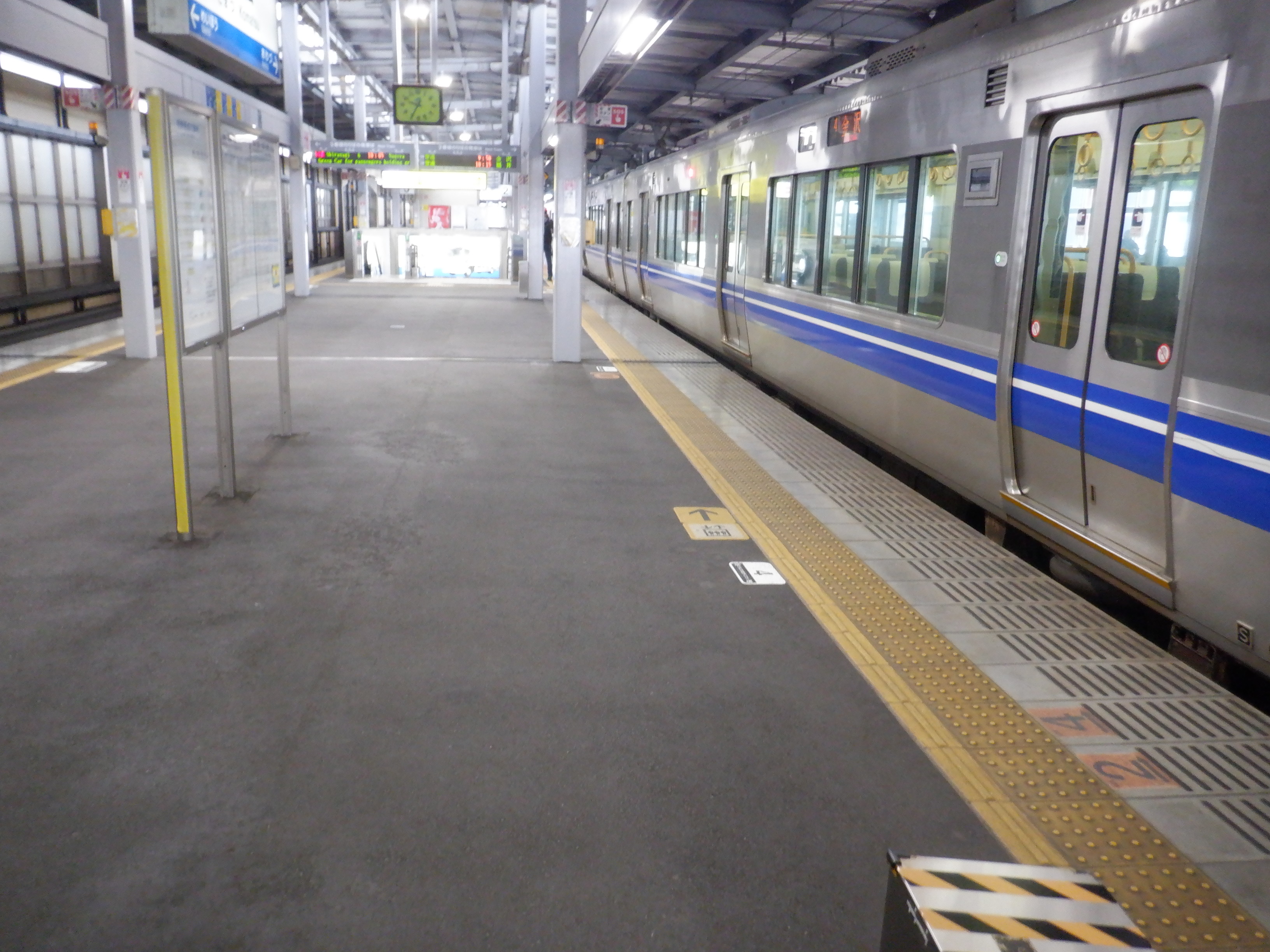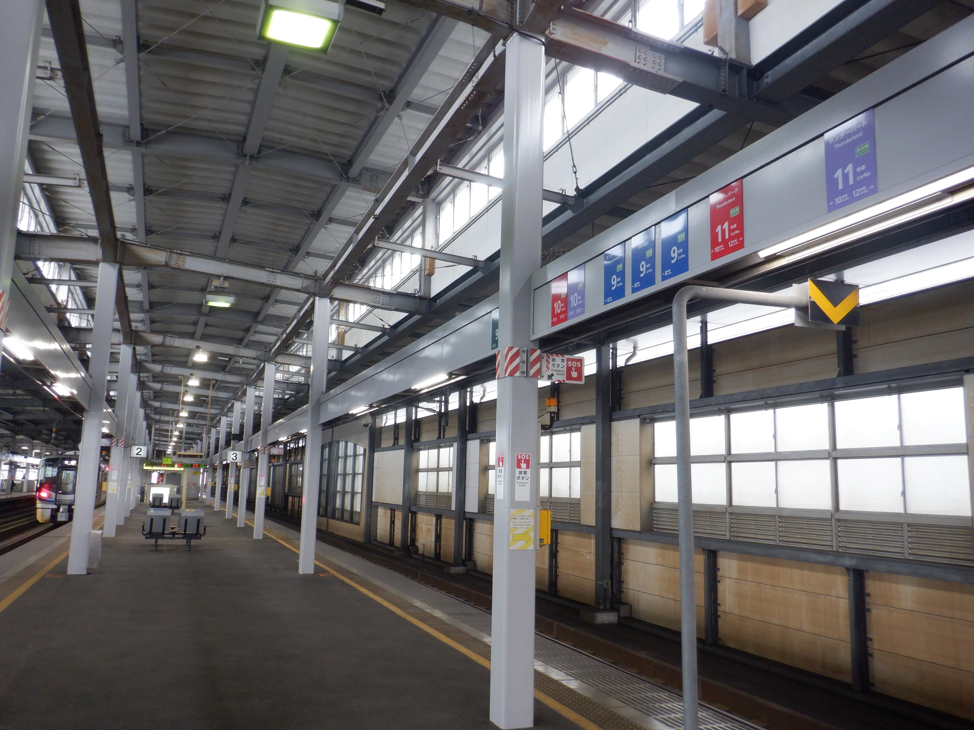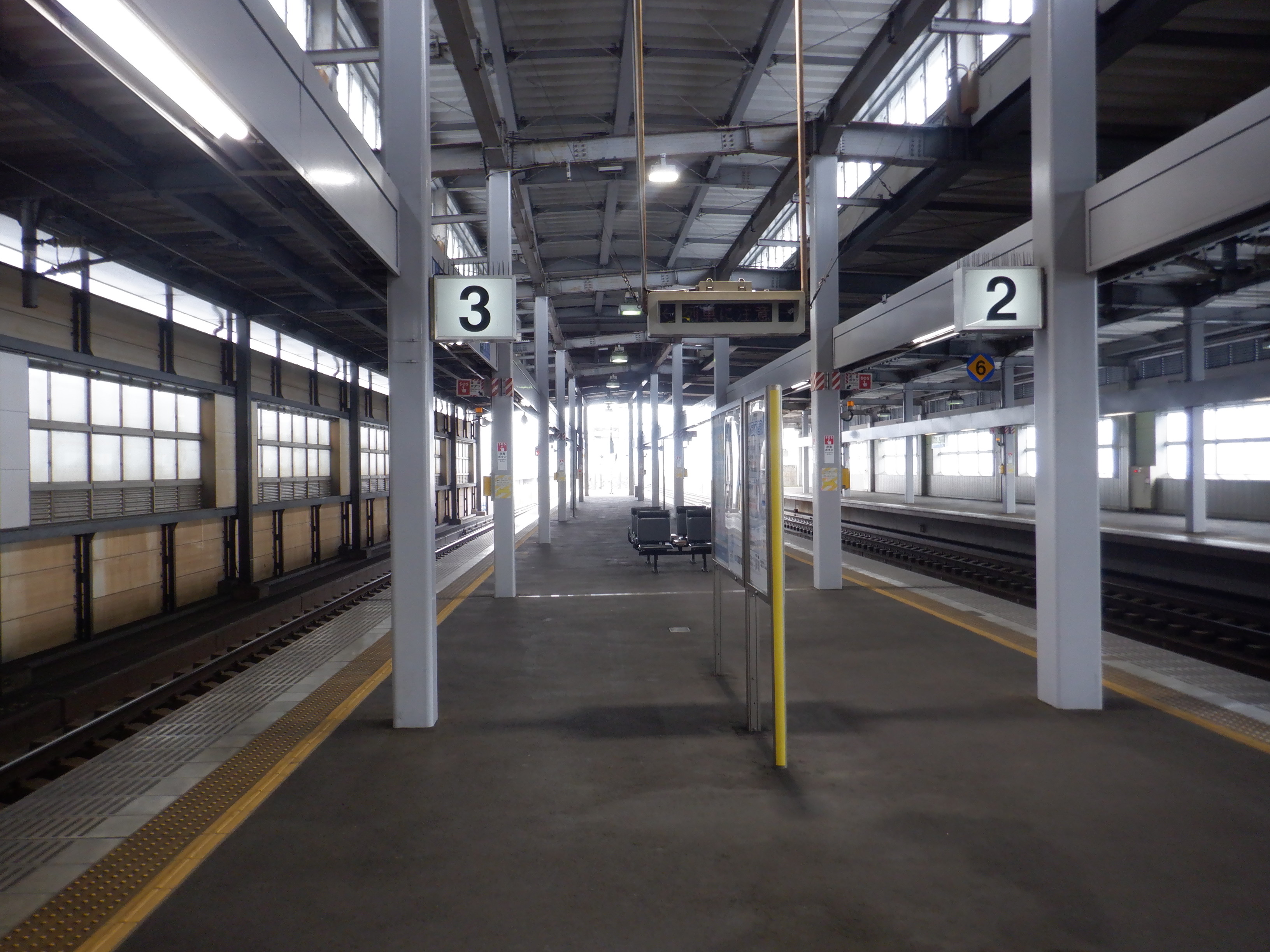 中二階正面の案内もシールが貼られているようです。また、特急列車の乗車位置案内は撤去されています。
