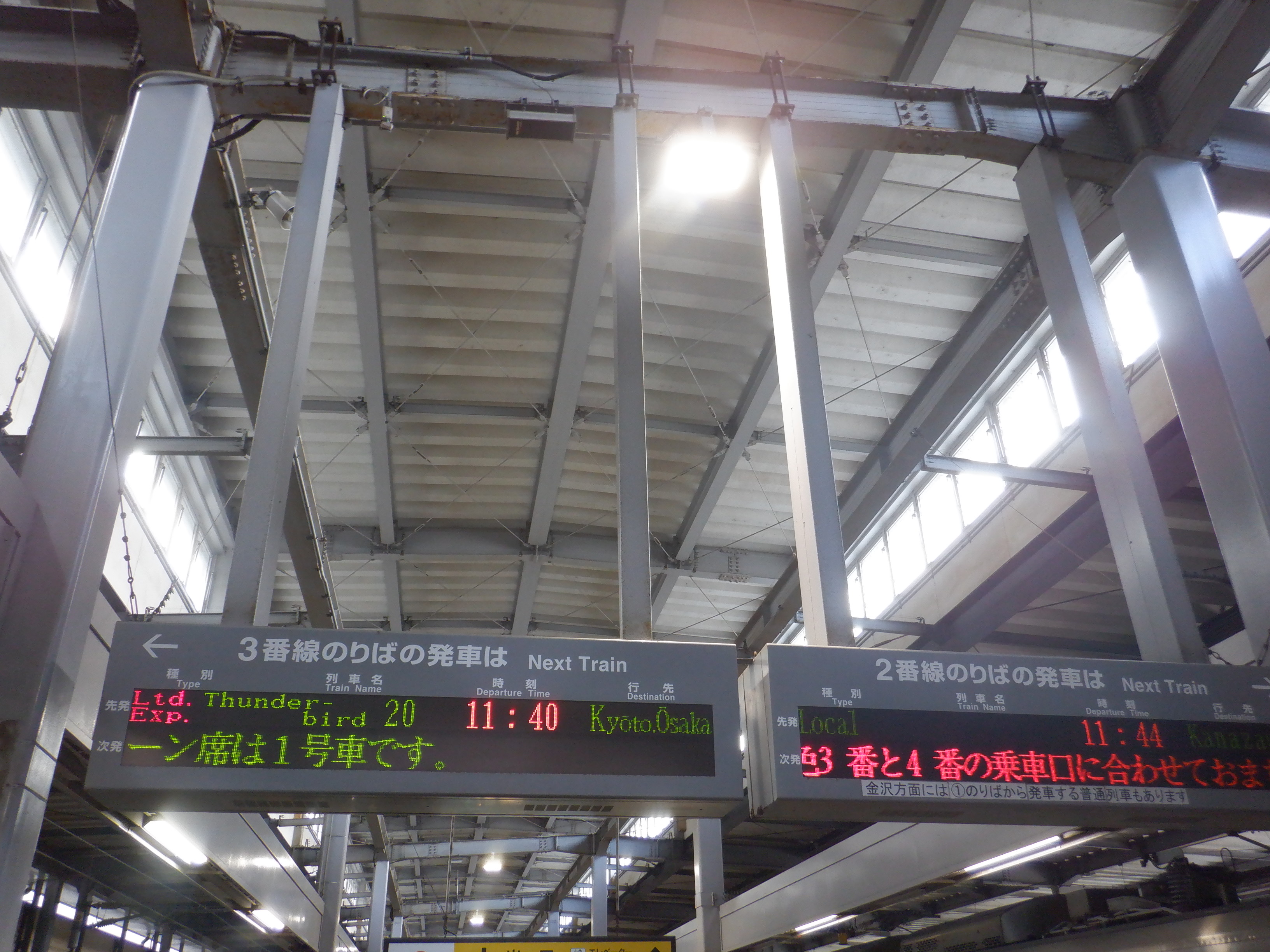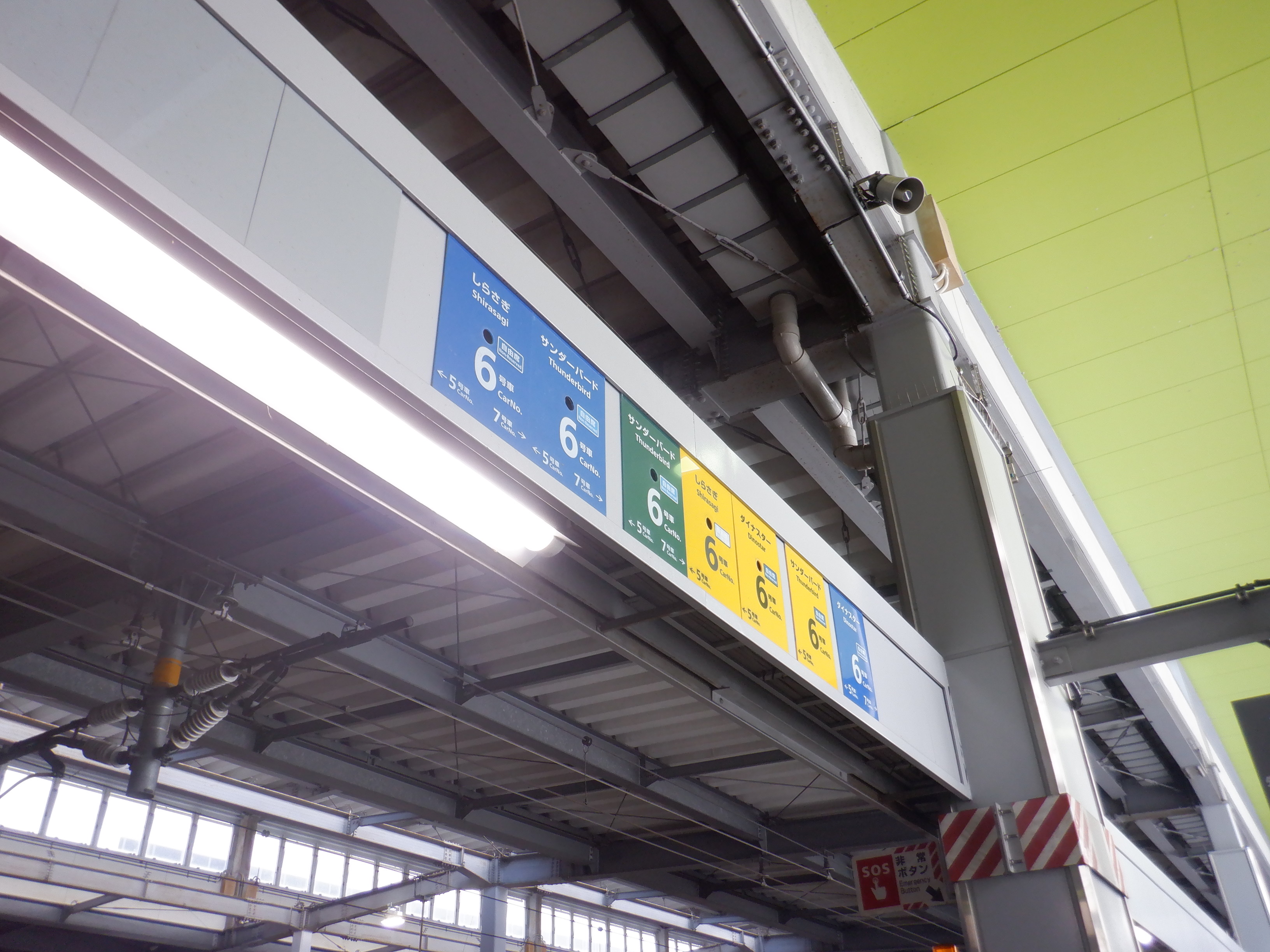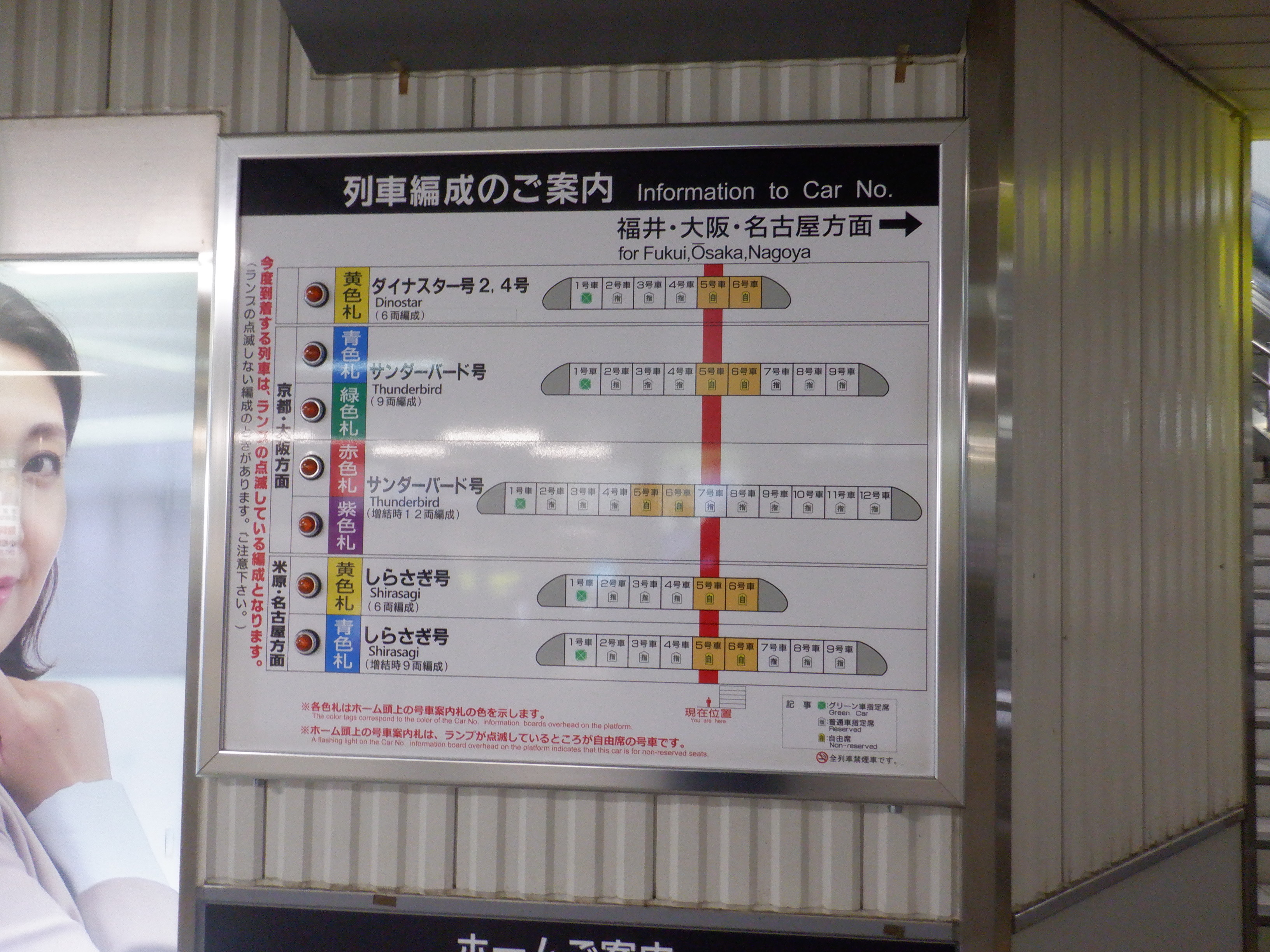 中二階正面の案内もシールが貼られているようです。また、特急列車の乗車位置案内は撤去されています。