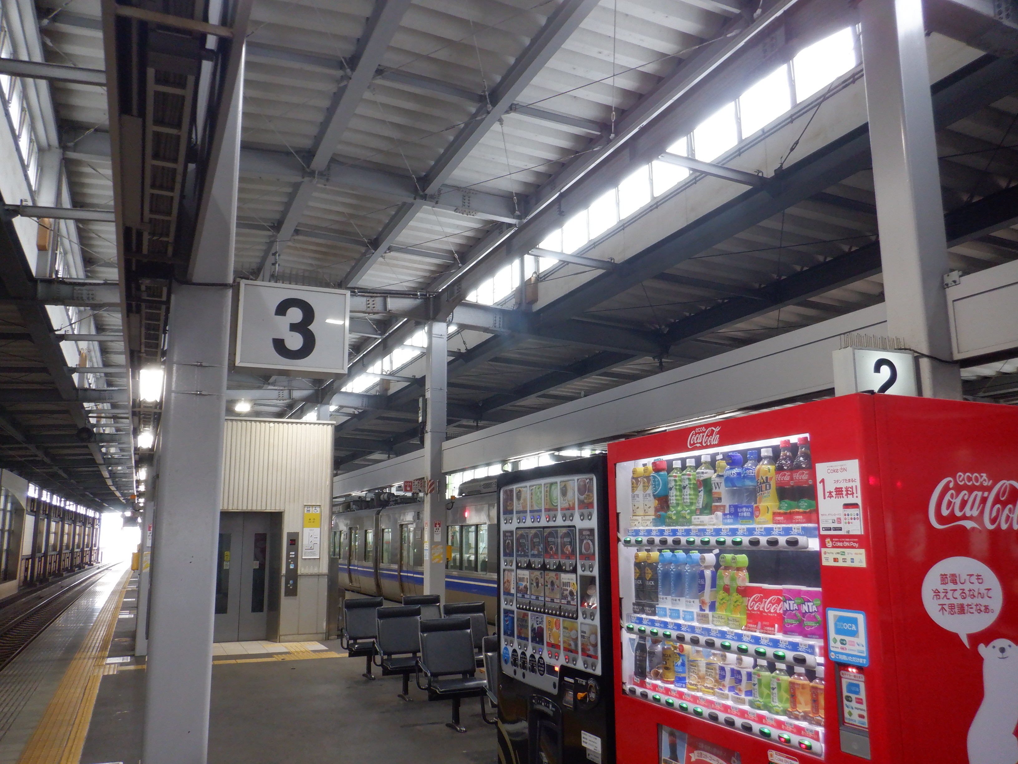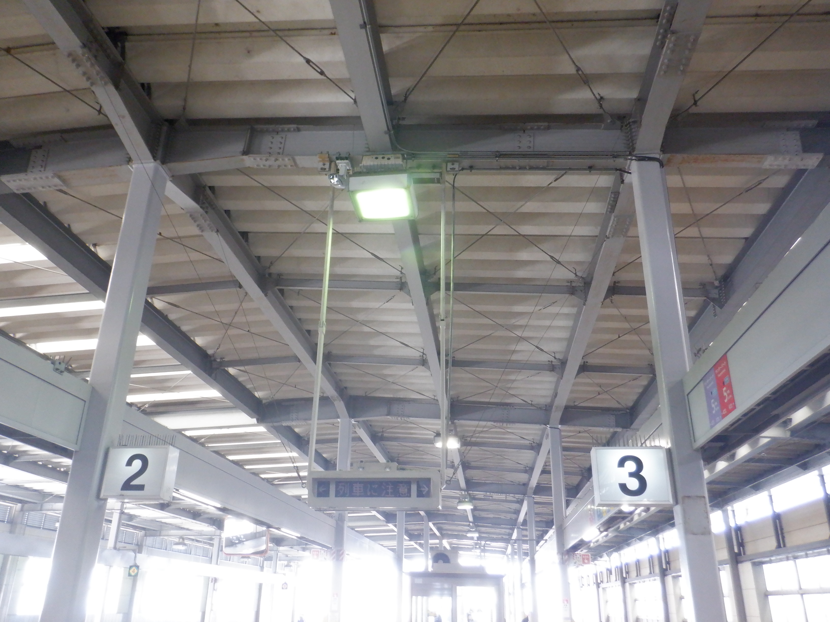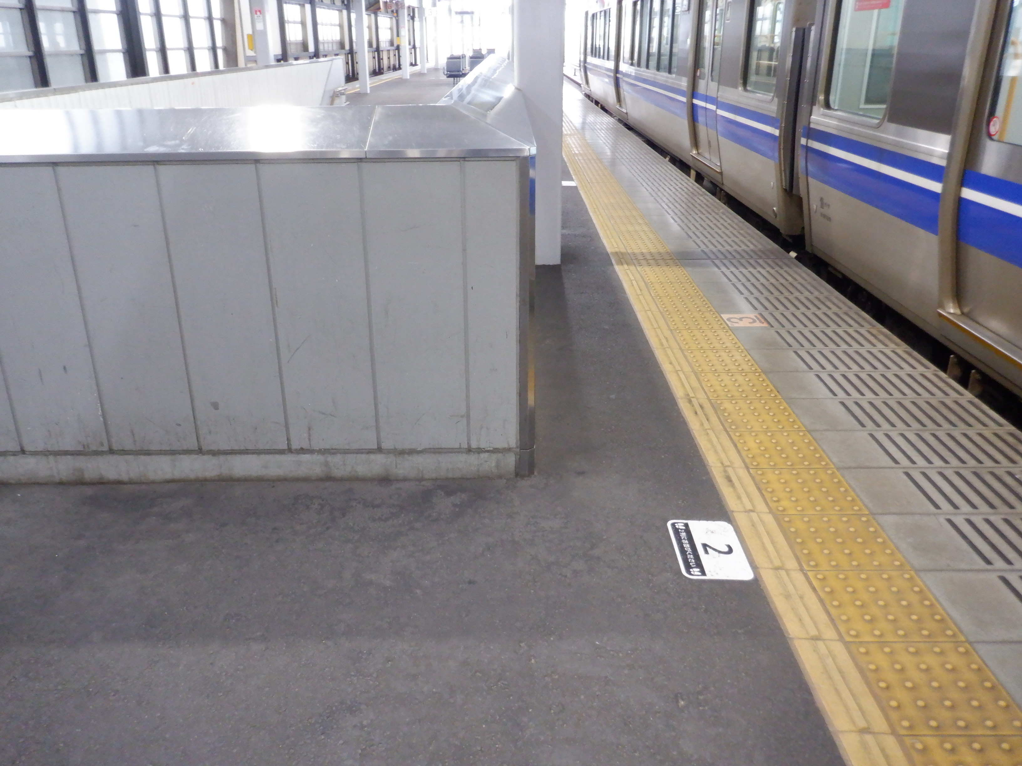 2・3番のりば番線標。一部切れています。