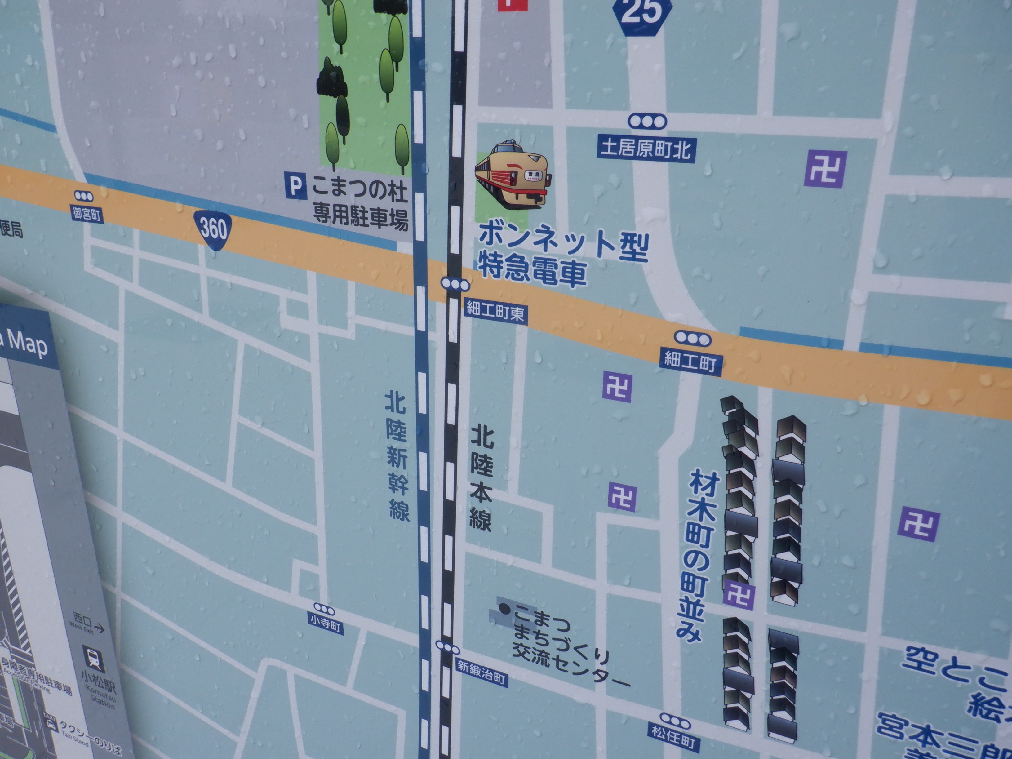 東口の地図には「北陸新幹線」と「北陸本線」が同時に存在しています。