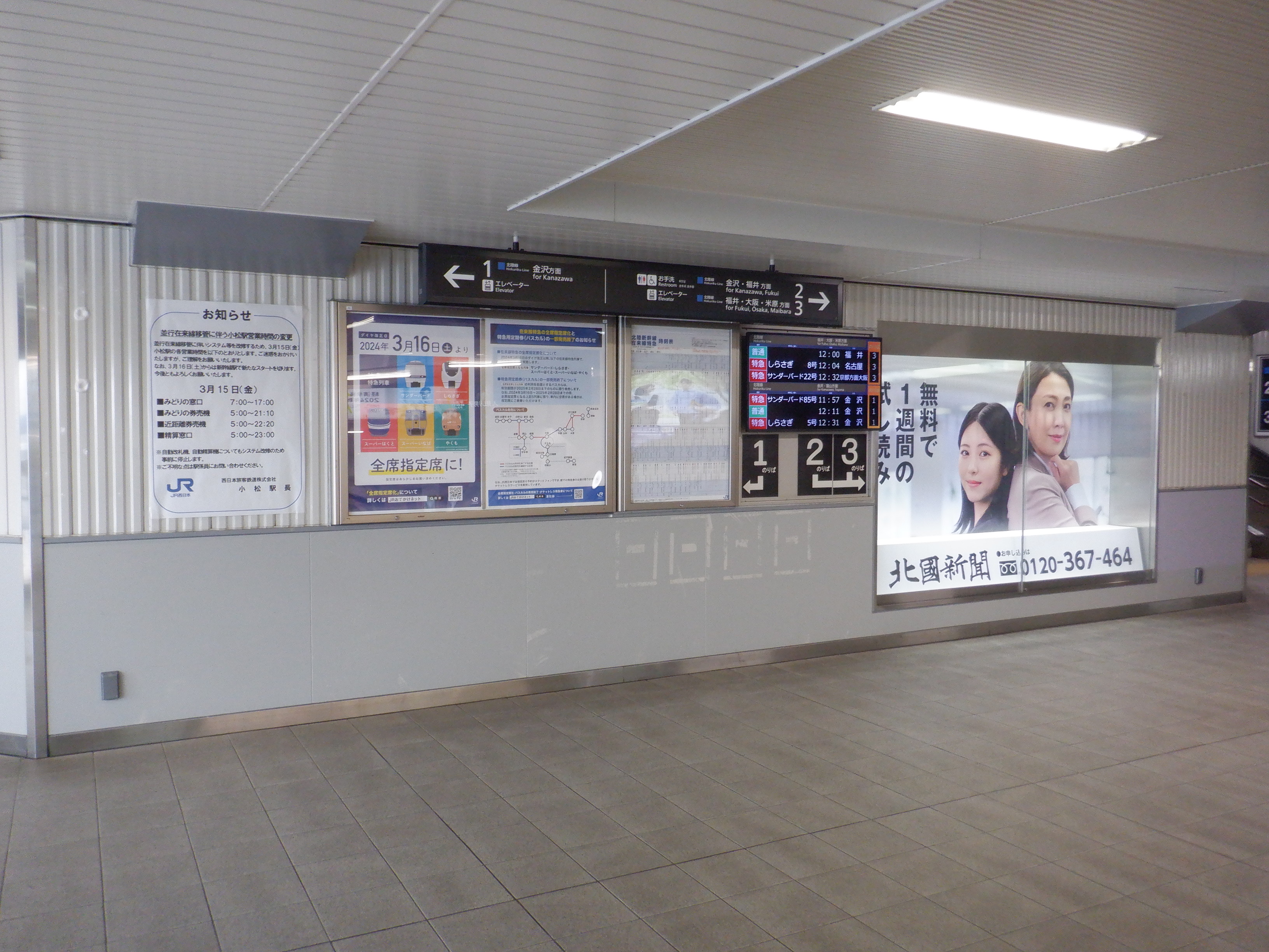 3月になり、各案内がIRいしかわ鉄道開業に向けてのものに変わっていました。