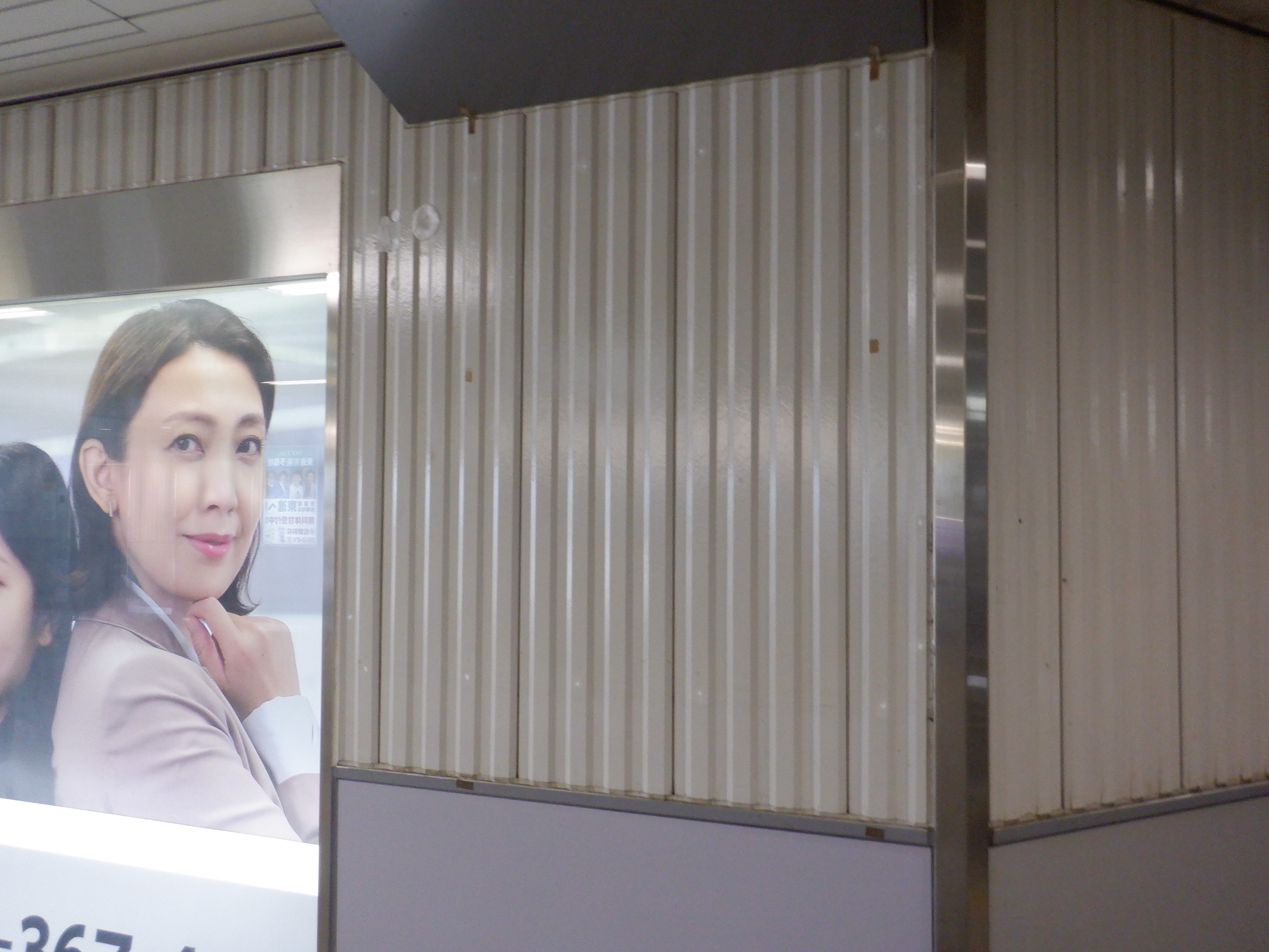 改札口付近の案内もシールが貼られているように見えます。
