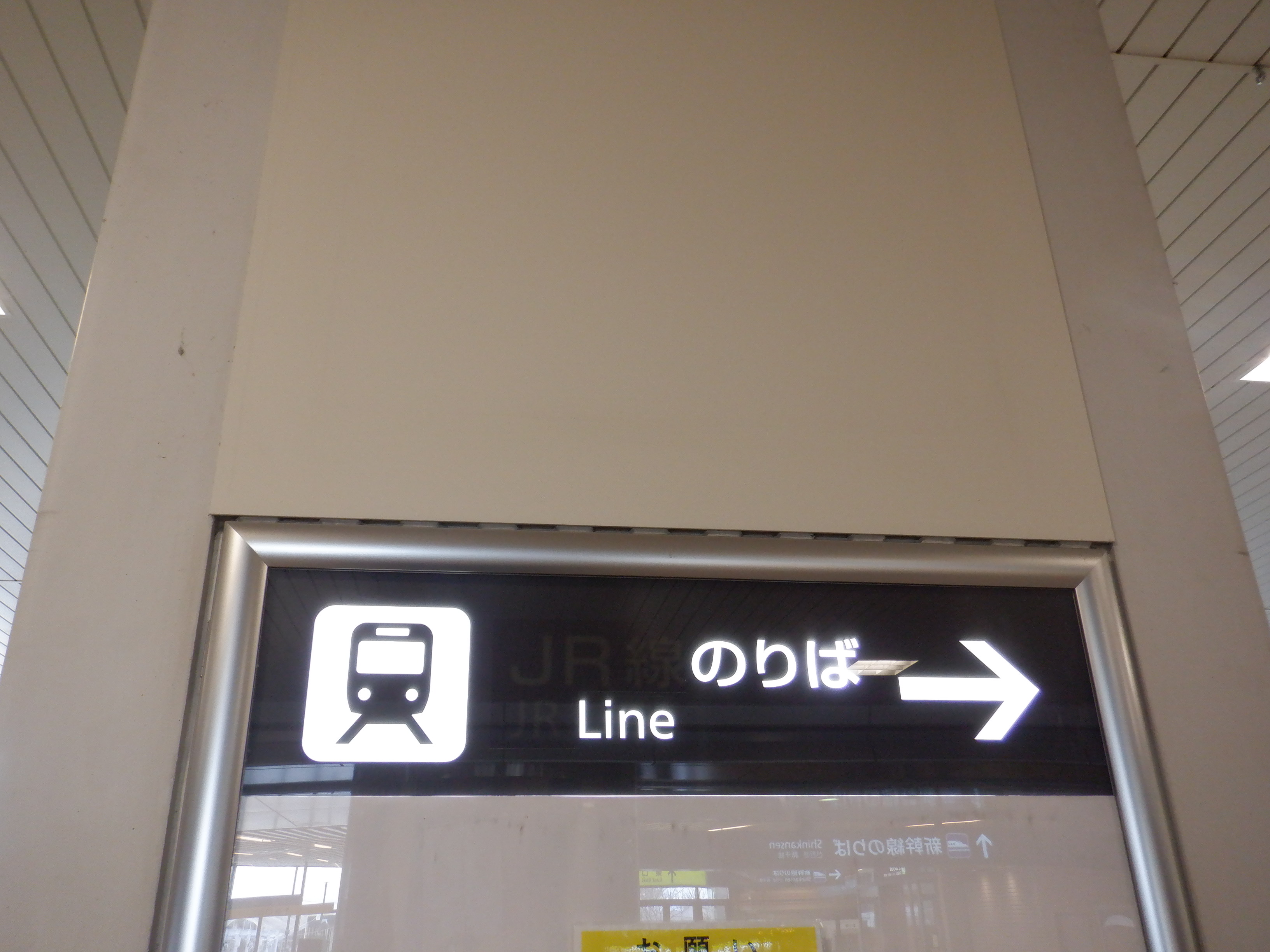 JR線のりばの案内はシールが貼られていると思われるところと「JR線」が隠されたところがあります。