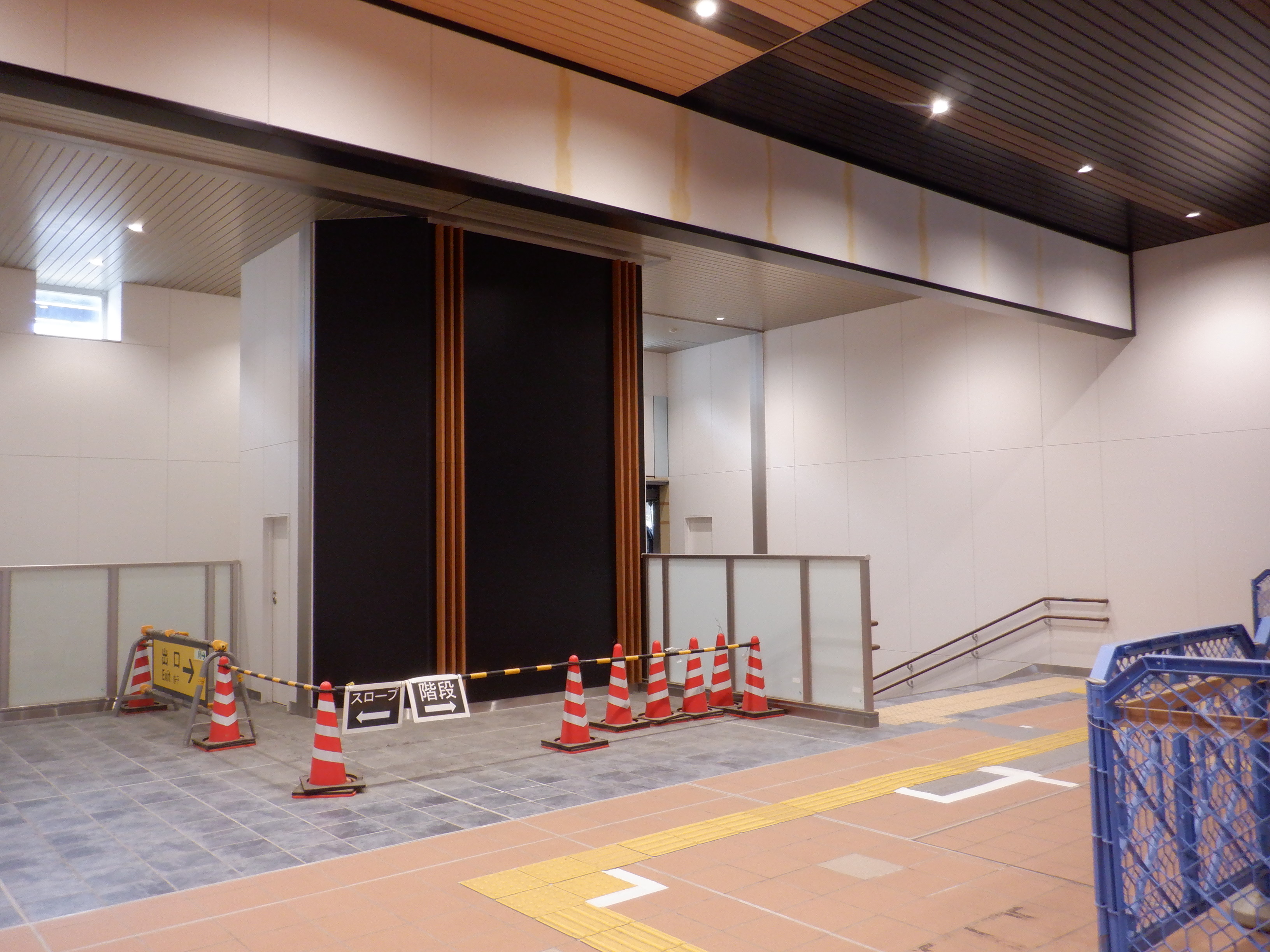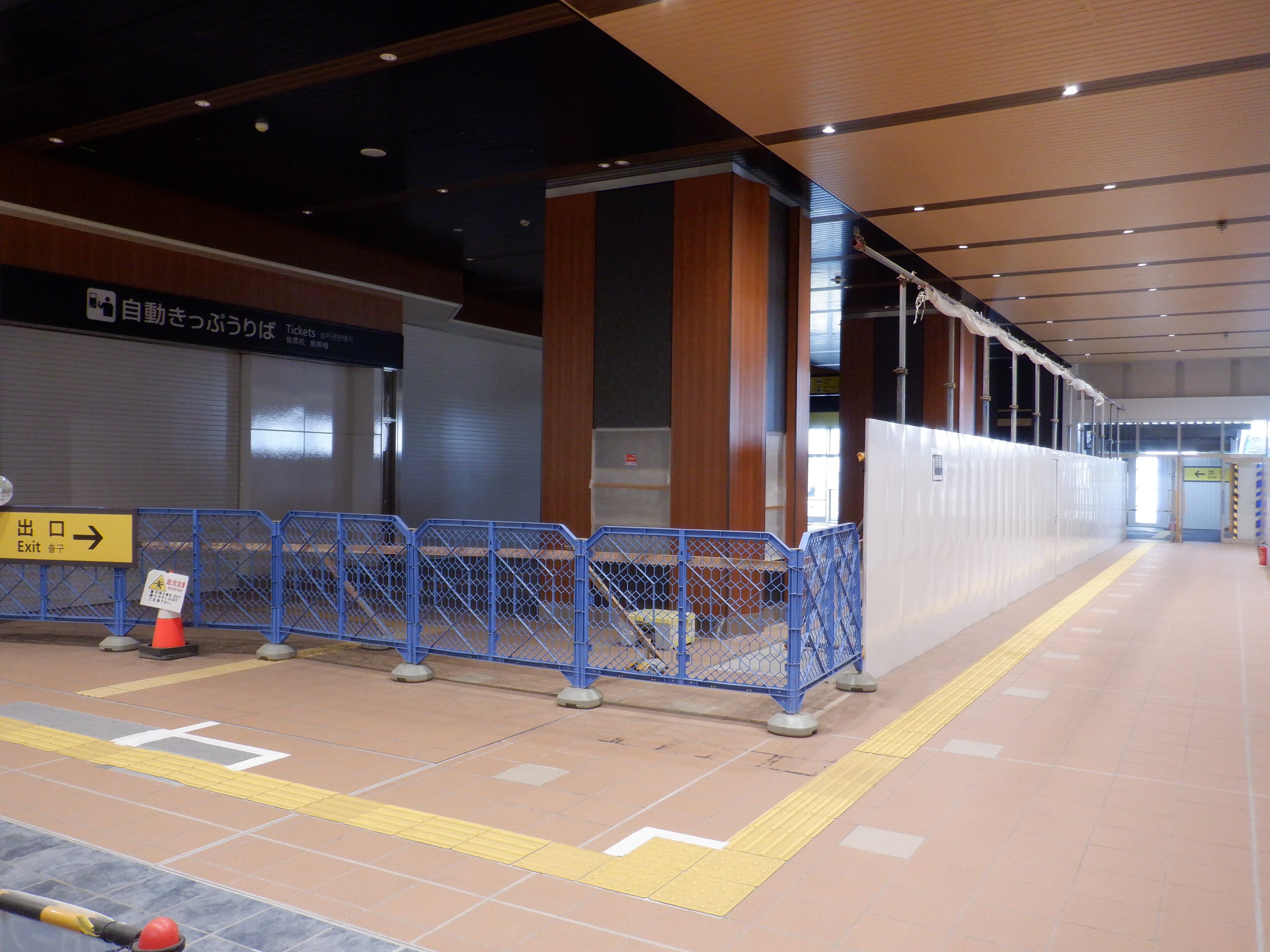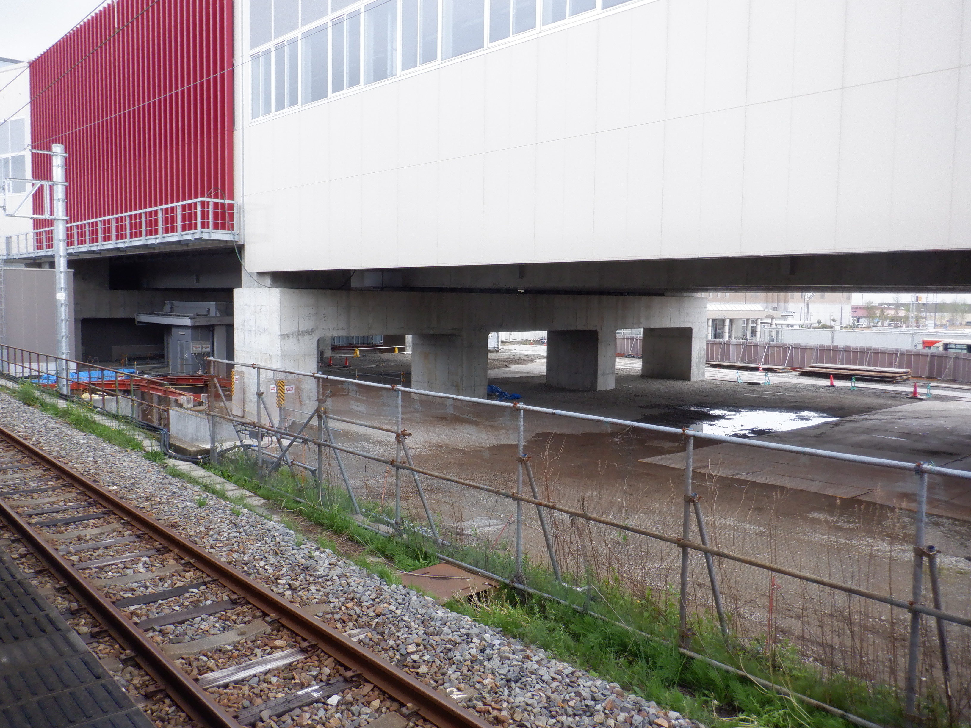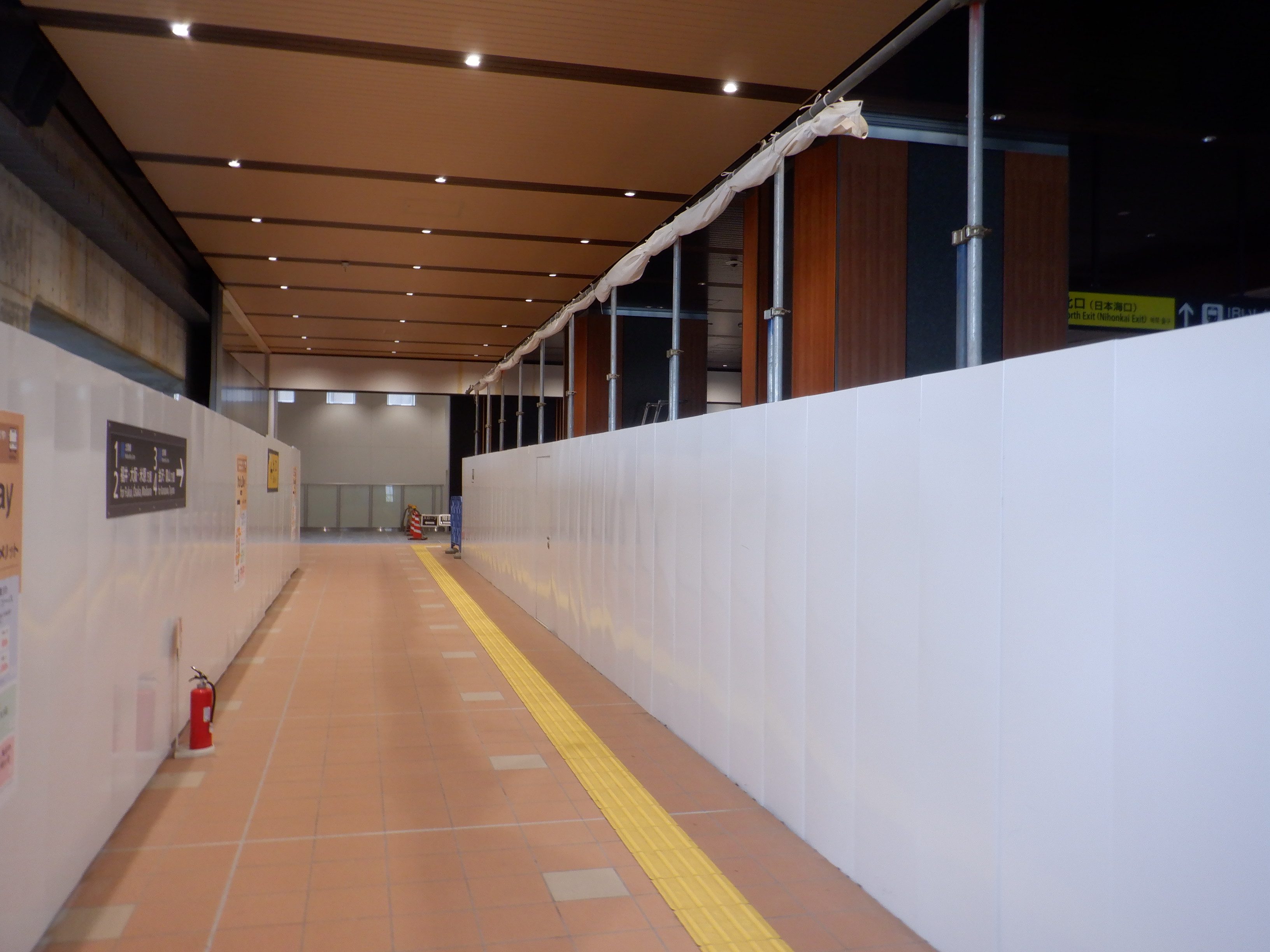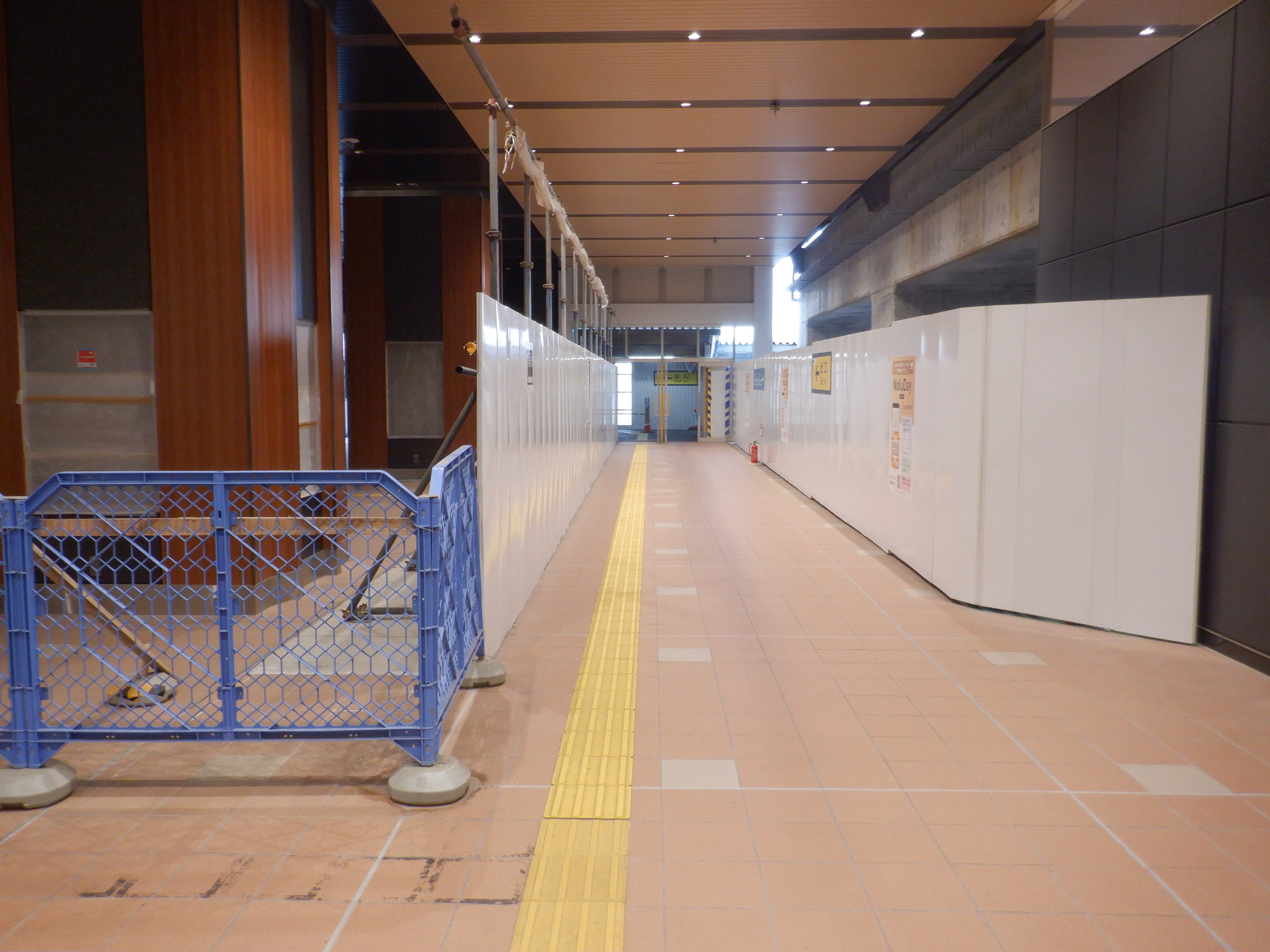 1・2番のりばから見た地下自由通路を再建設中のところ。