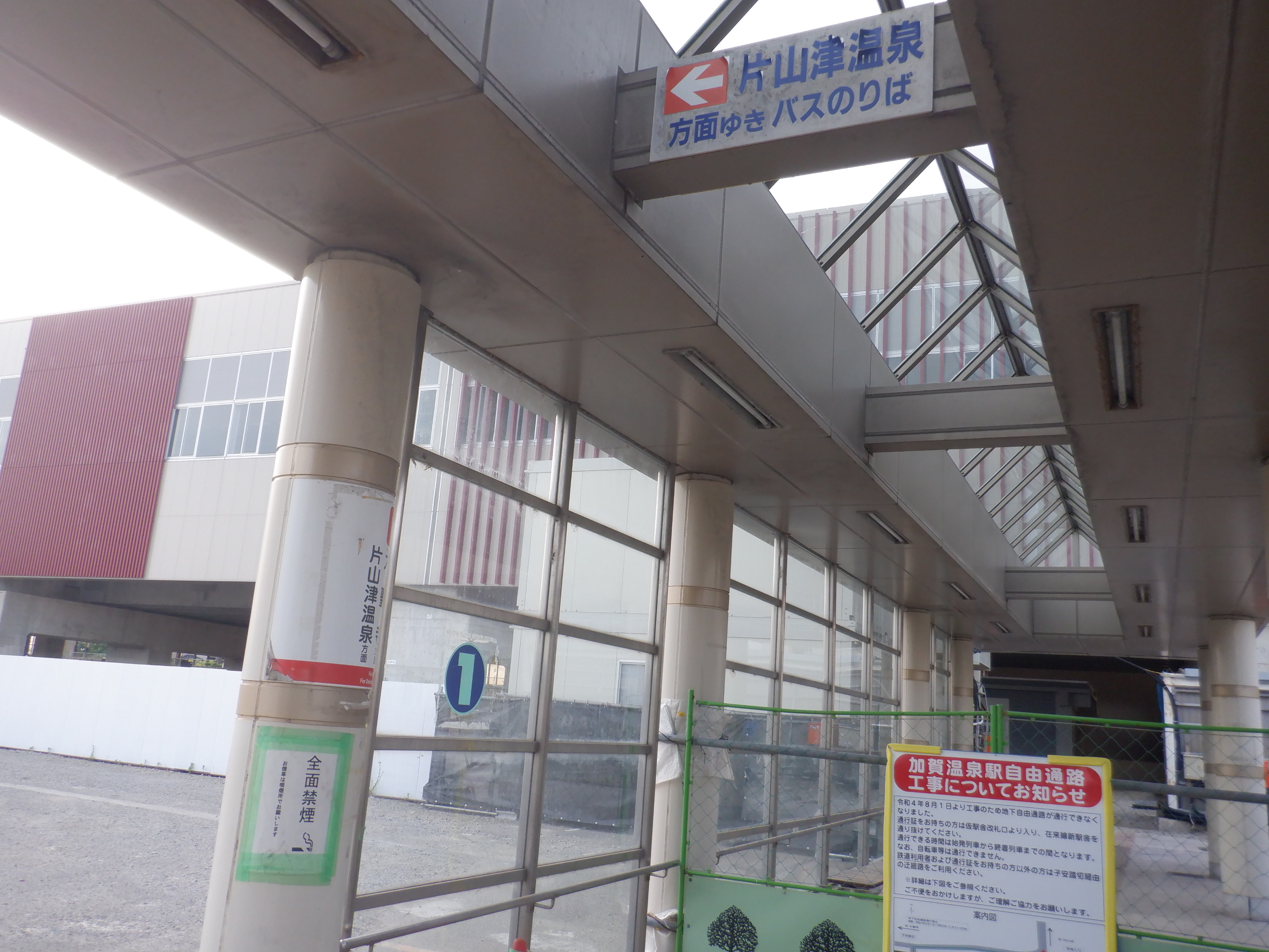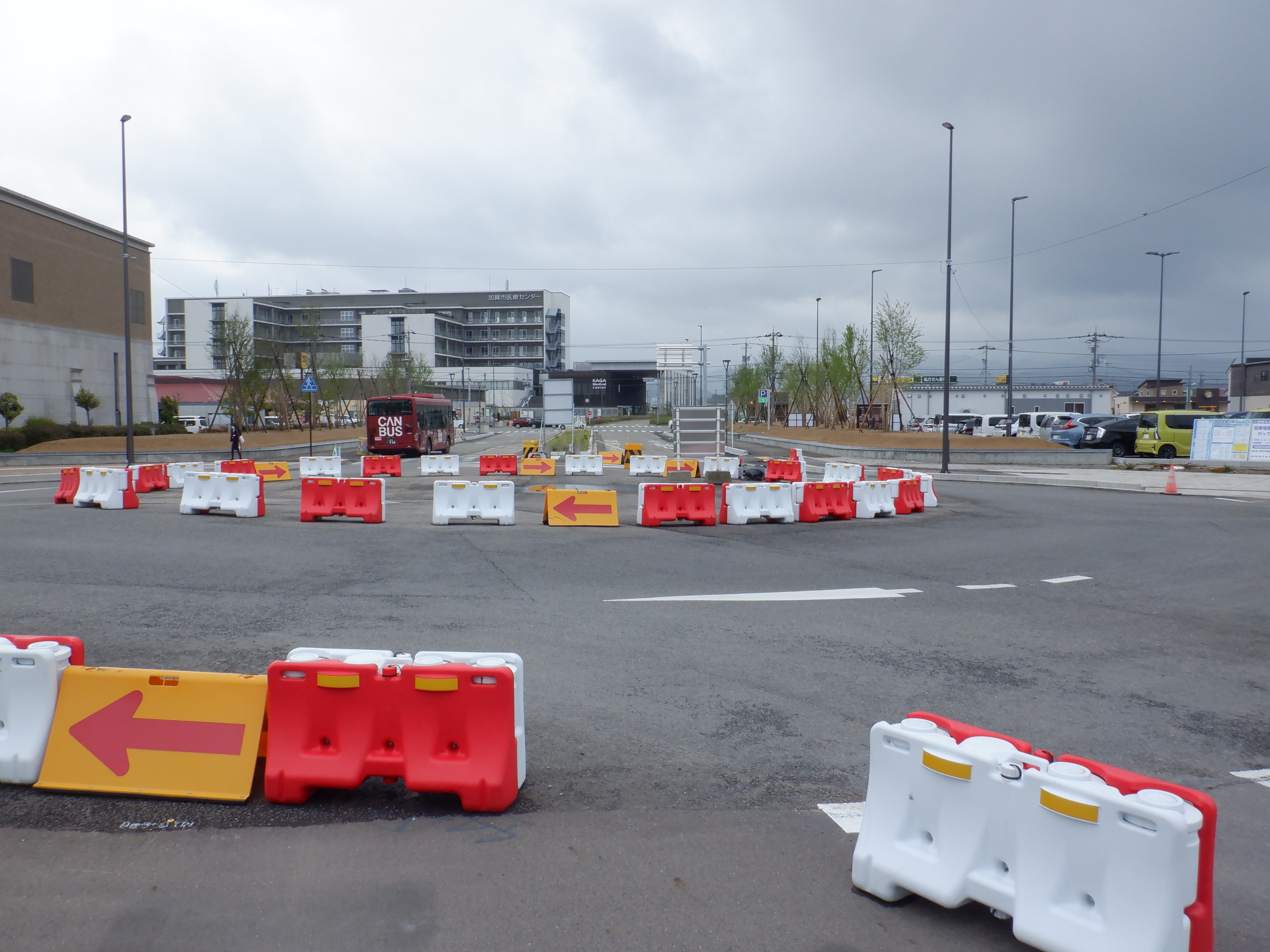 バスのりば移動の案内。今回でこの仮設バスのりばを見るのが最後になります。