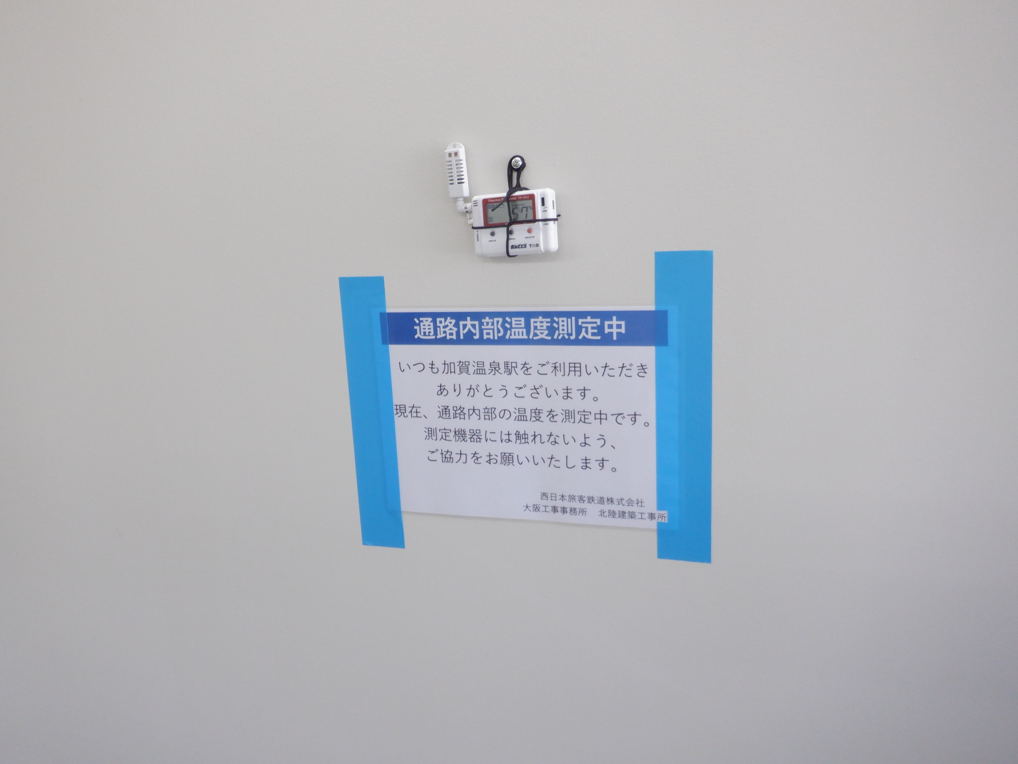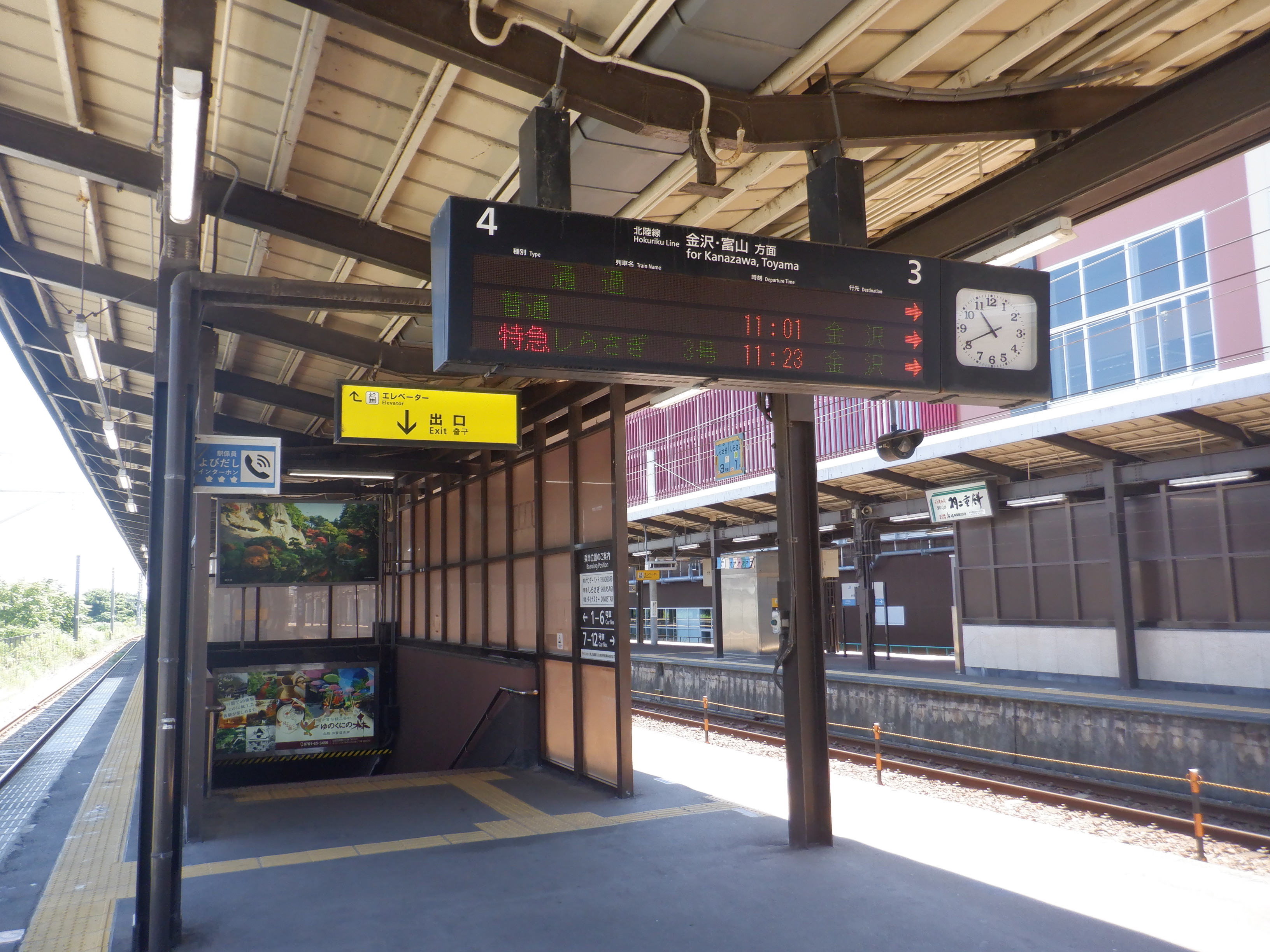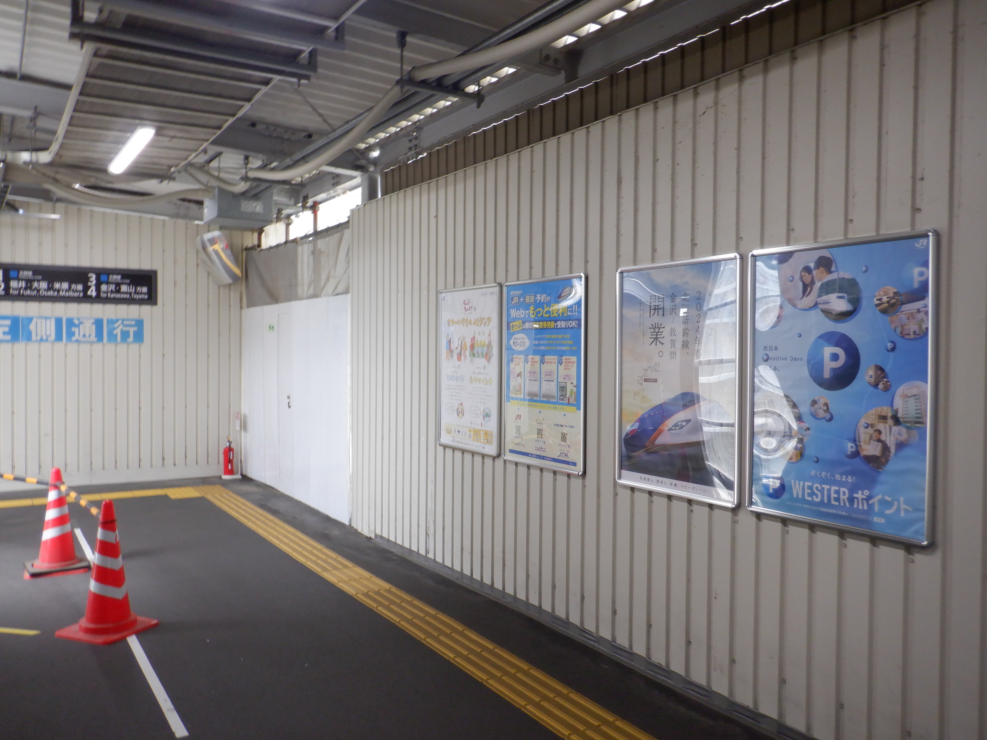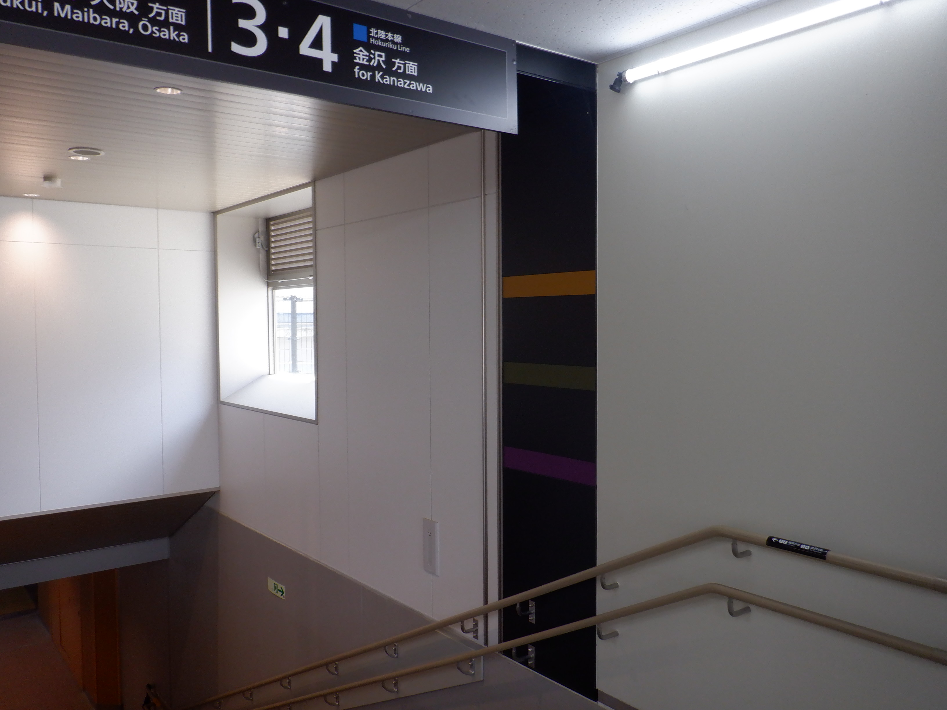 仮設通路を通りホームへ。IRいしかわ鉄道の文字が見えるようになりました。