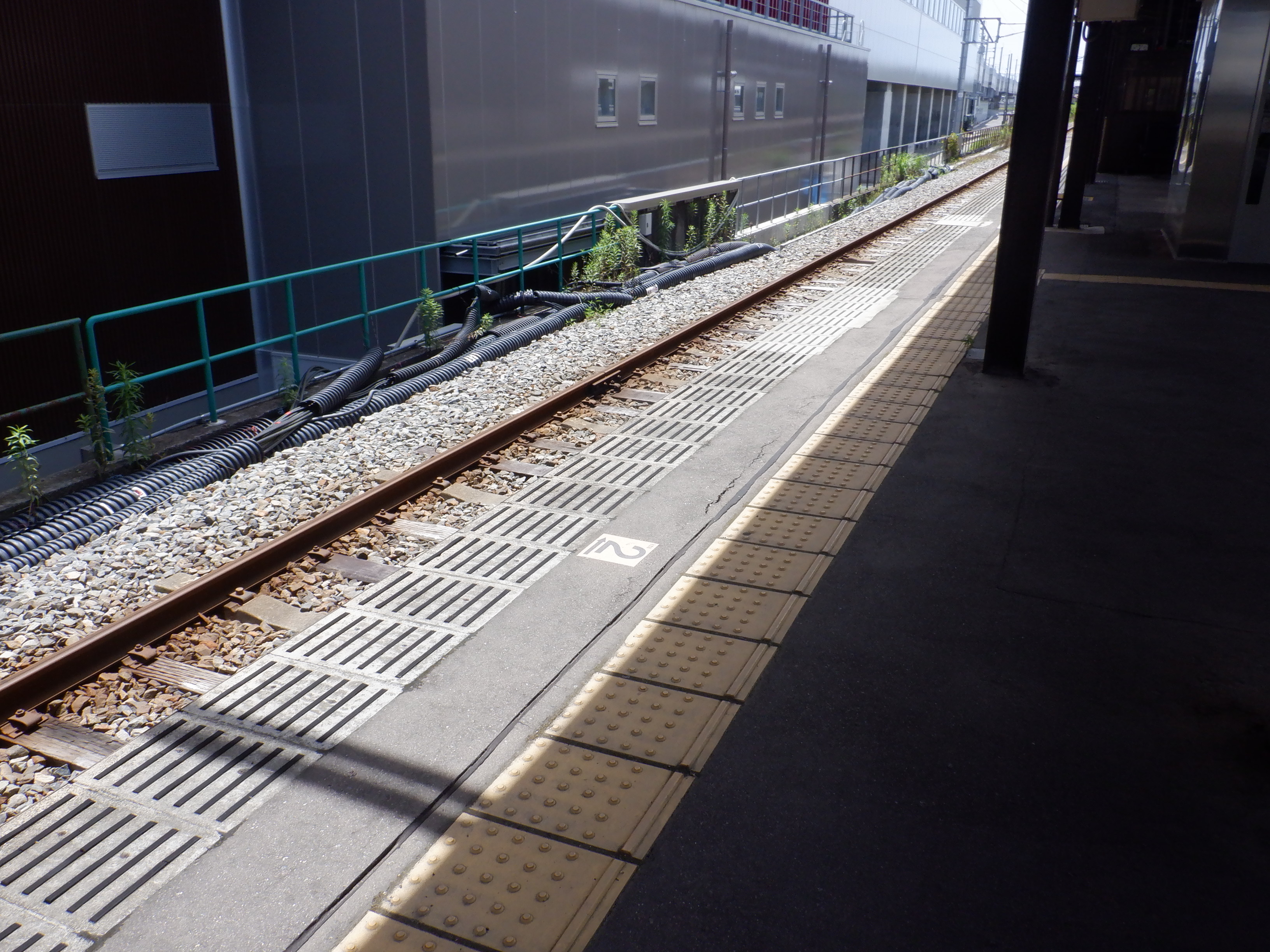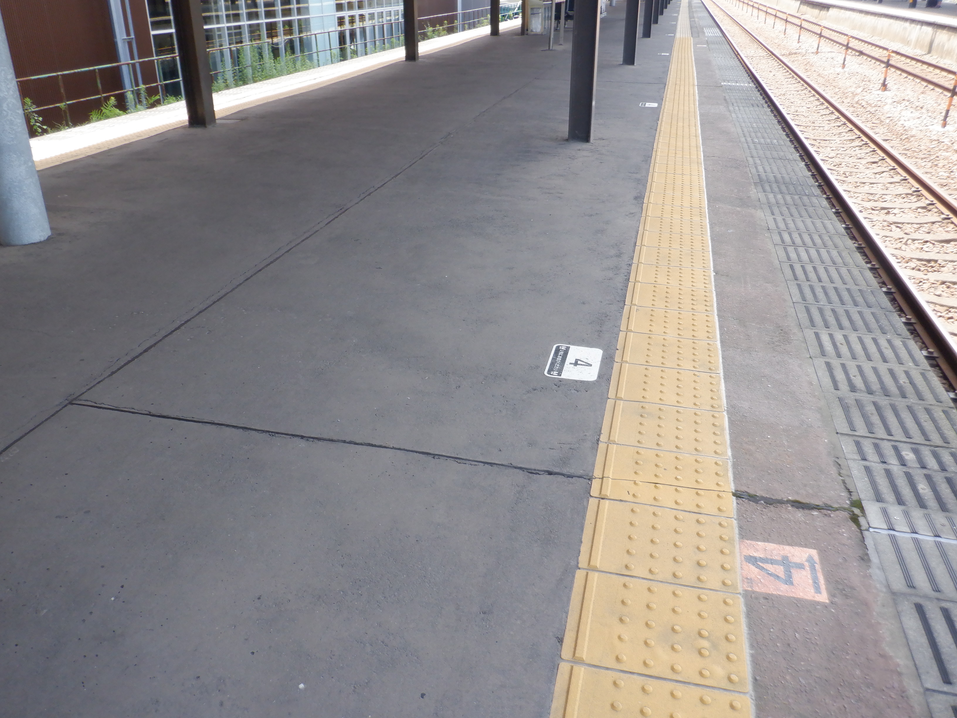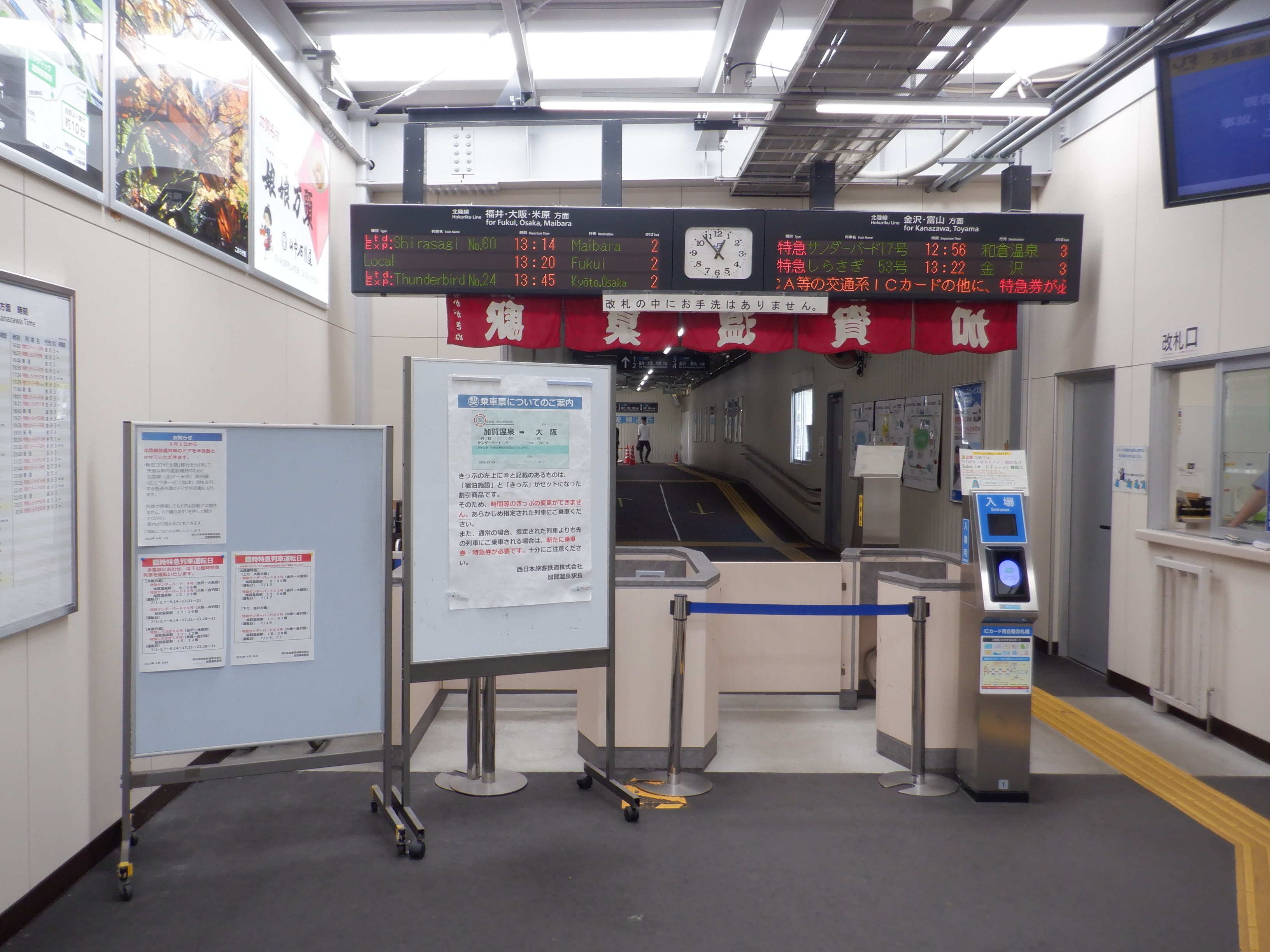 仮設通路を通りホームへ。IRいしかわ鉄道の文字が見えるようになりました。