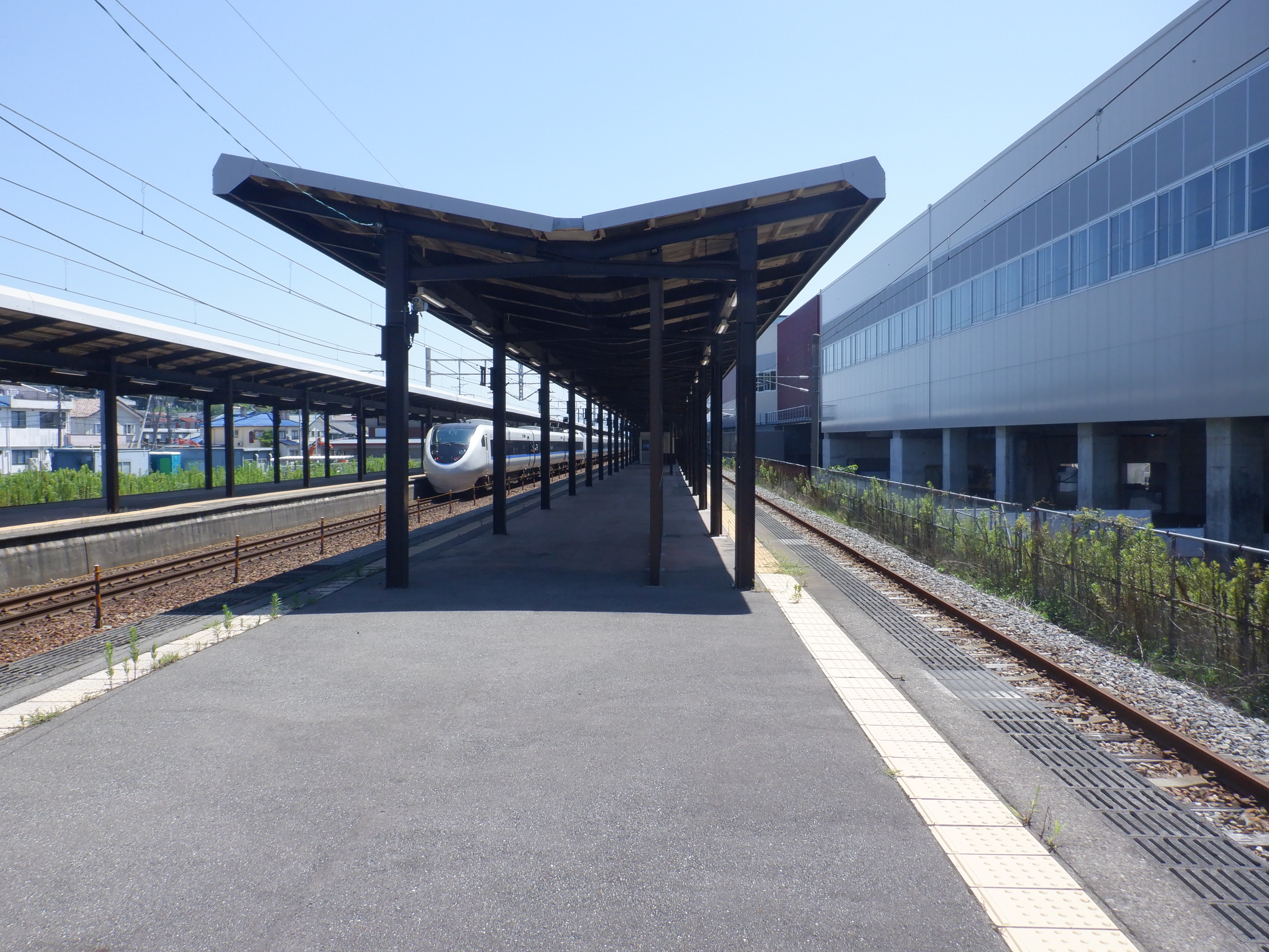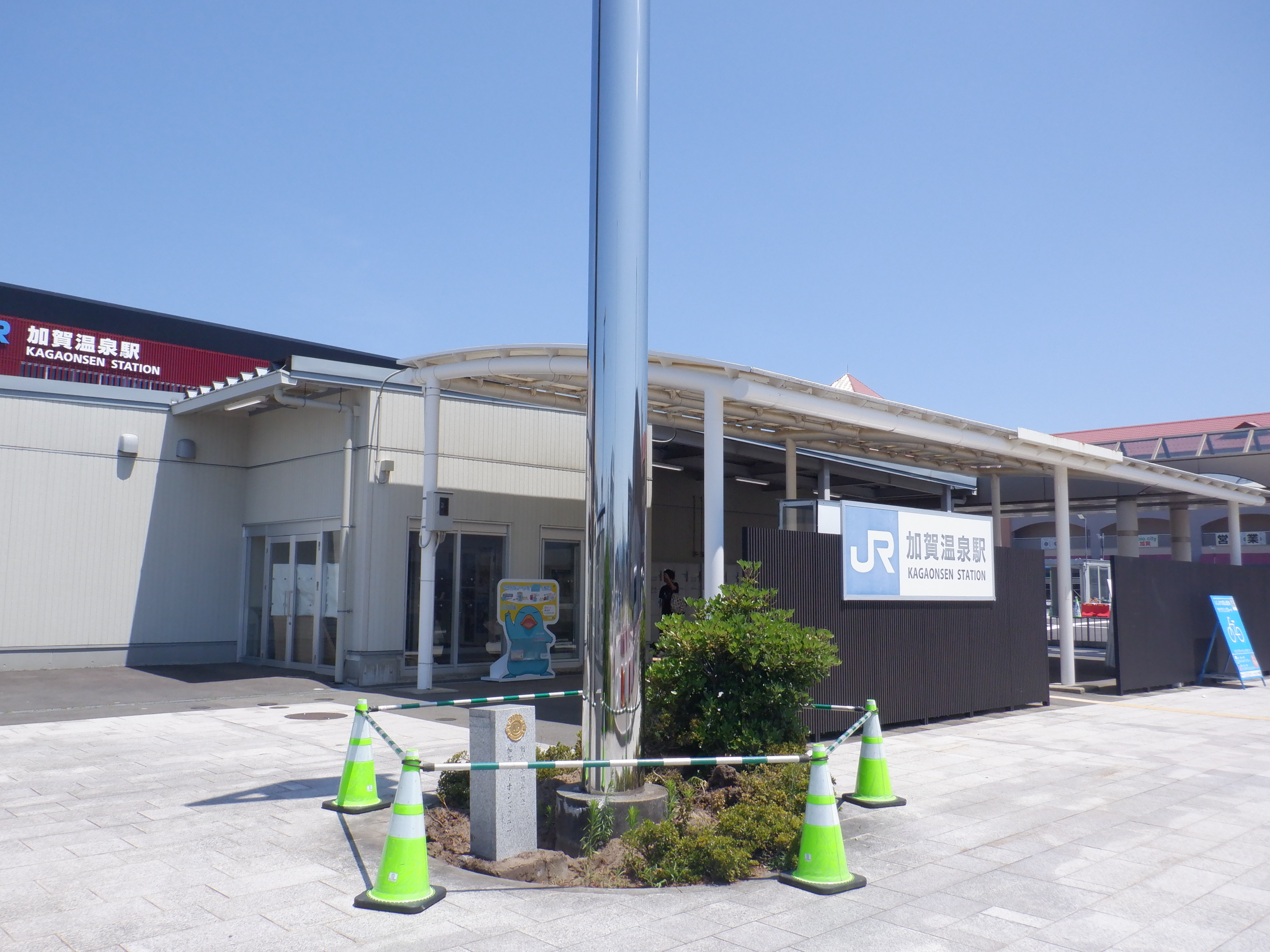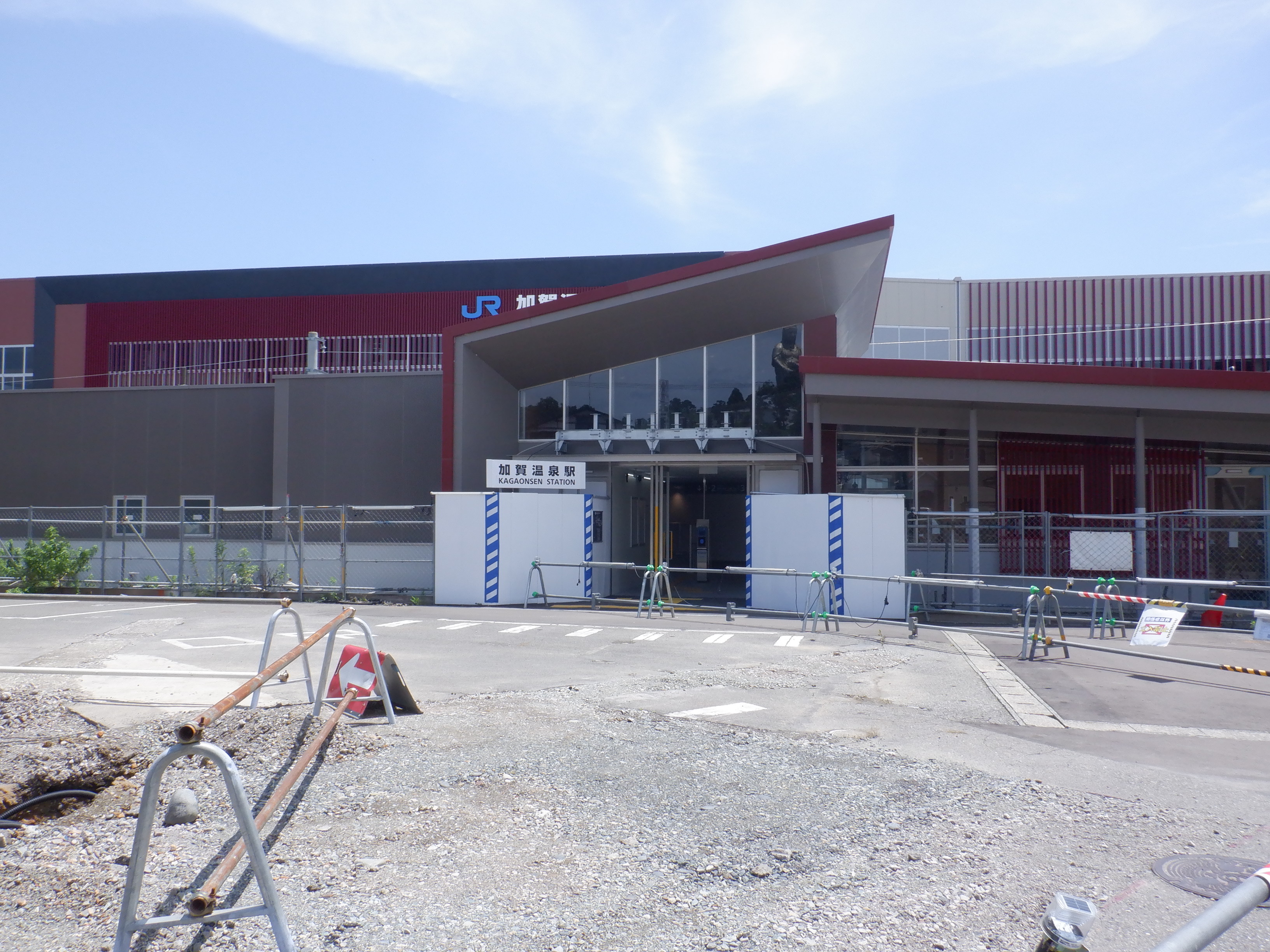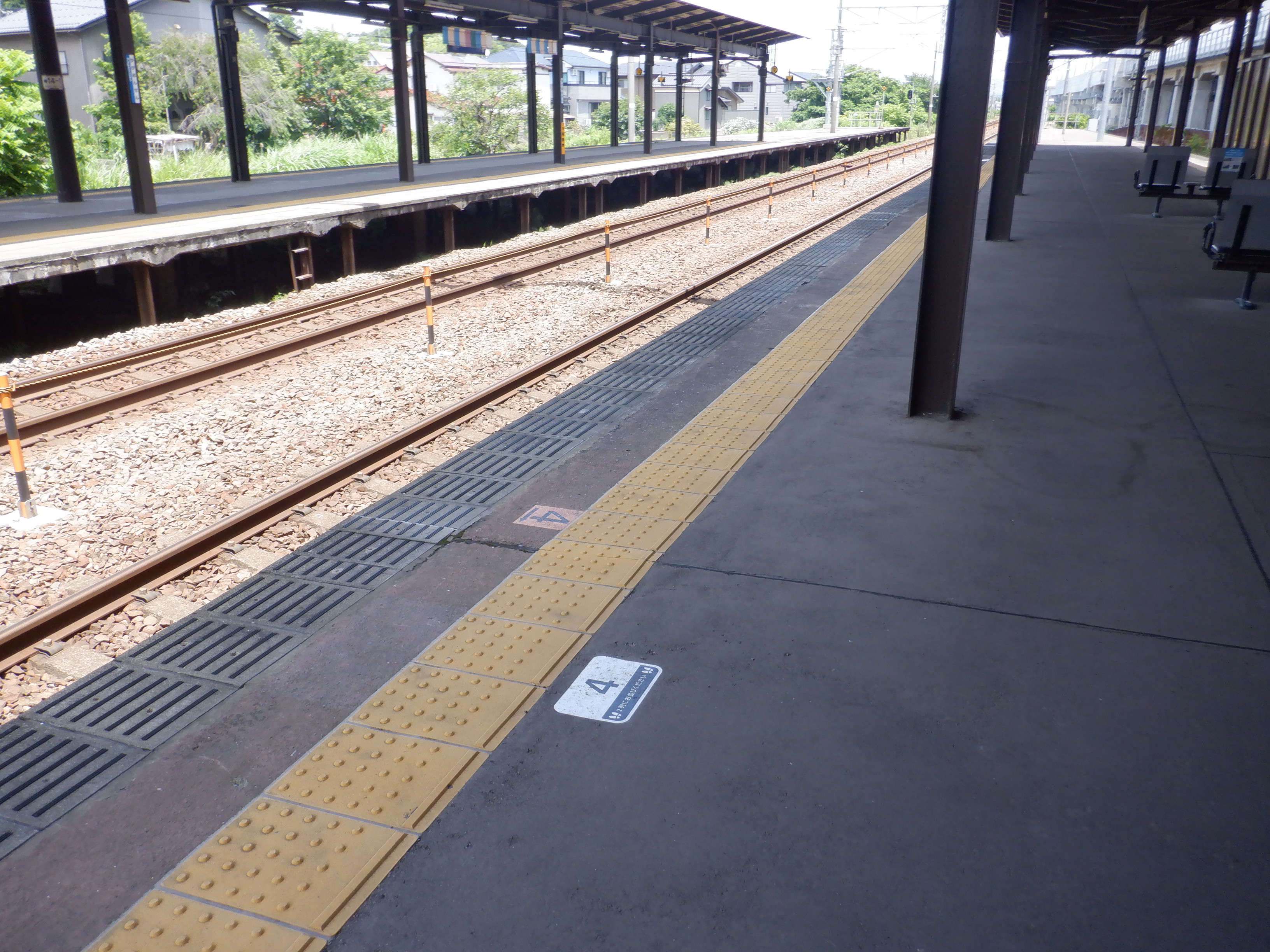 仮設通路を通りホームへ。IRいしかわ鉄道の文字が見えるようになりました。