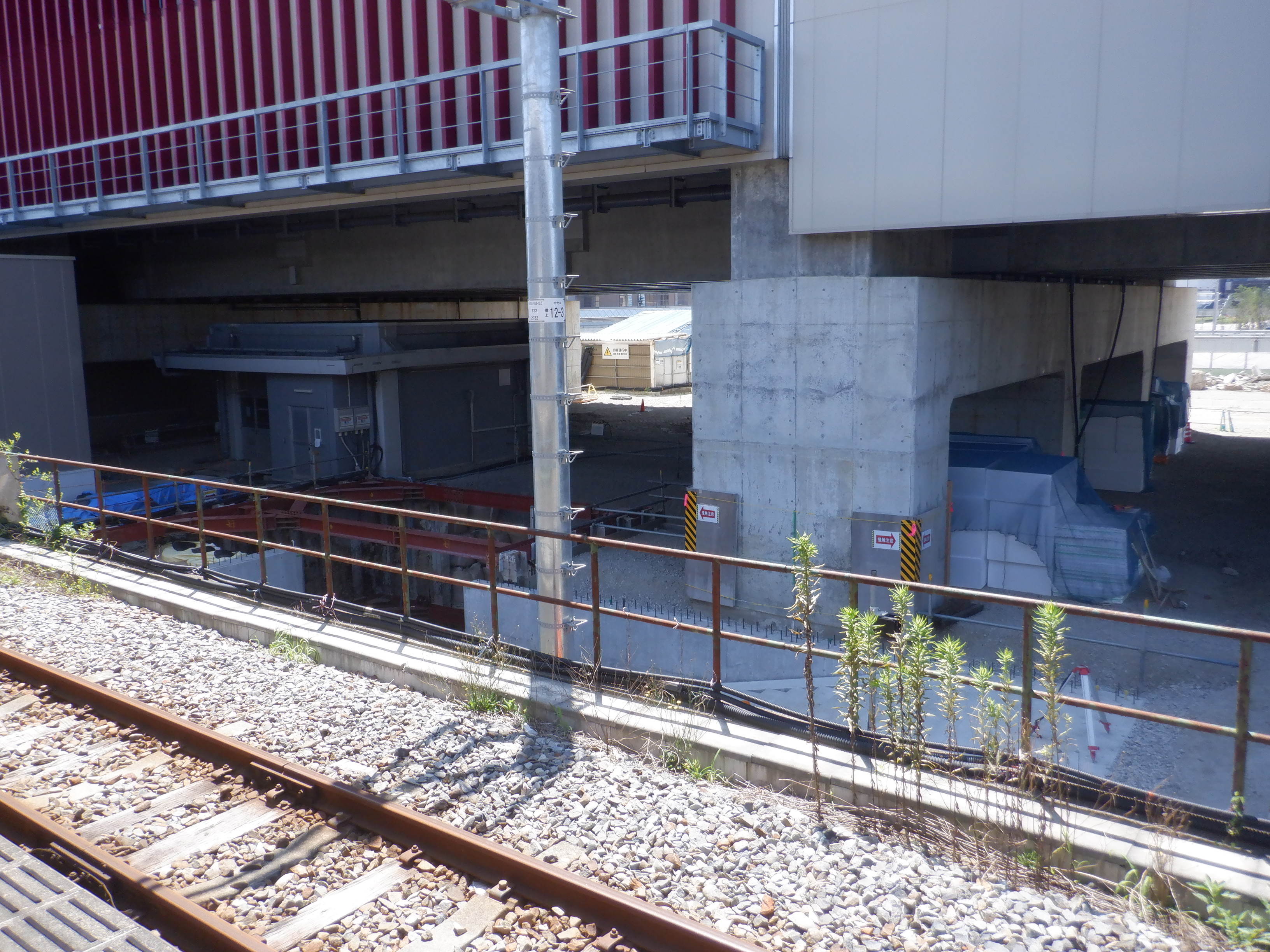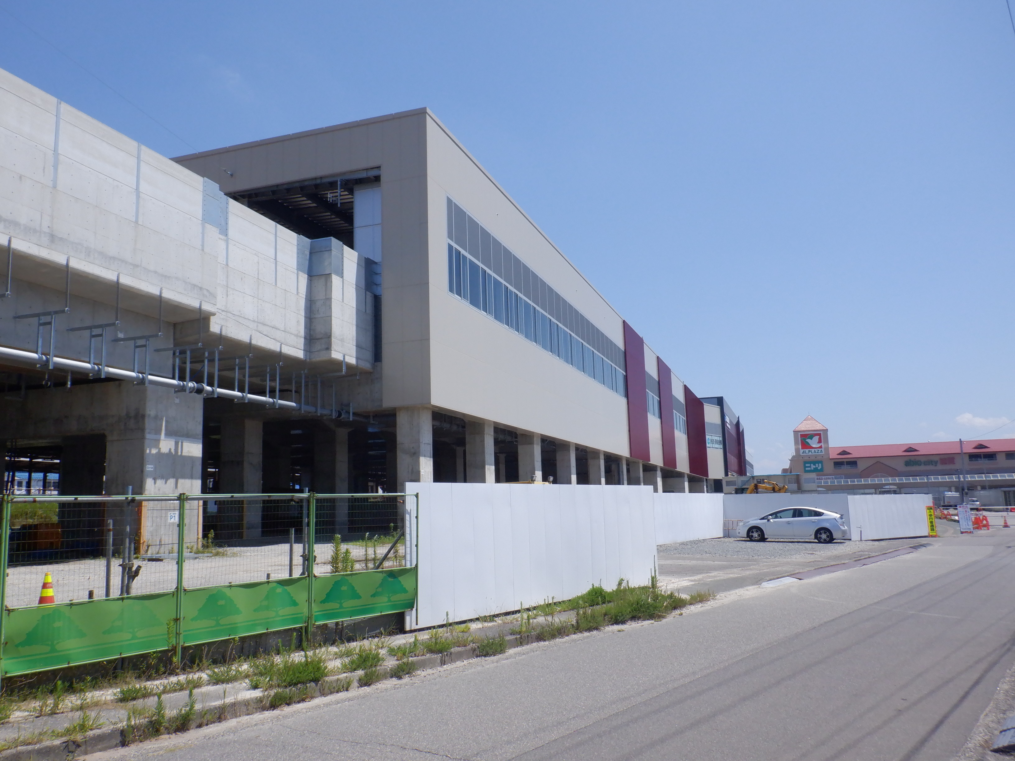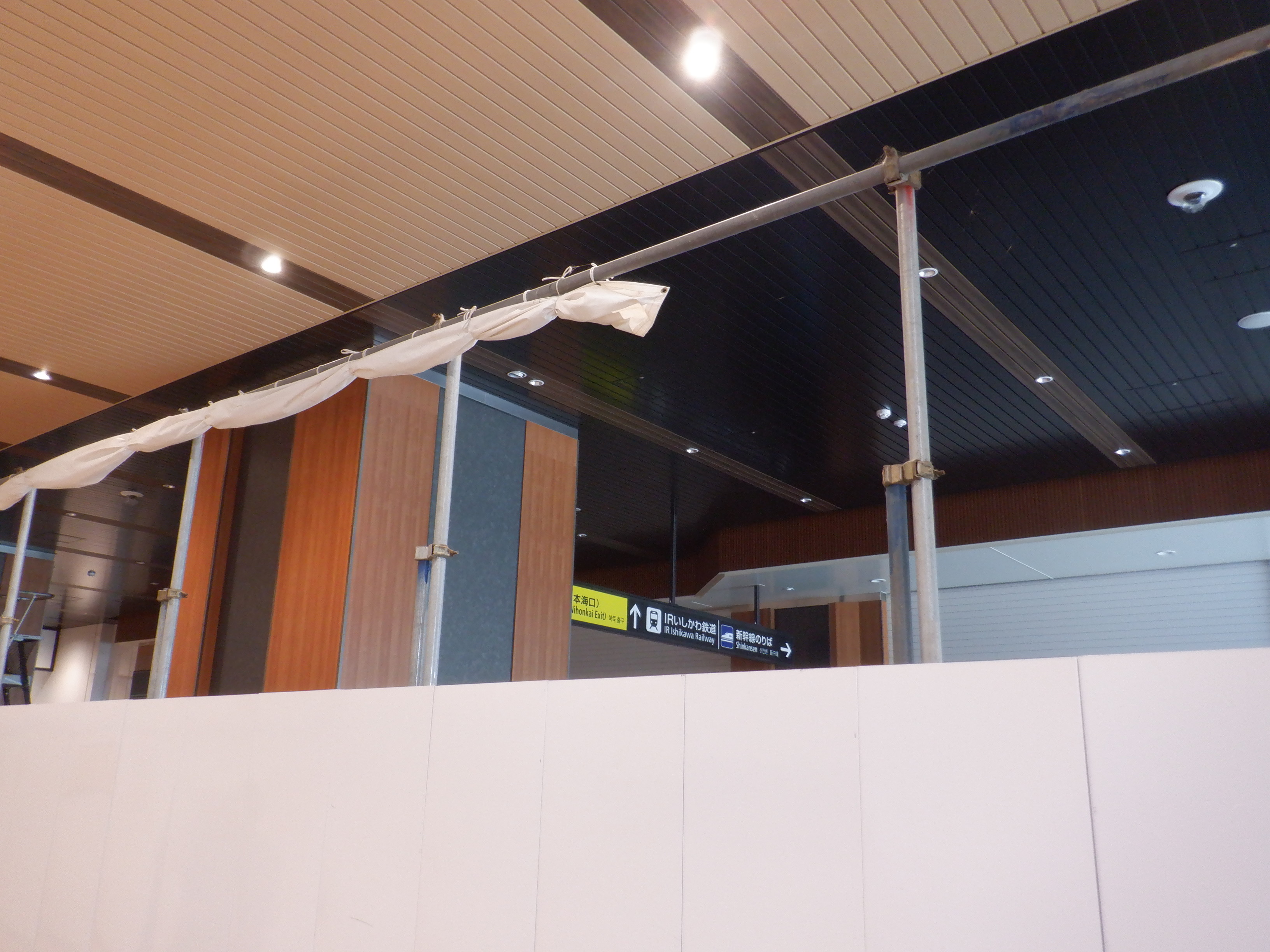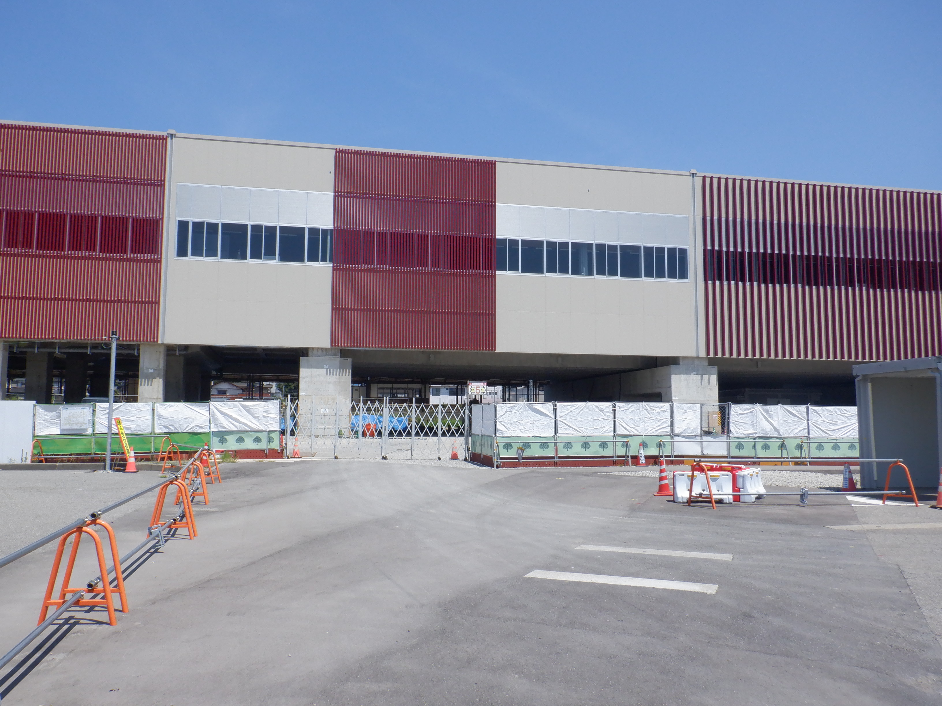 アルプラザ側から見たシェルター工事と新幹線駅舎。