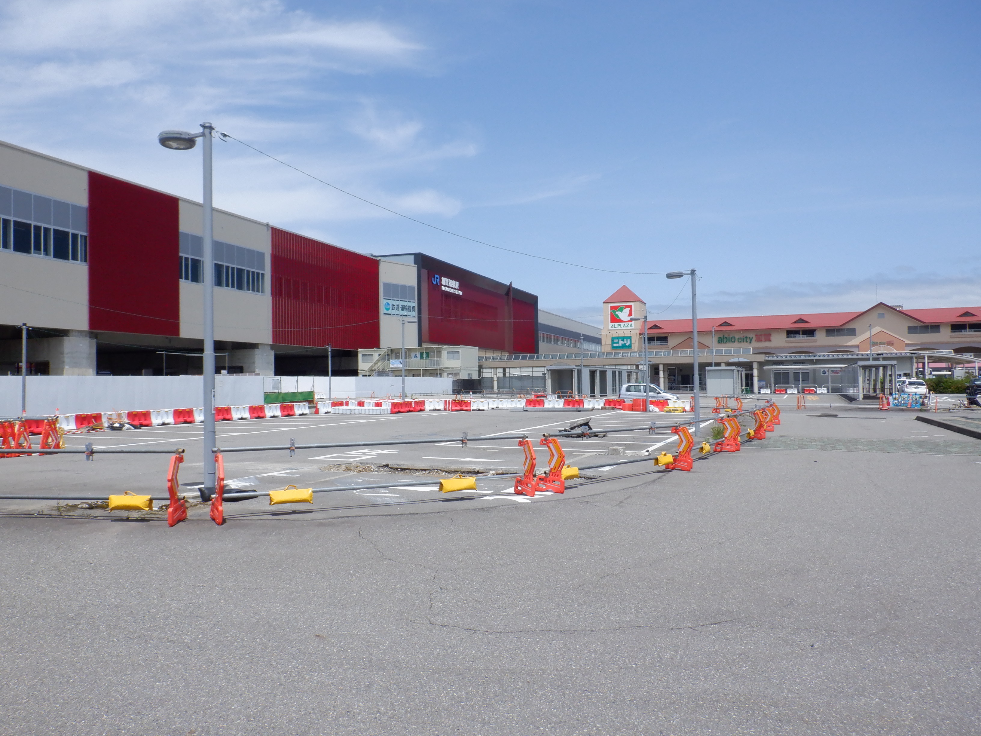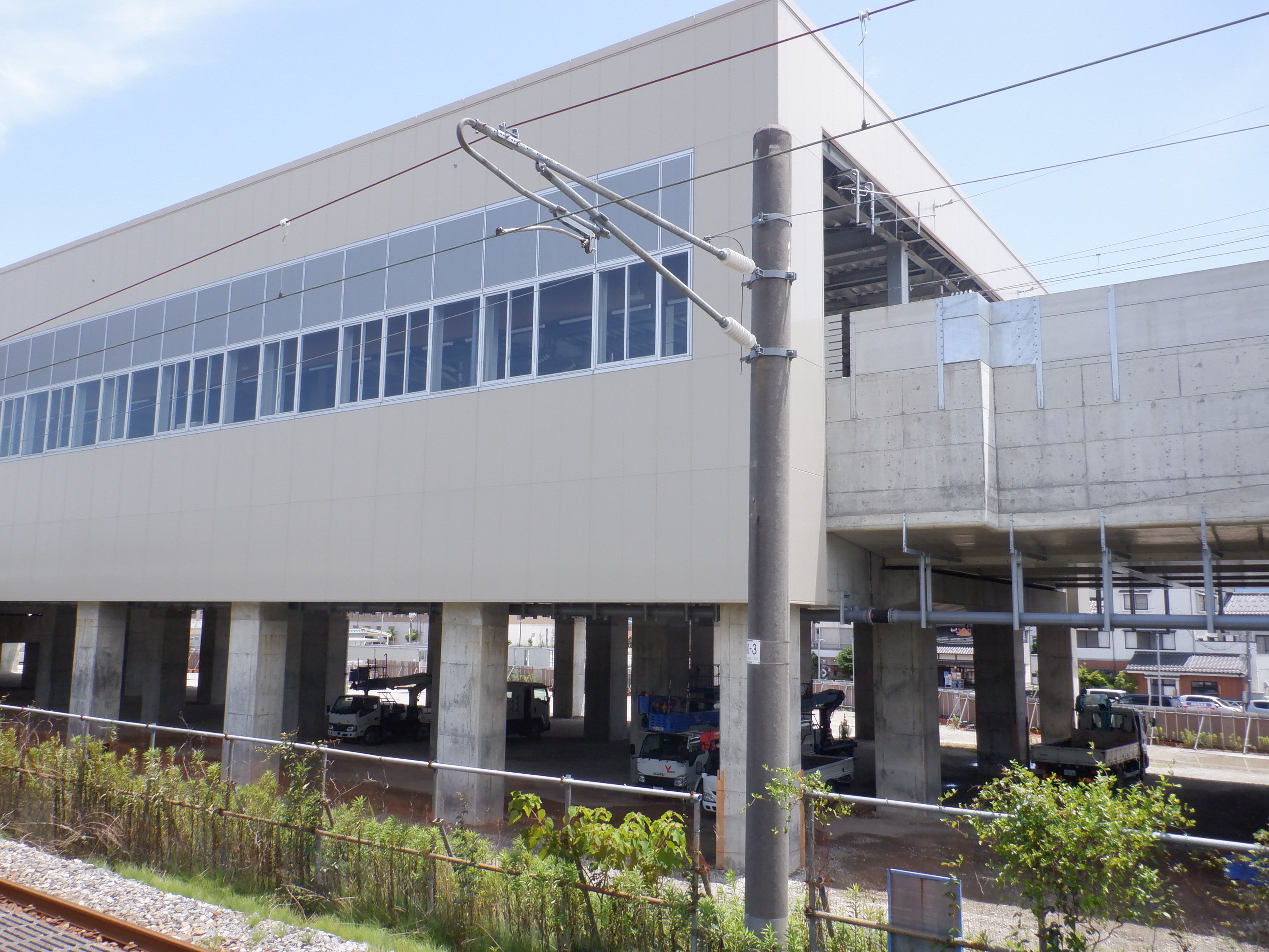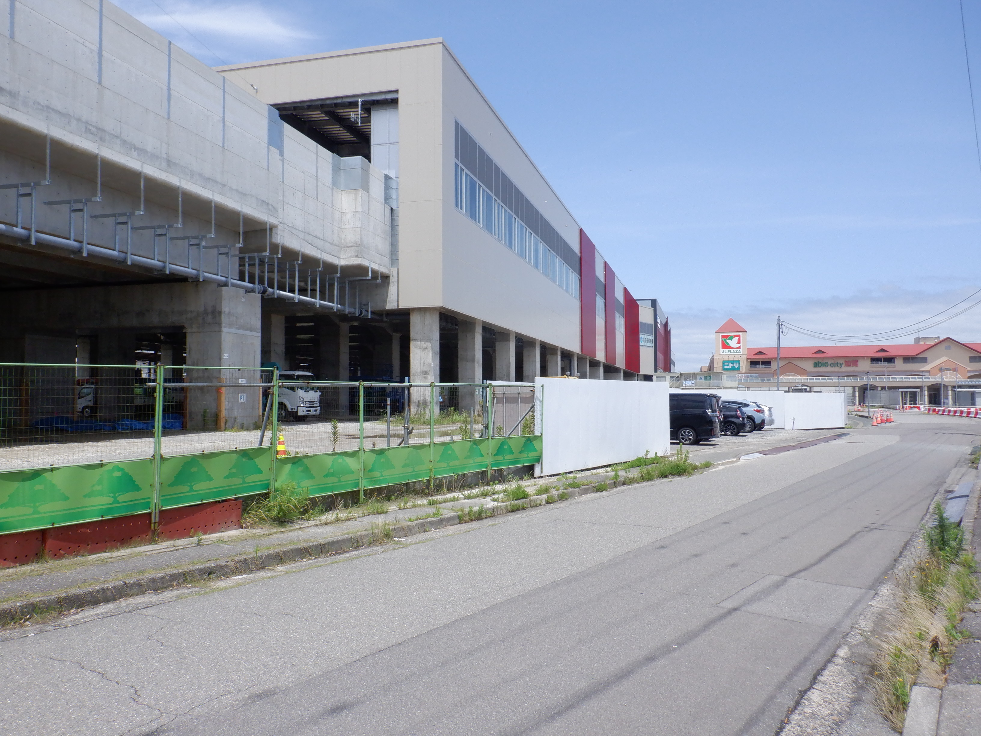 アルプラザ側から見たシェルター工事と新幹線駅舎。