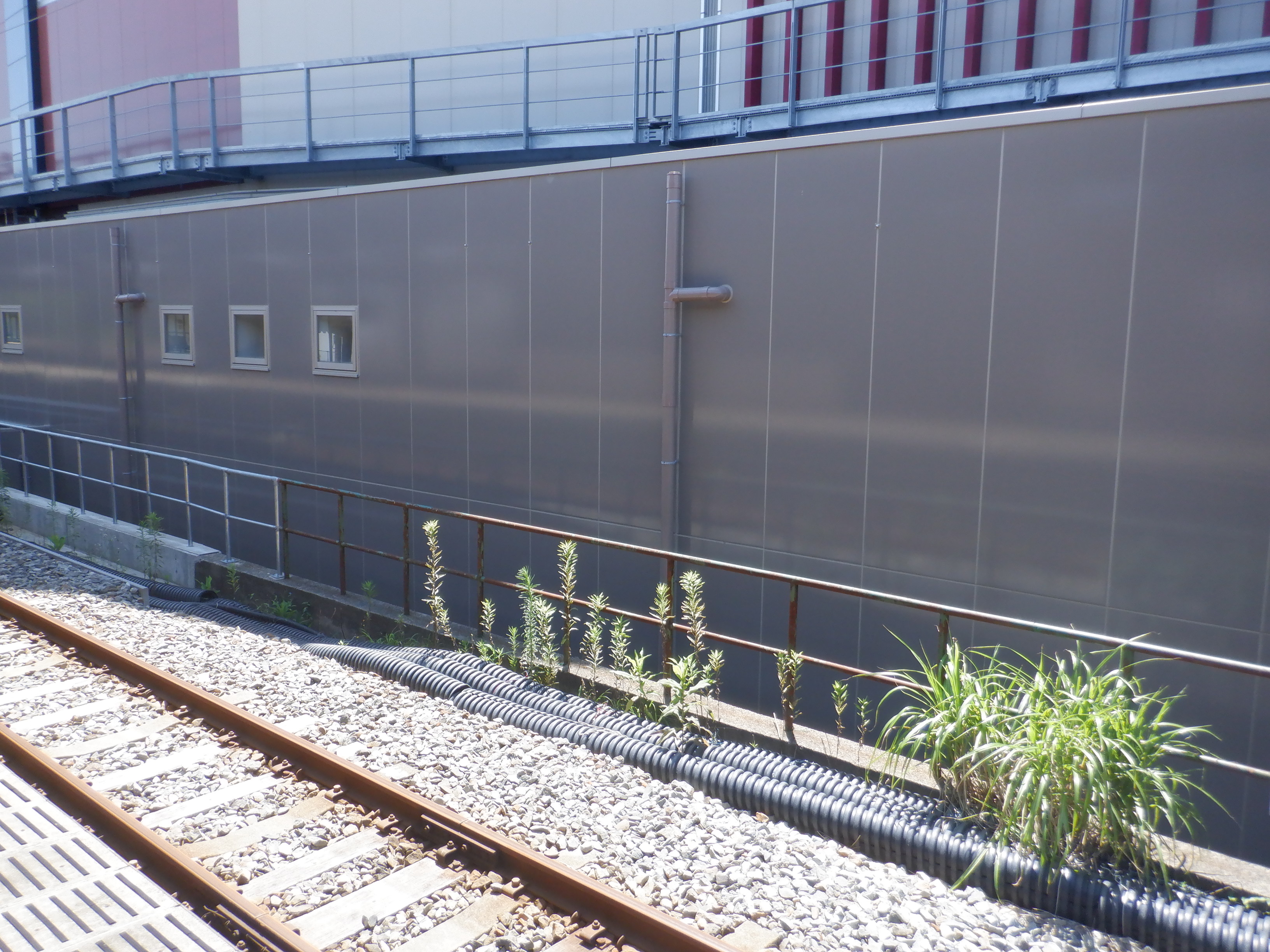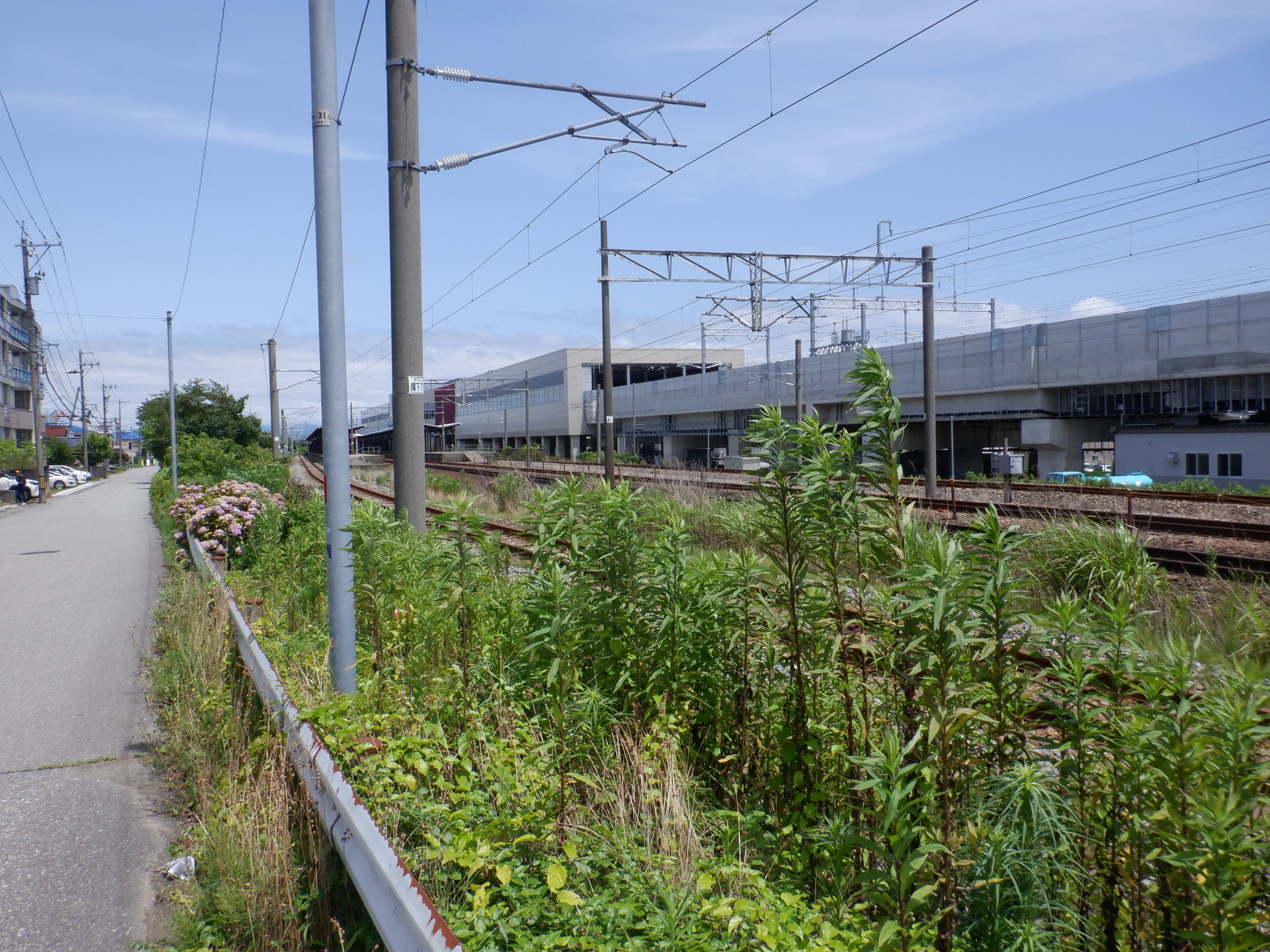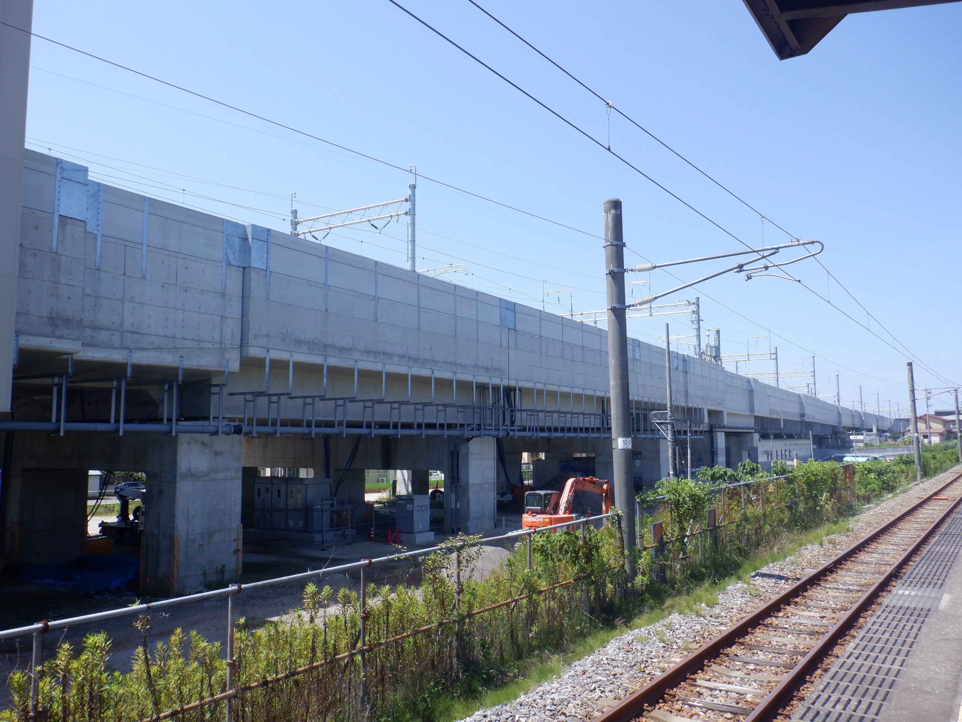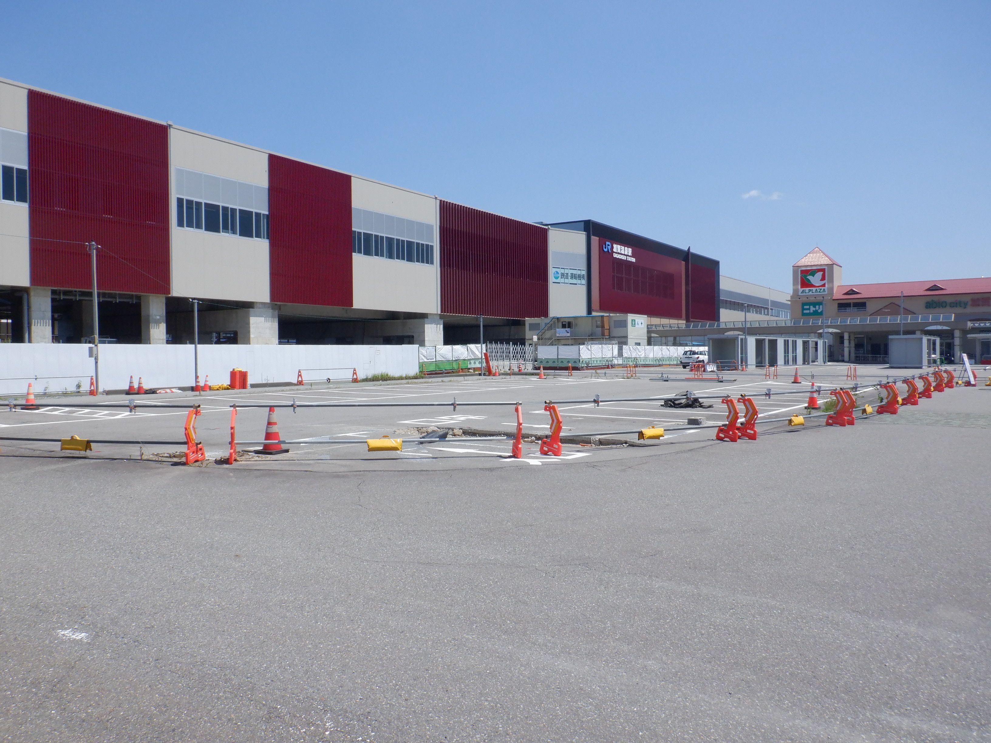 アルプラザ側から見たシェルター工事と新幹線駅舎。
