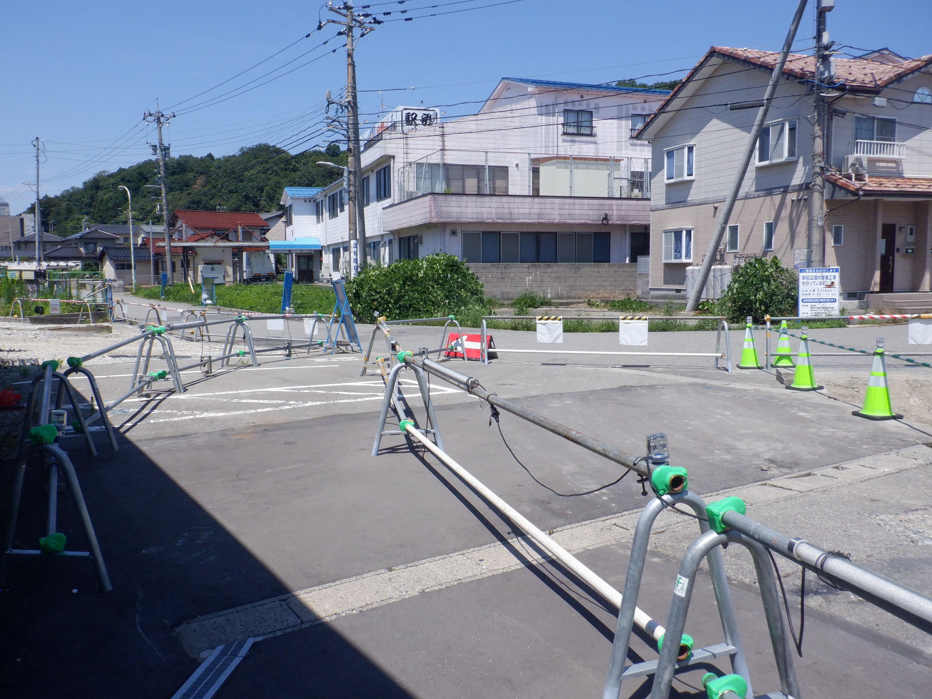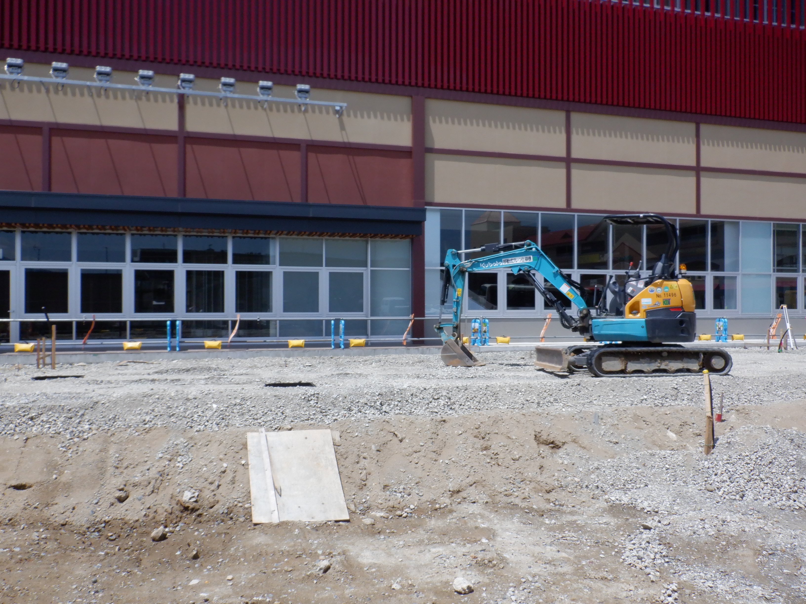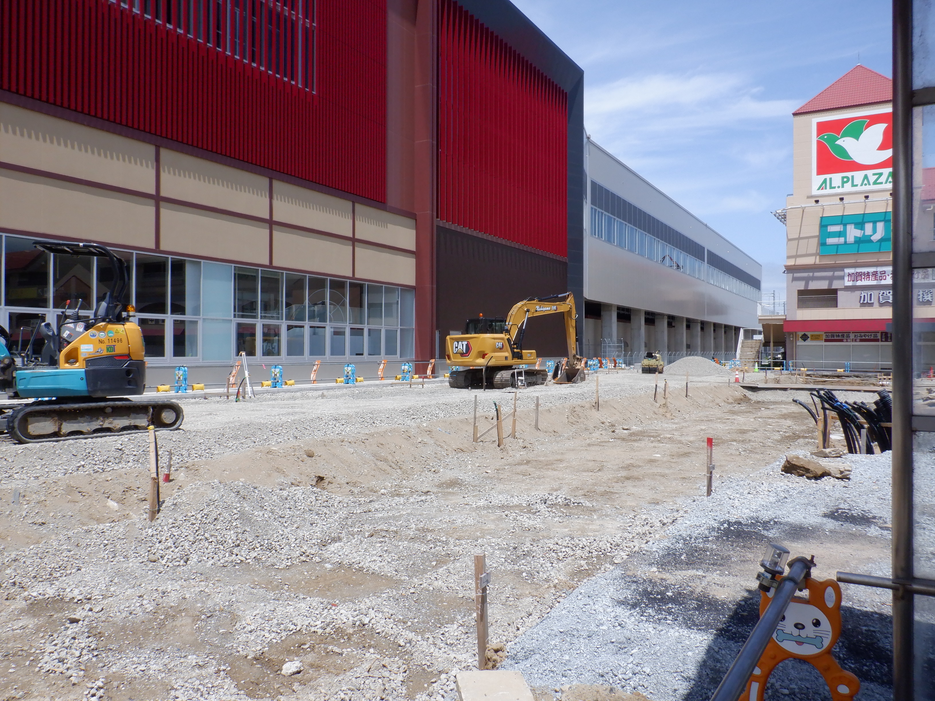 飲食店が並ぶ一角の前の駐車場も工事が始まりました。