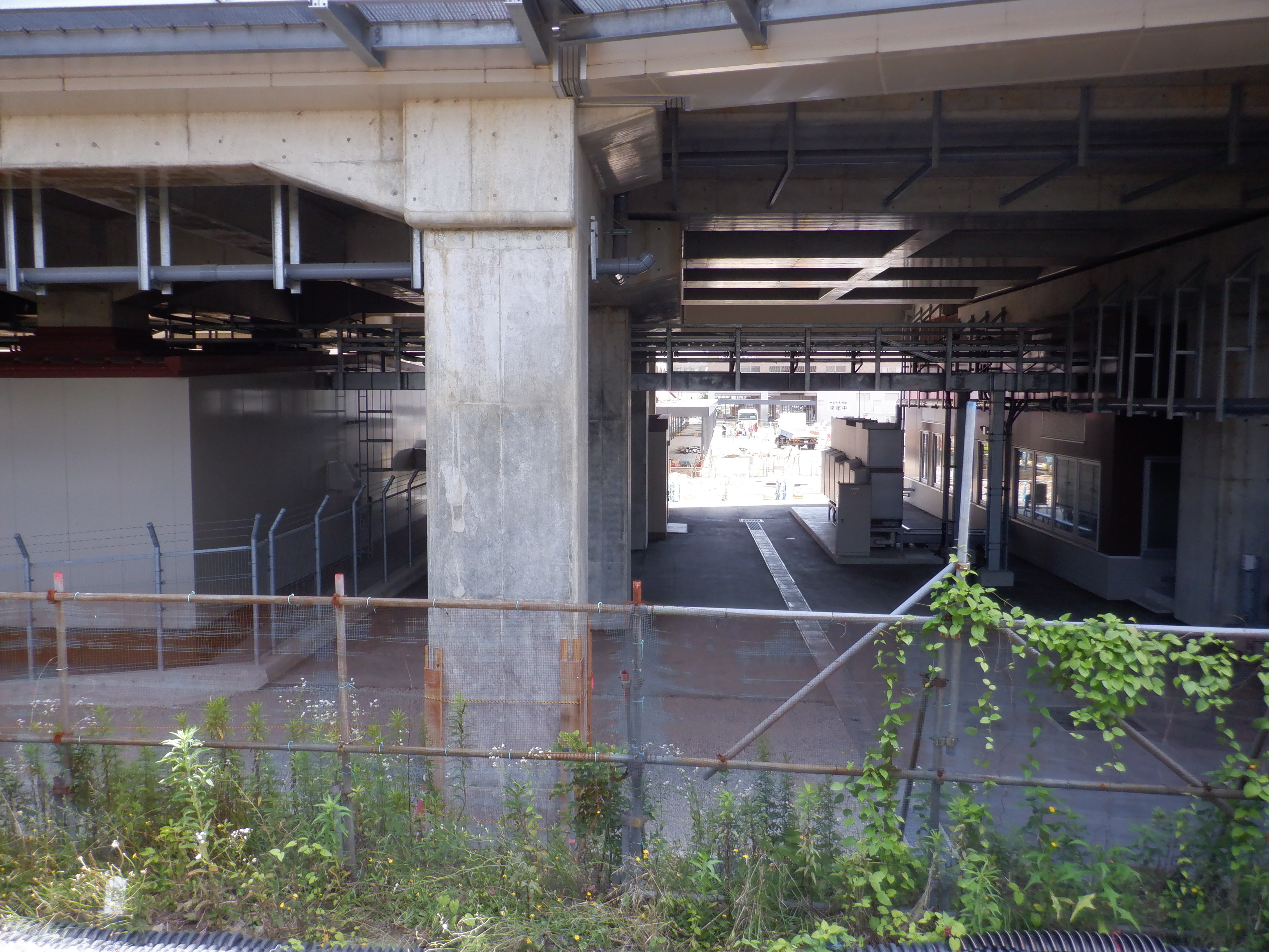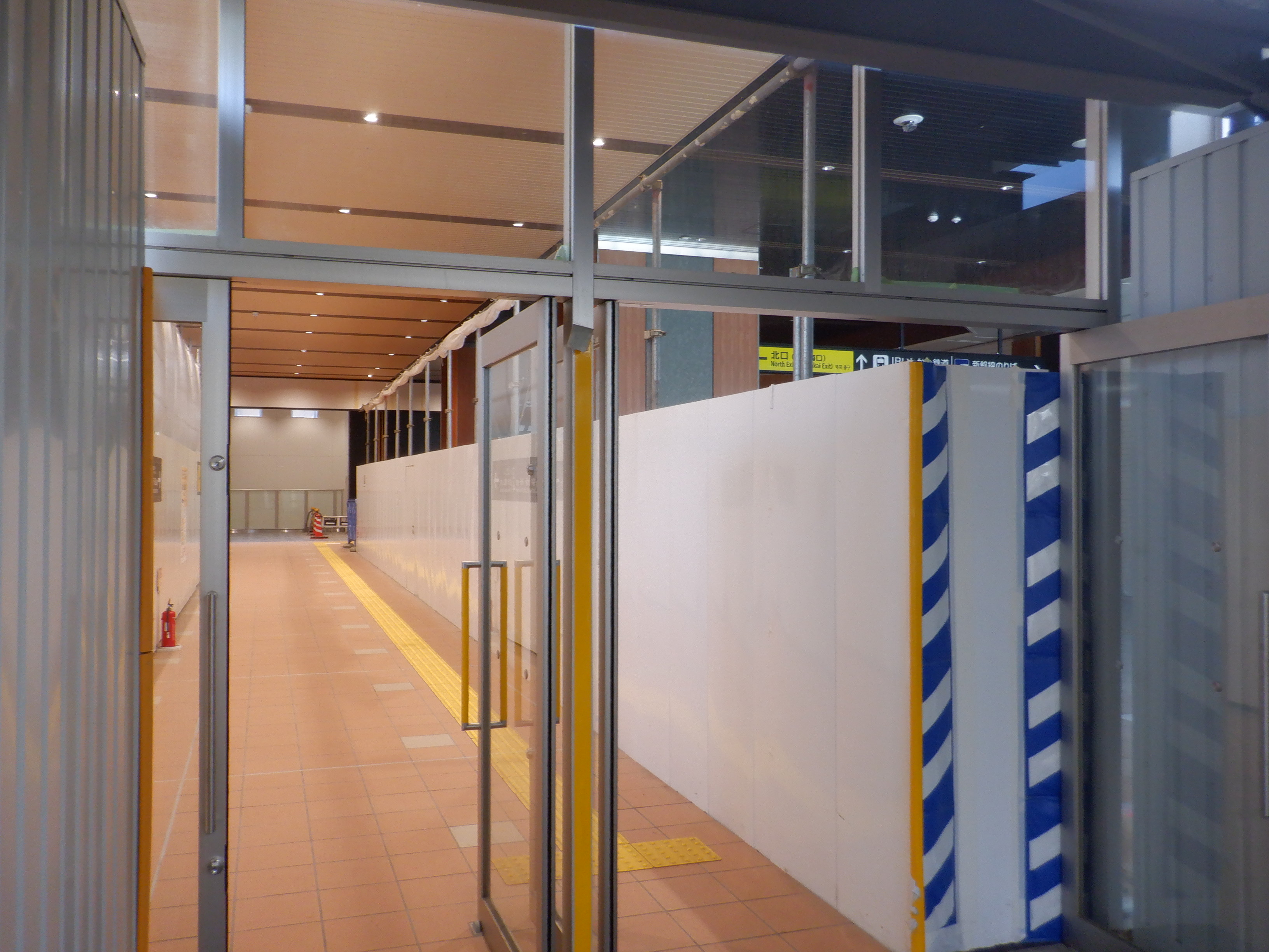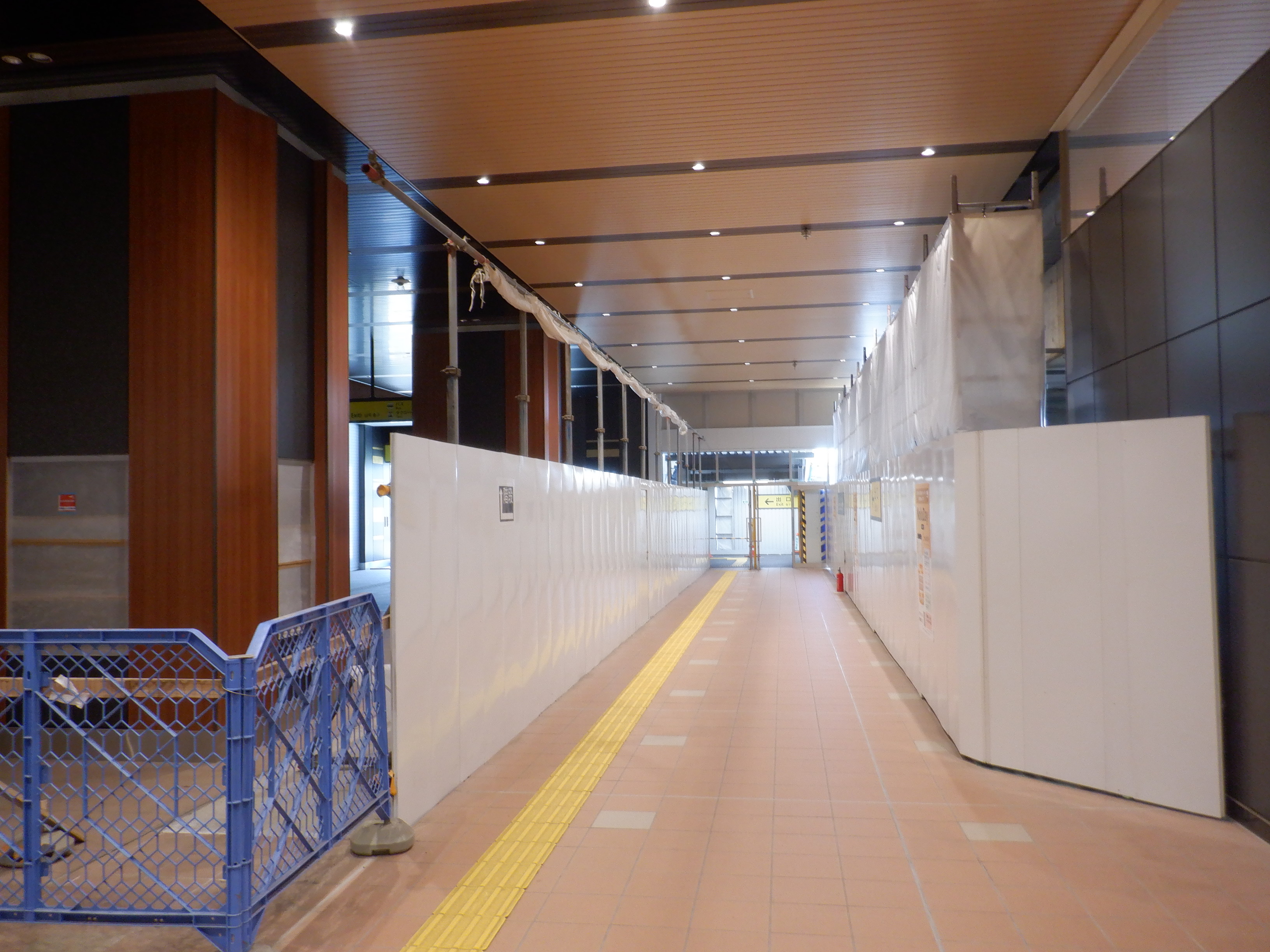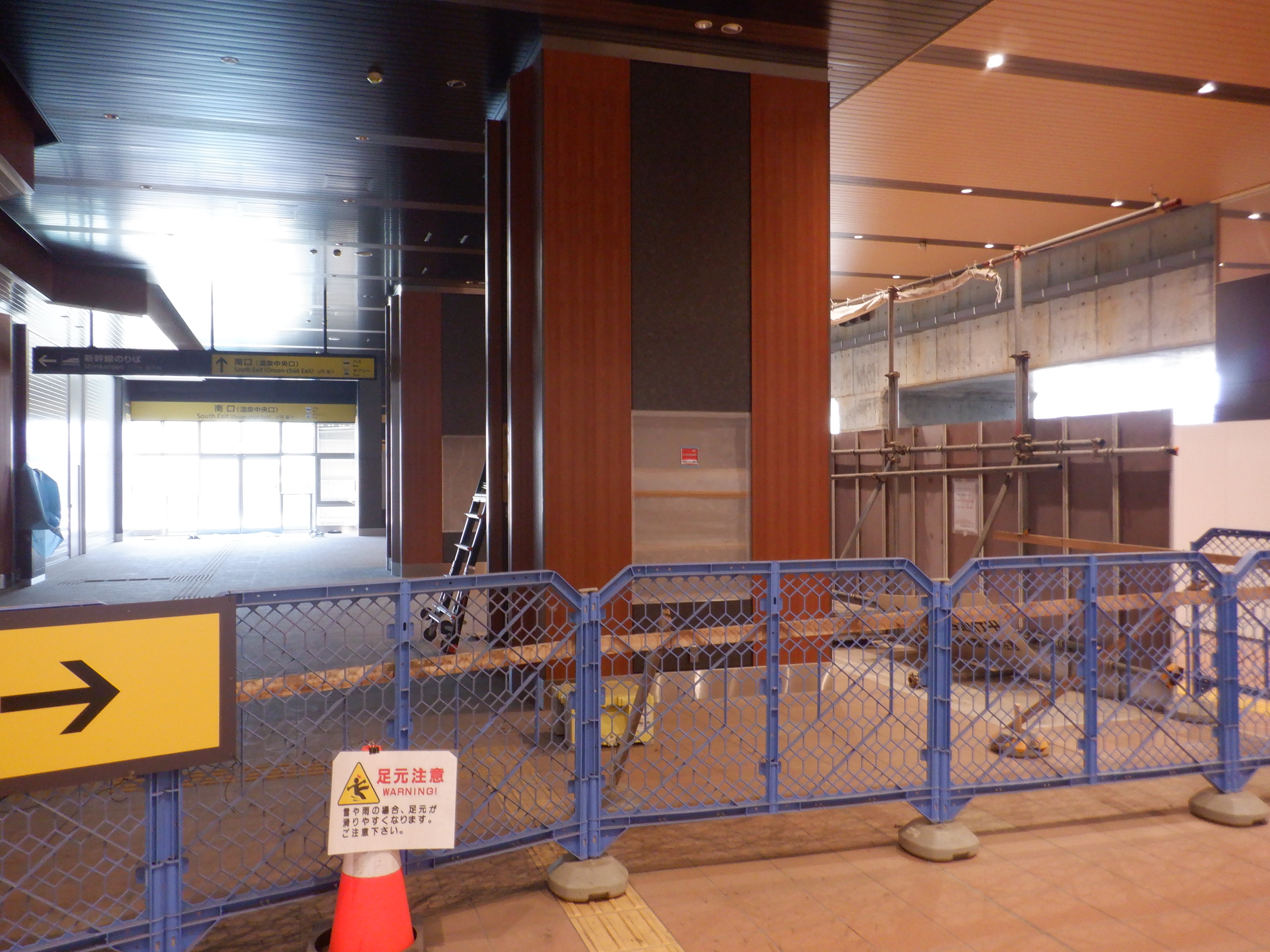 1・2番のりばから見た地下自由通路を再建設中のところとコンビニ・待合室等となるところ。