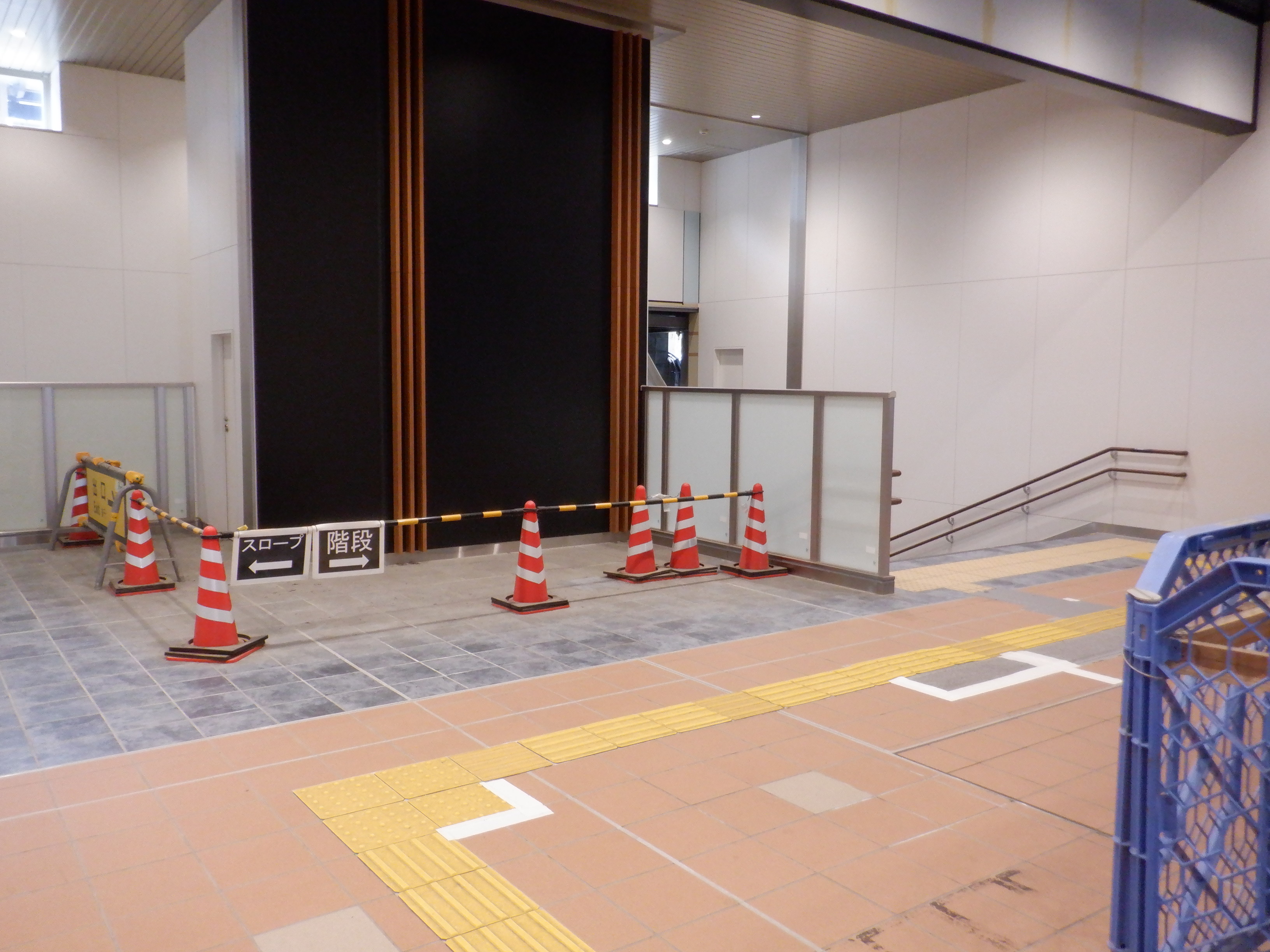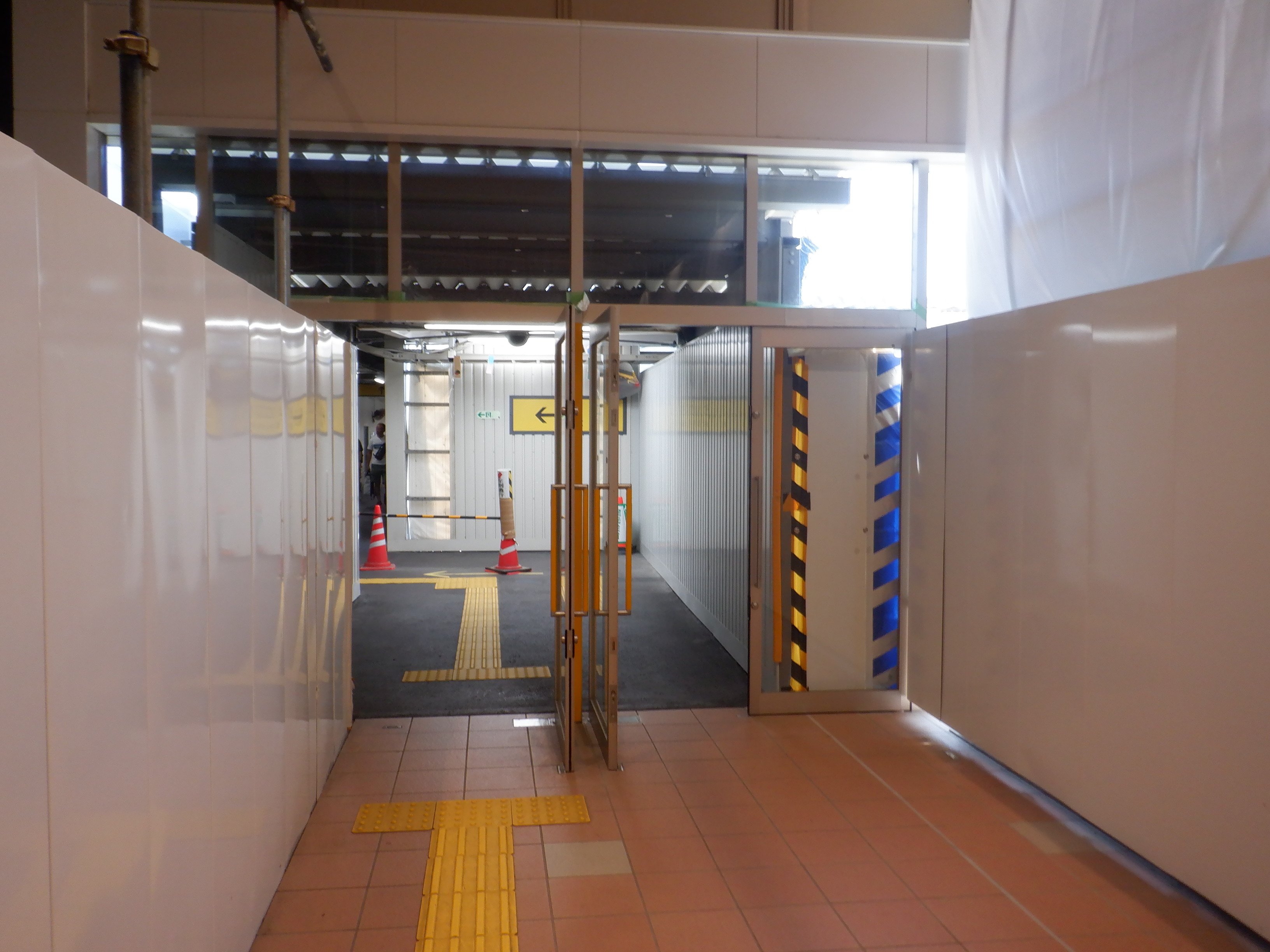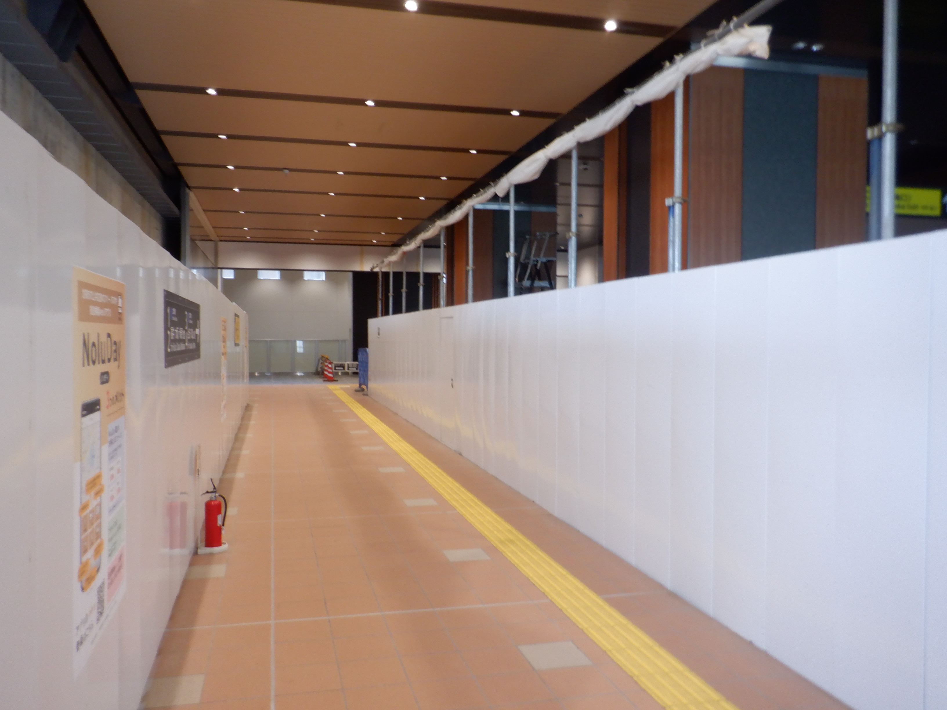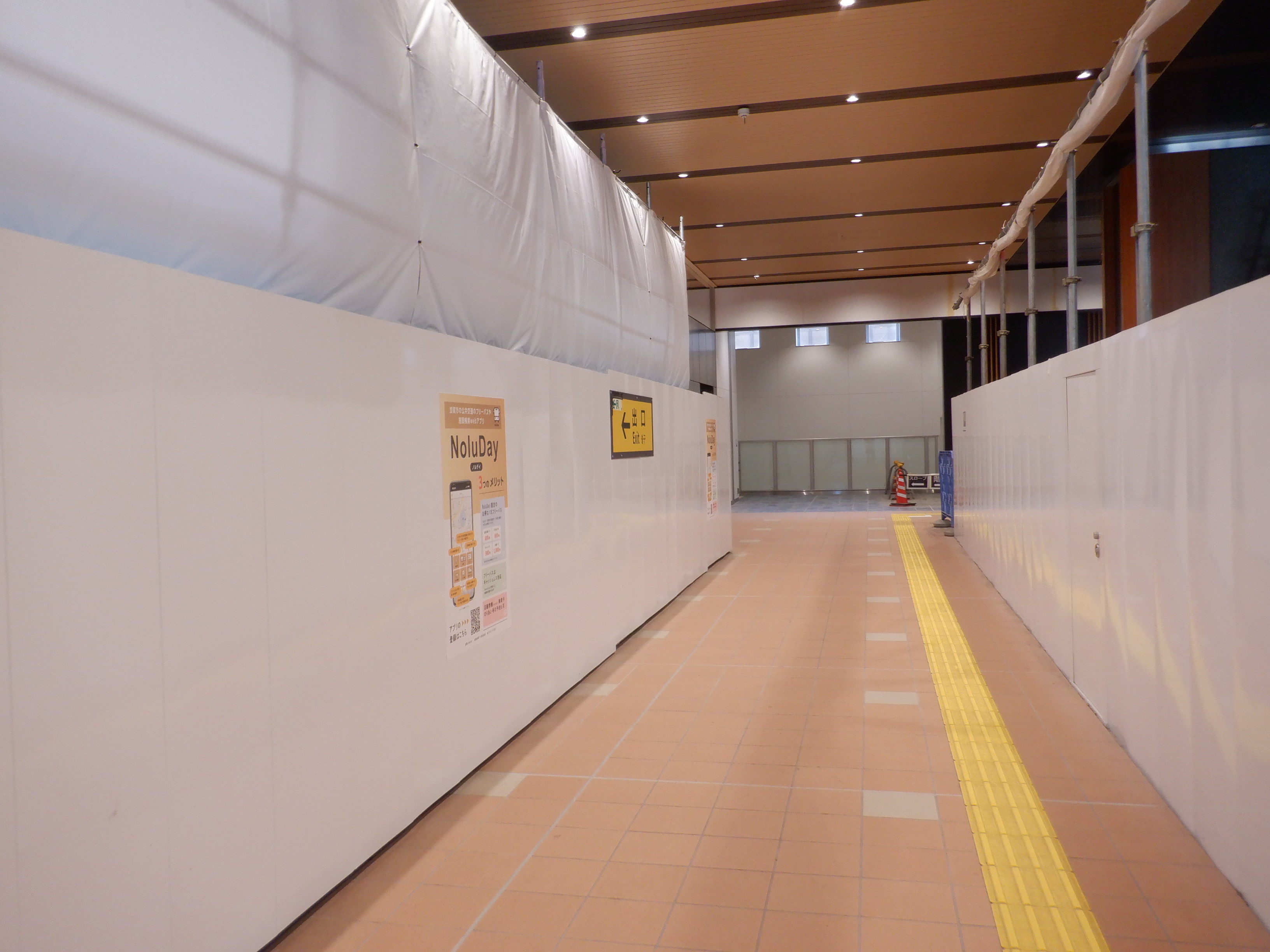 コンビニ・待合室等になるあたりの前の部分も通行ができなくなり、少し迂回が必要になりました。