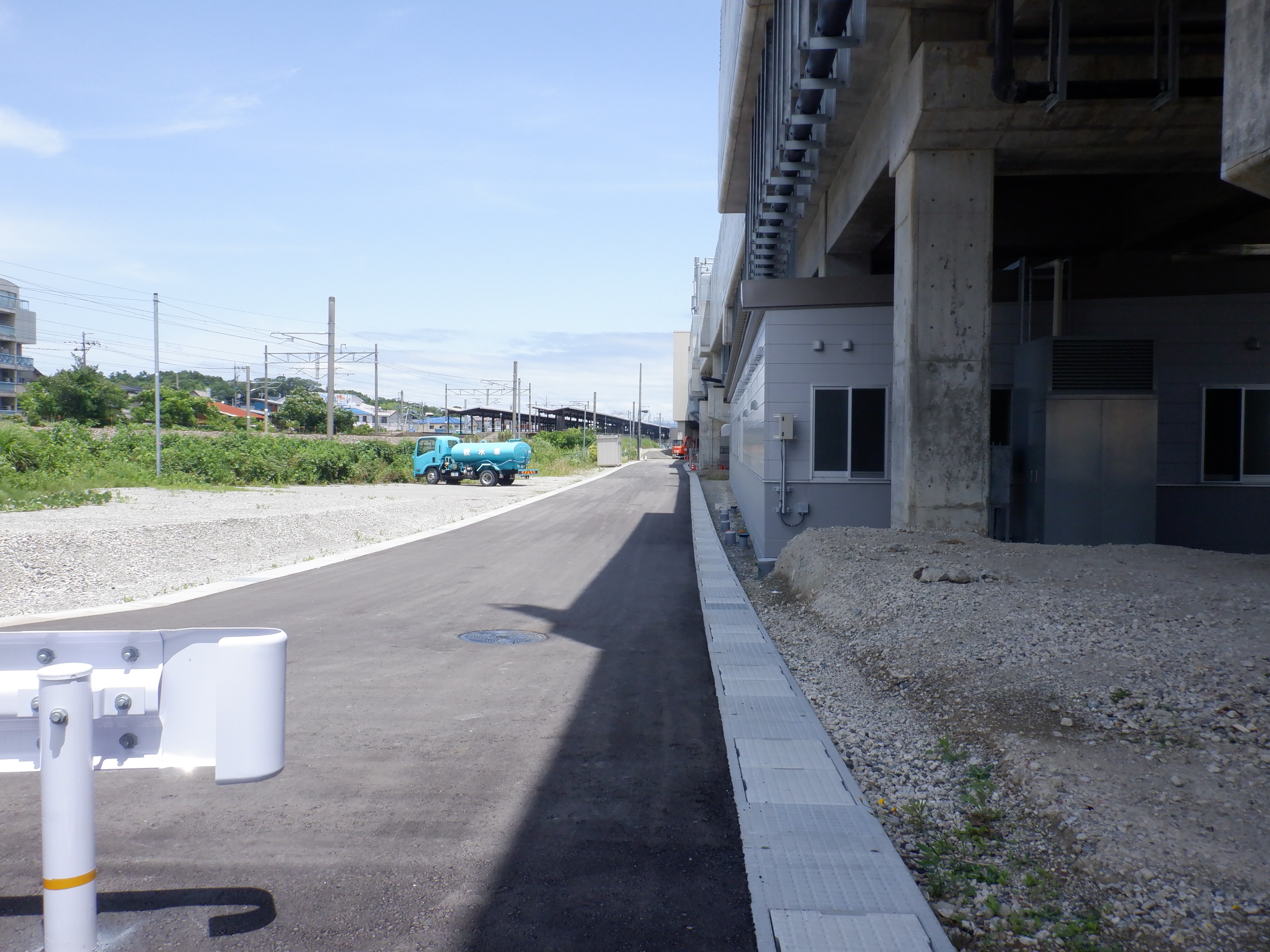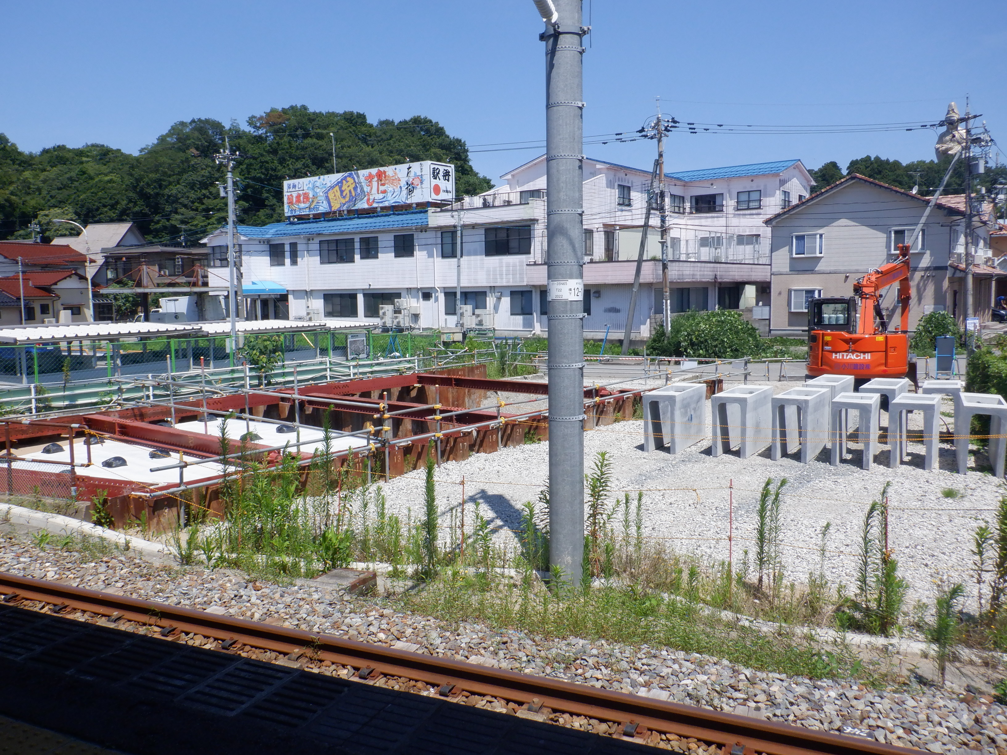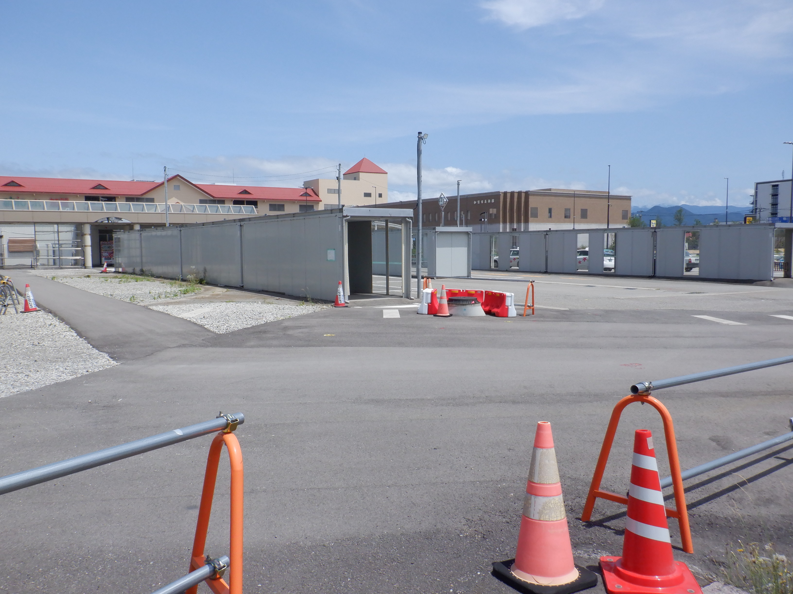仮設バスのりばだったところは通行ができるのでそこを抜けて仮設駅舎へ。