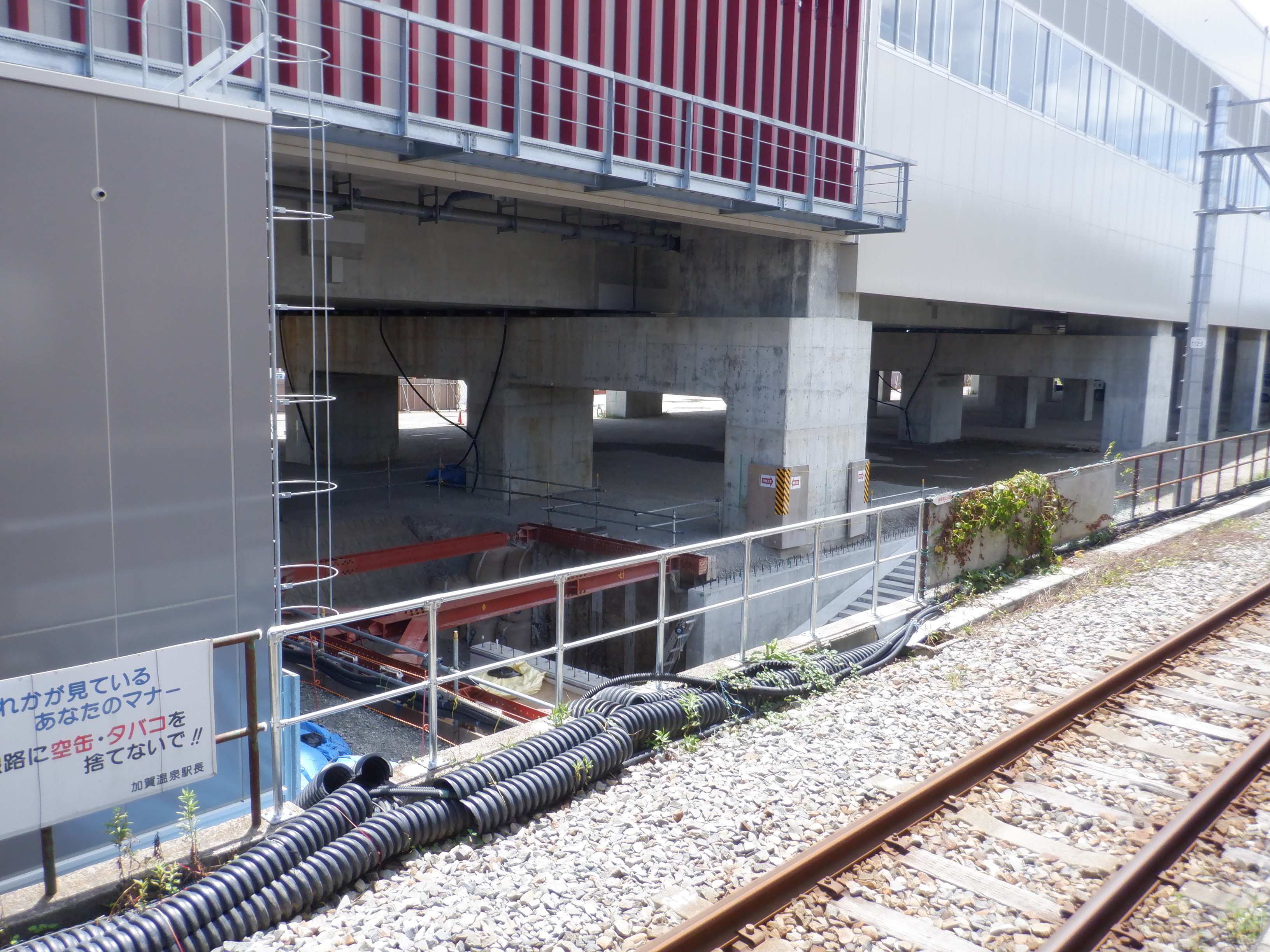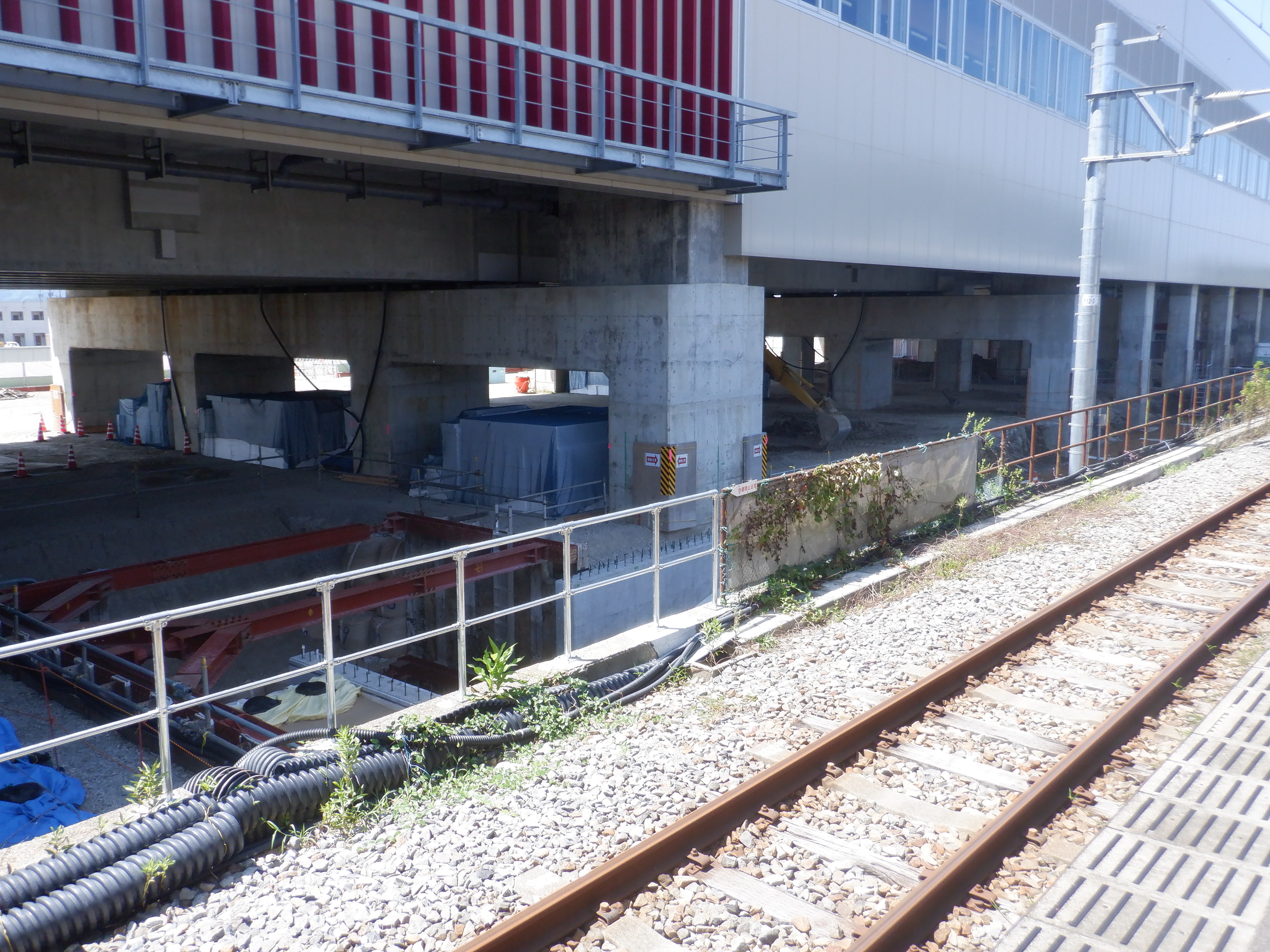 3・4番のりばから見た地下自由通路を再建設中のところ。