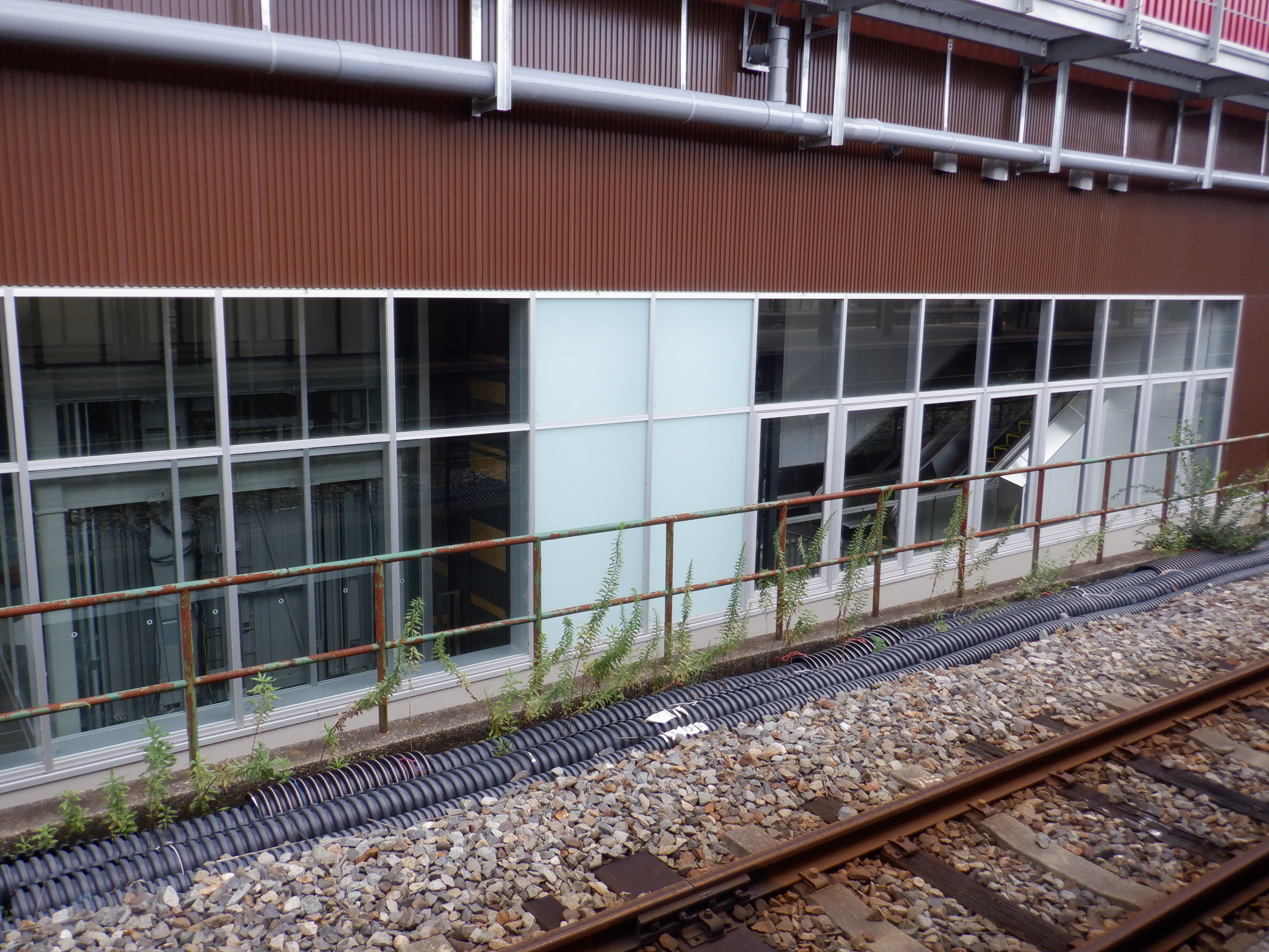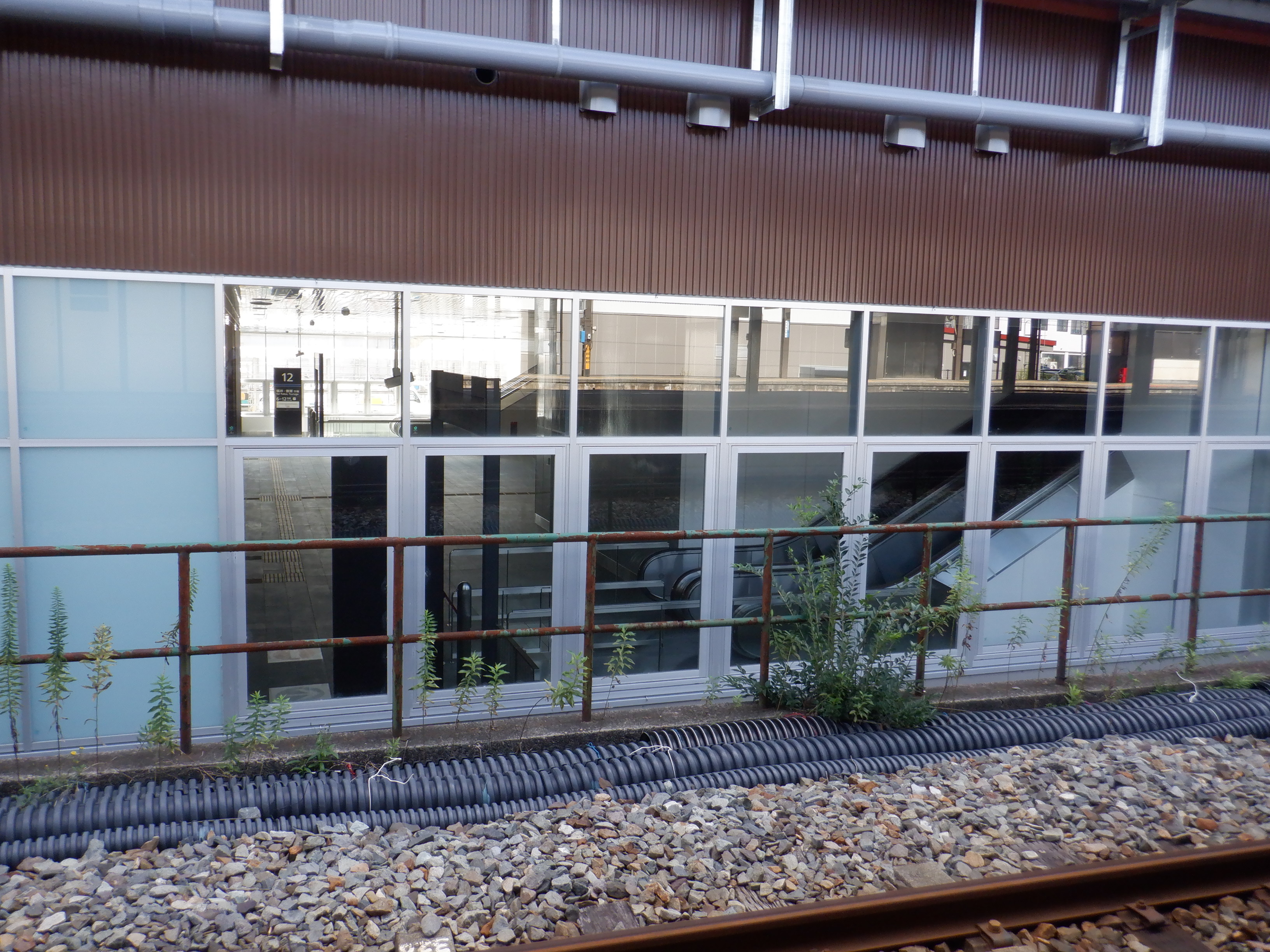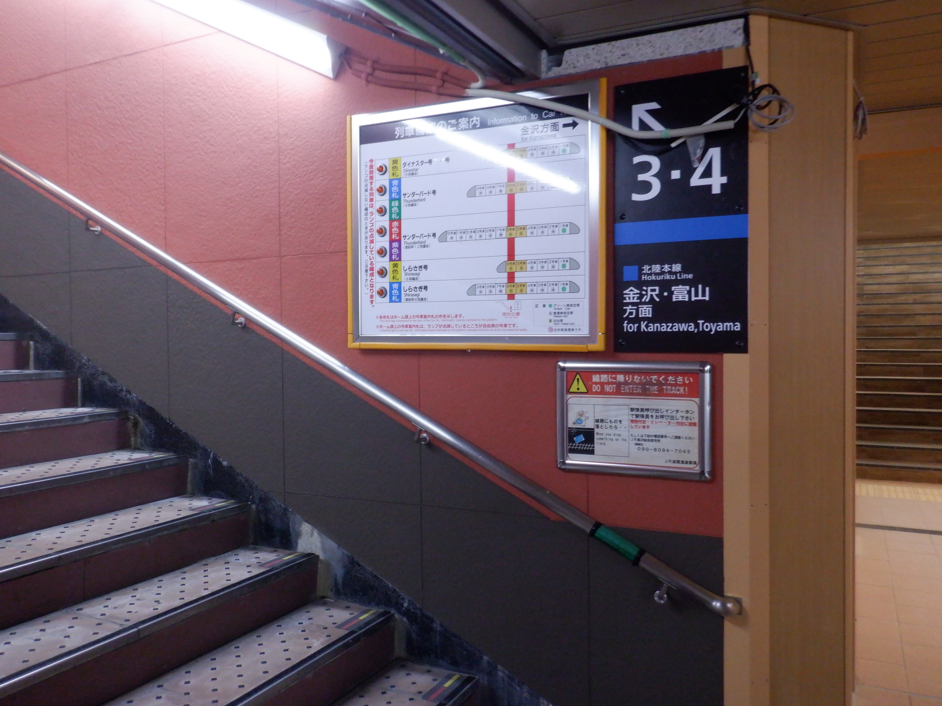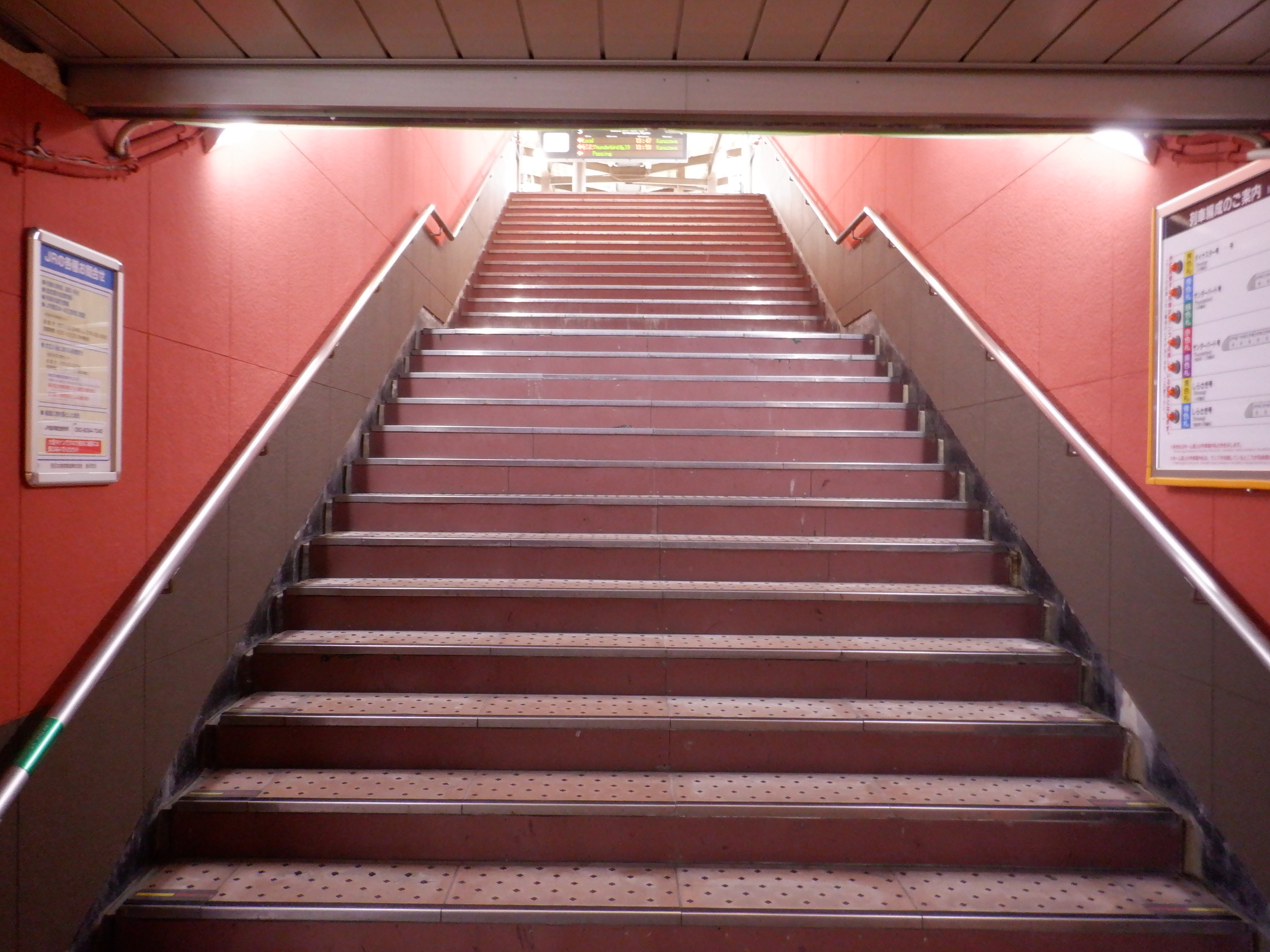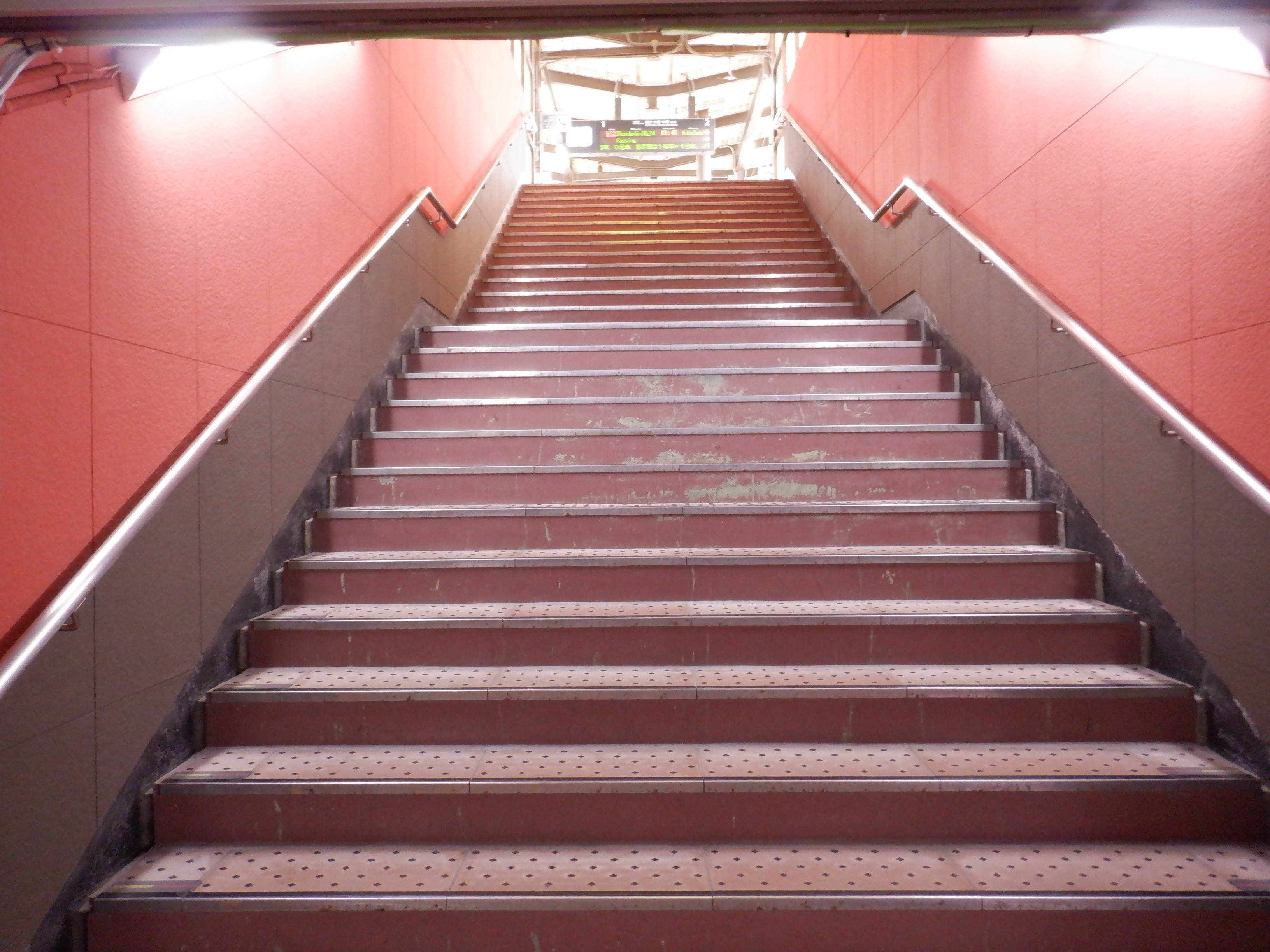 1・2番のりばの階段。壁の部分が塗装されたようです。