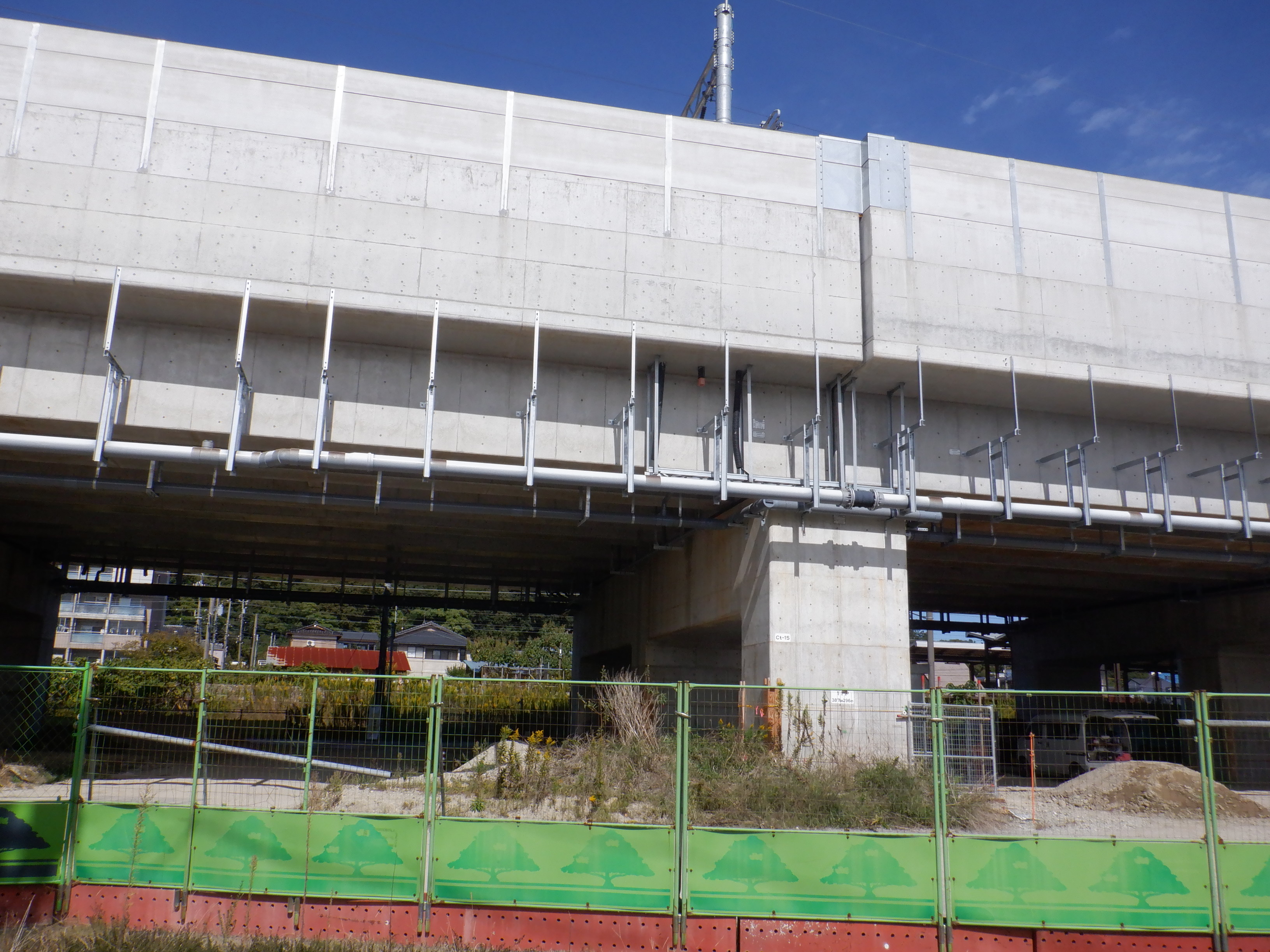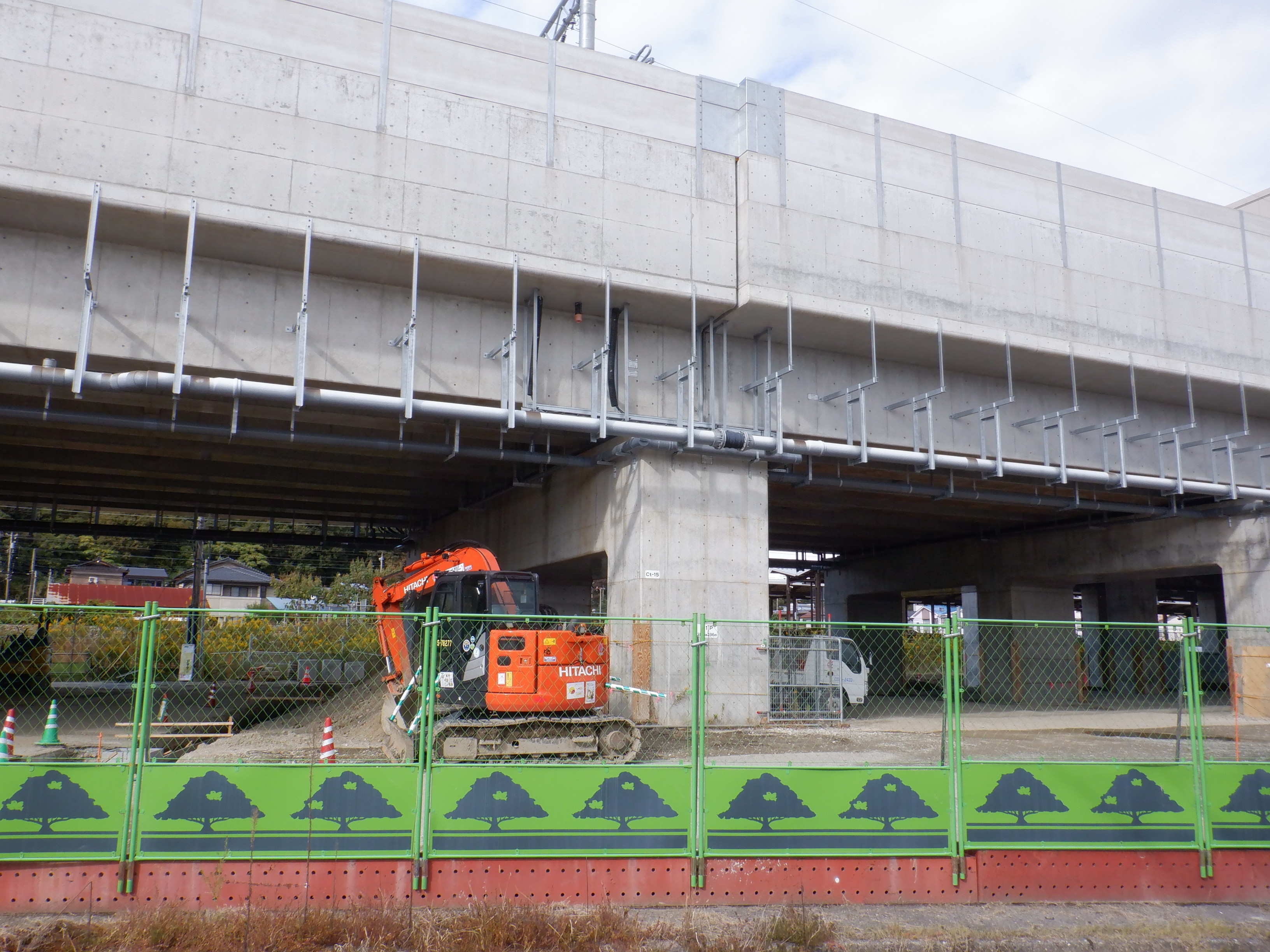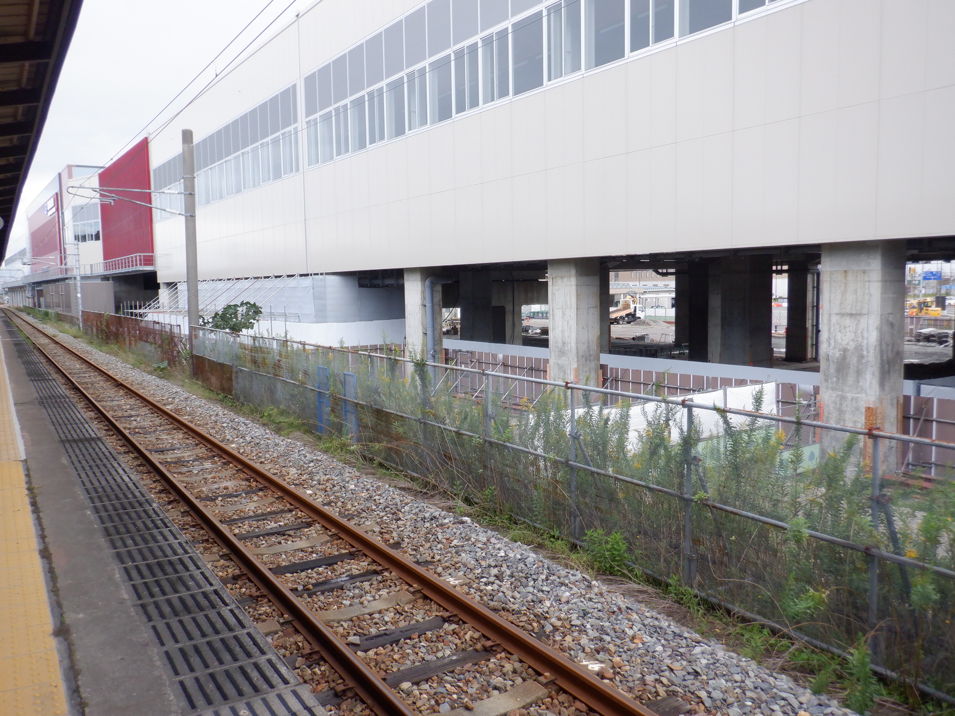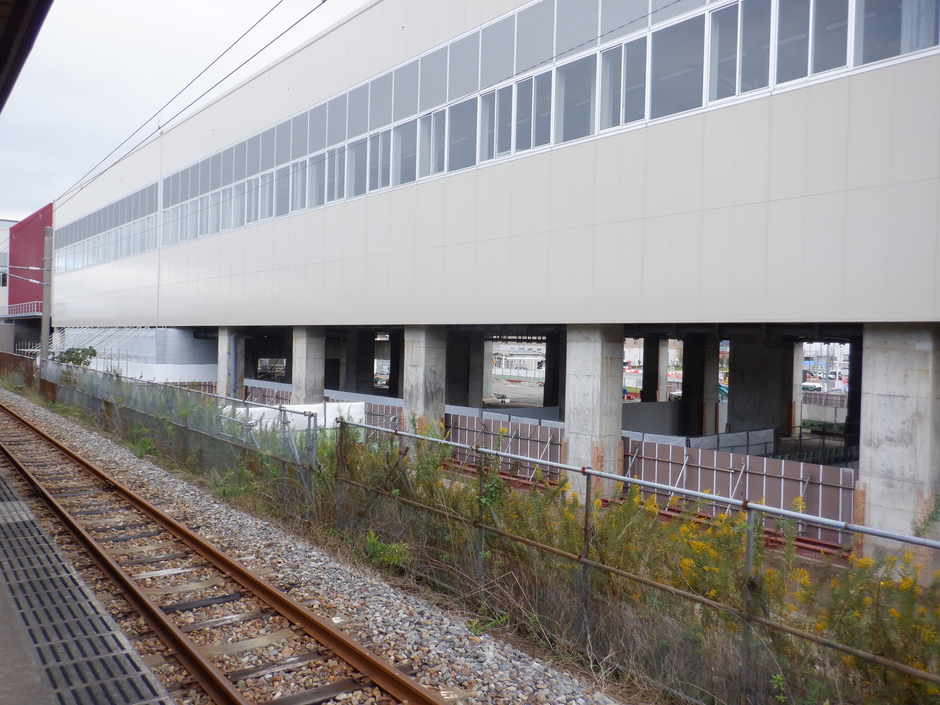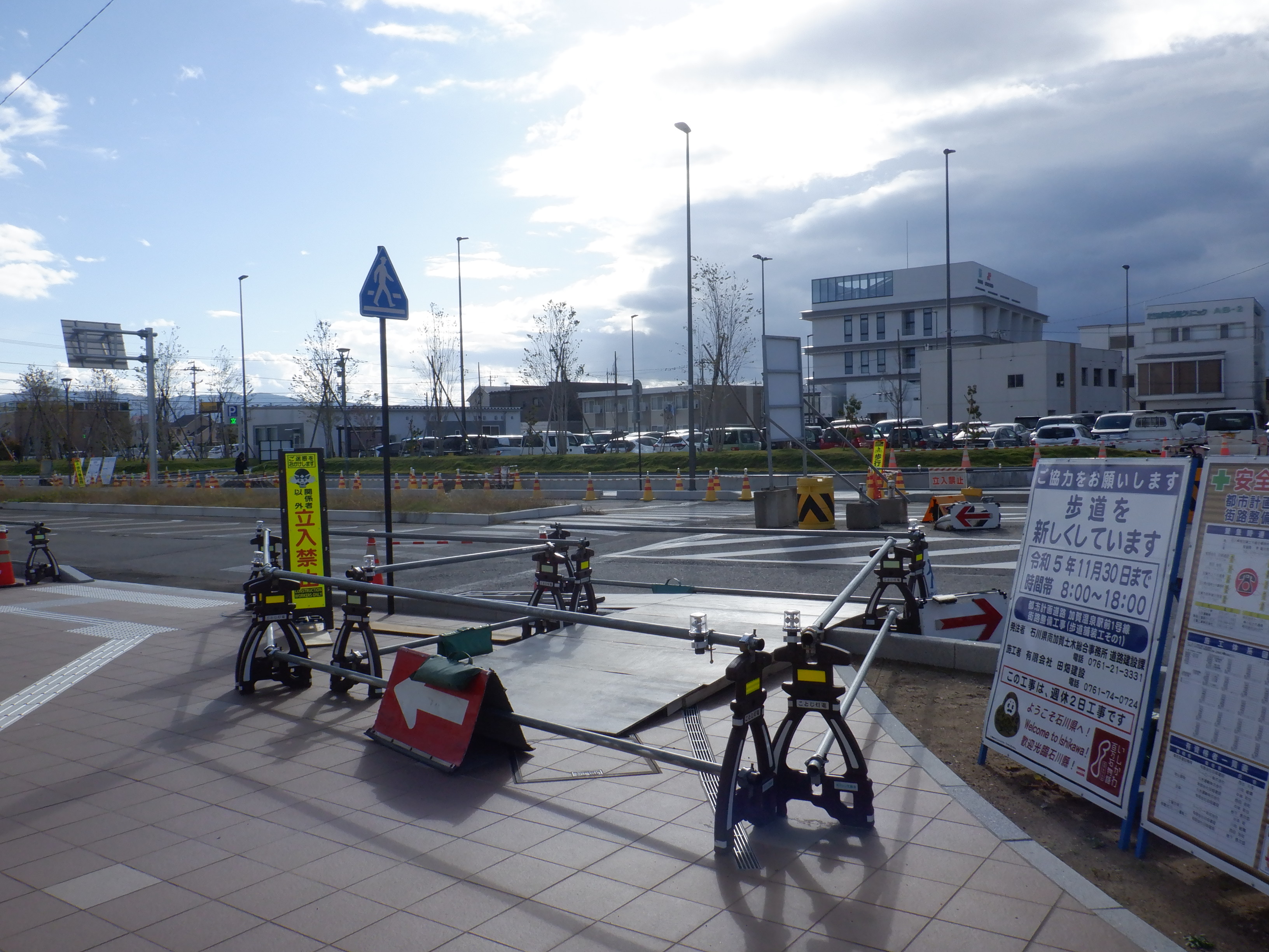 暫定北口を通るのがこの10月いっぱいということが案内されていました。それに向けて、コンビニ・待合室等建設中のそばが少し変化してきています。