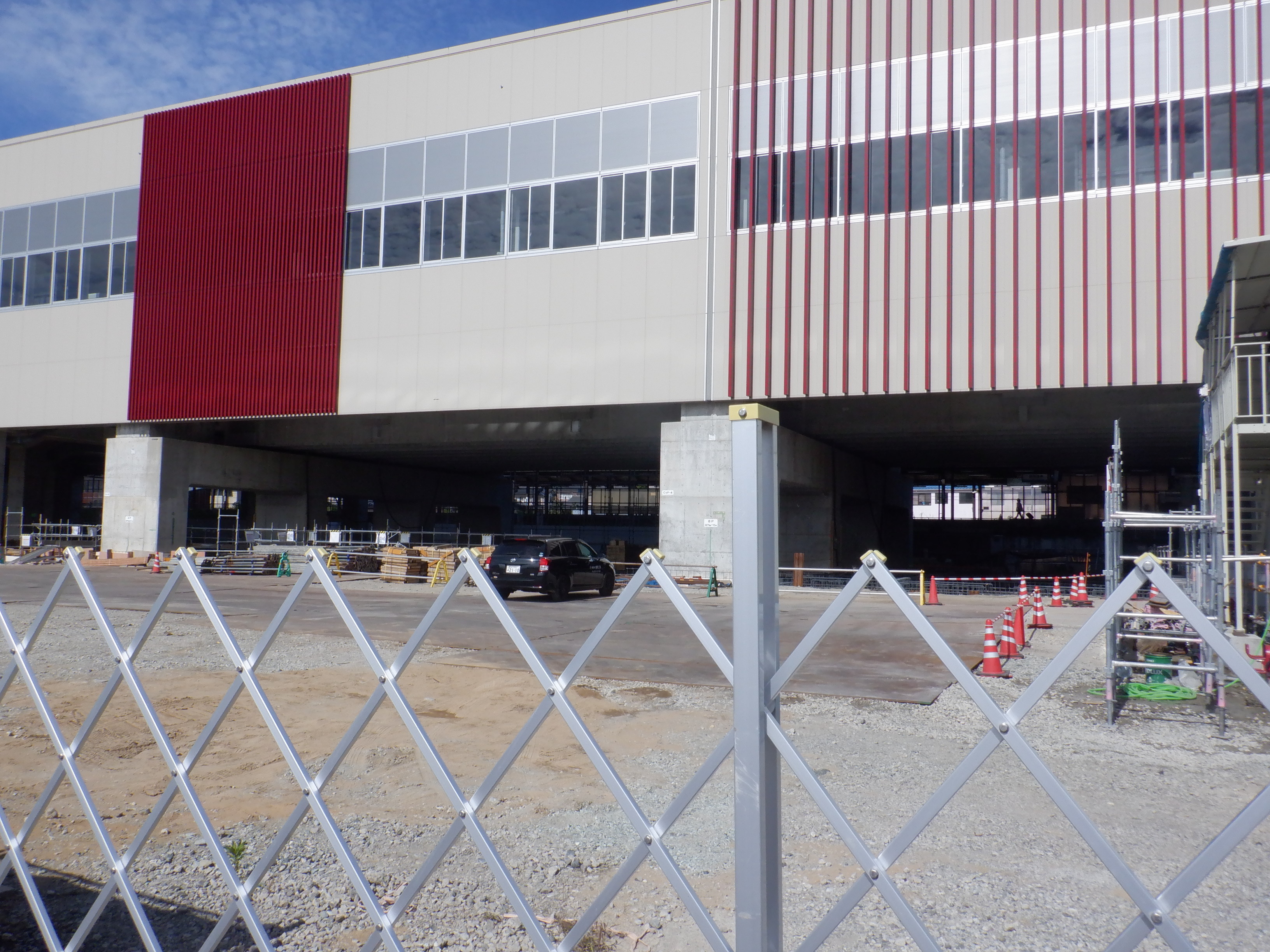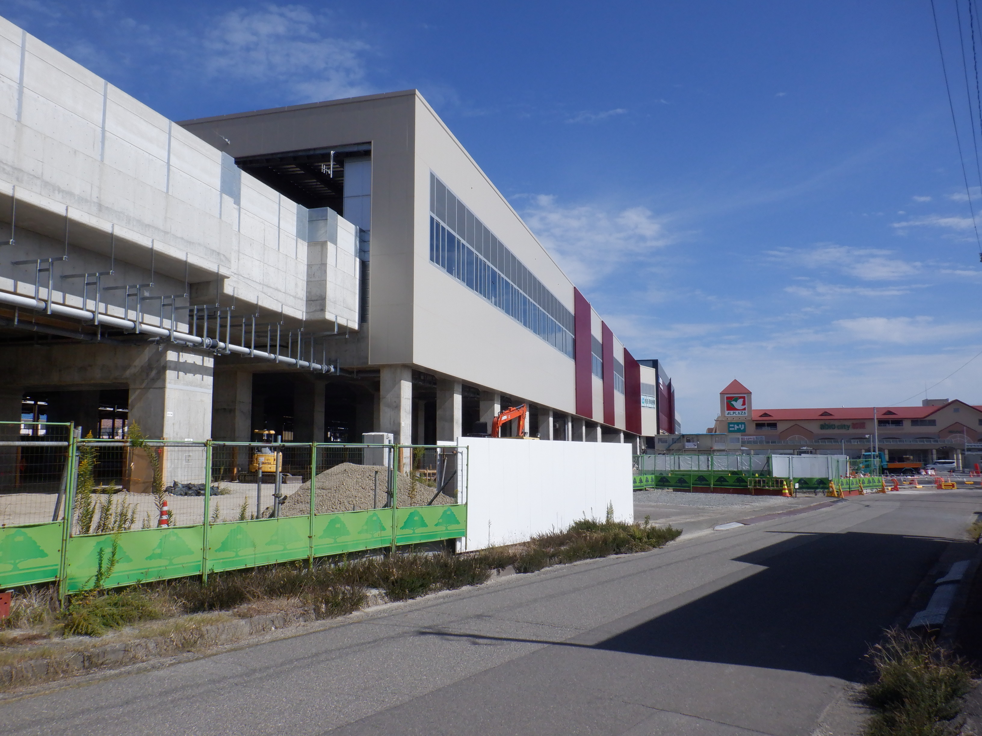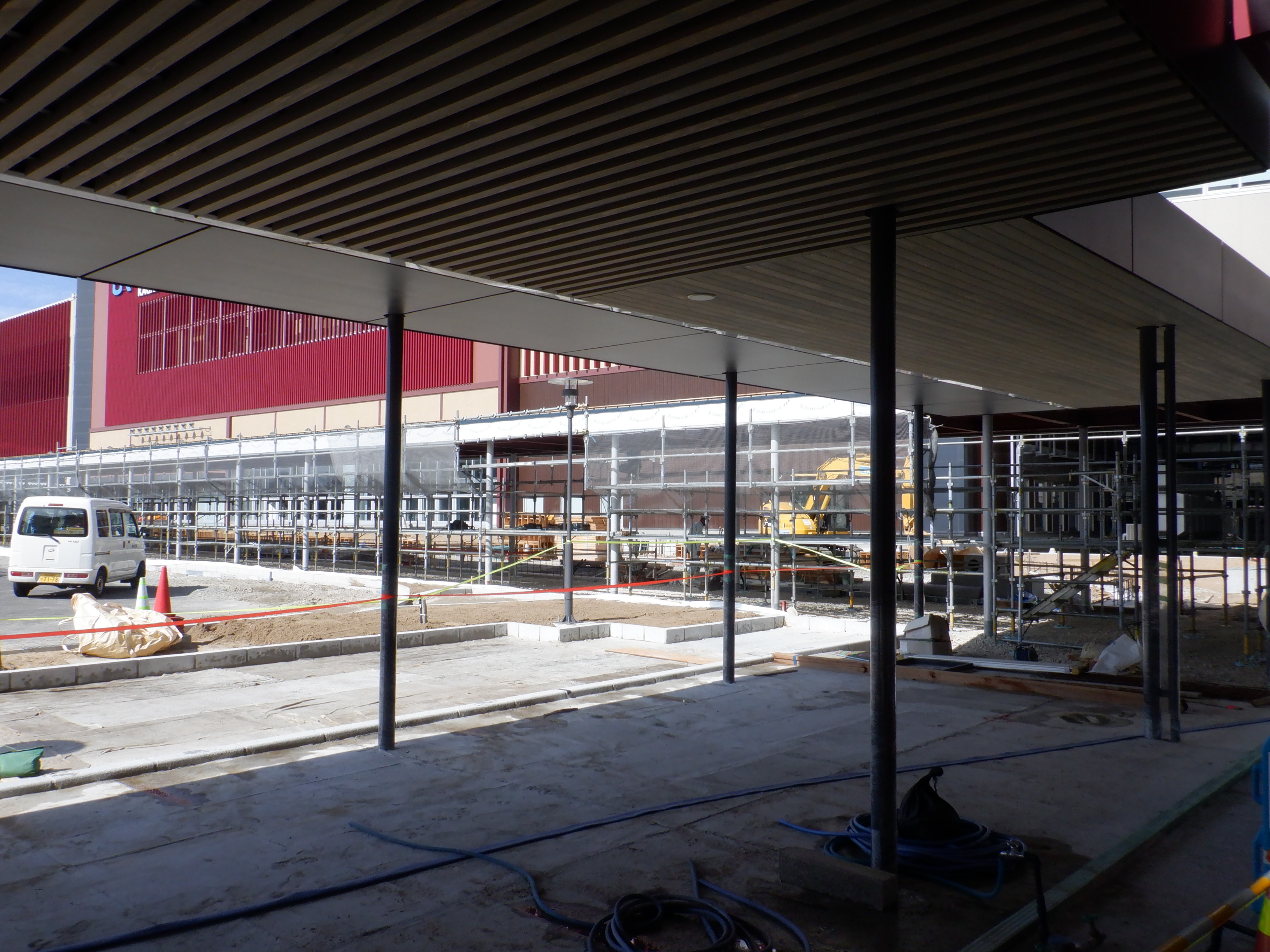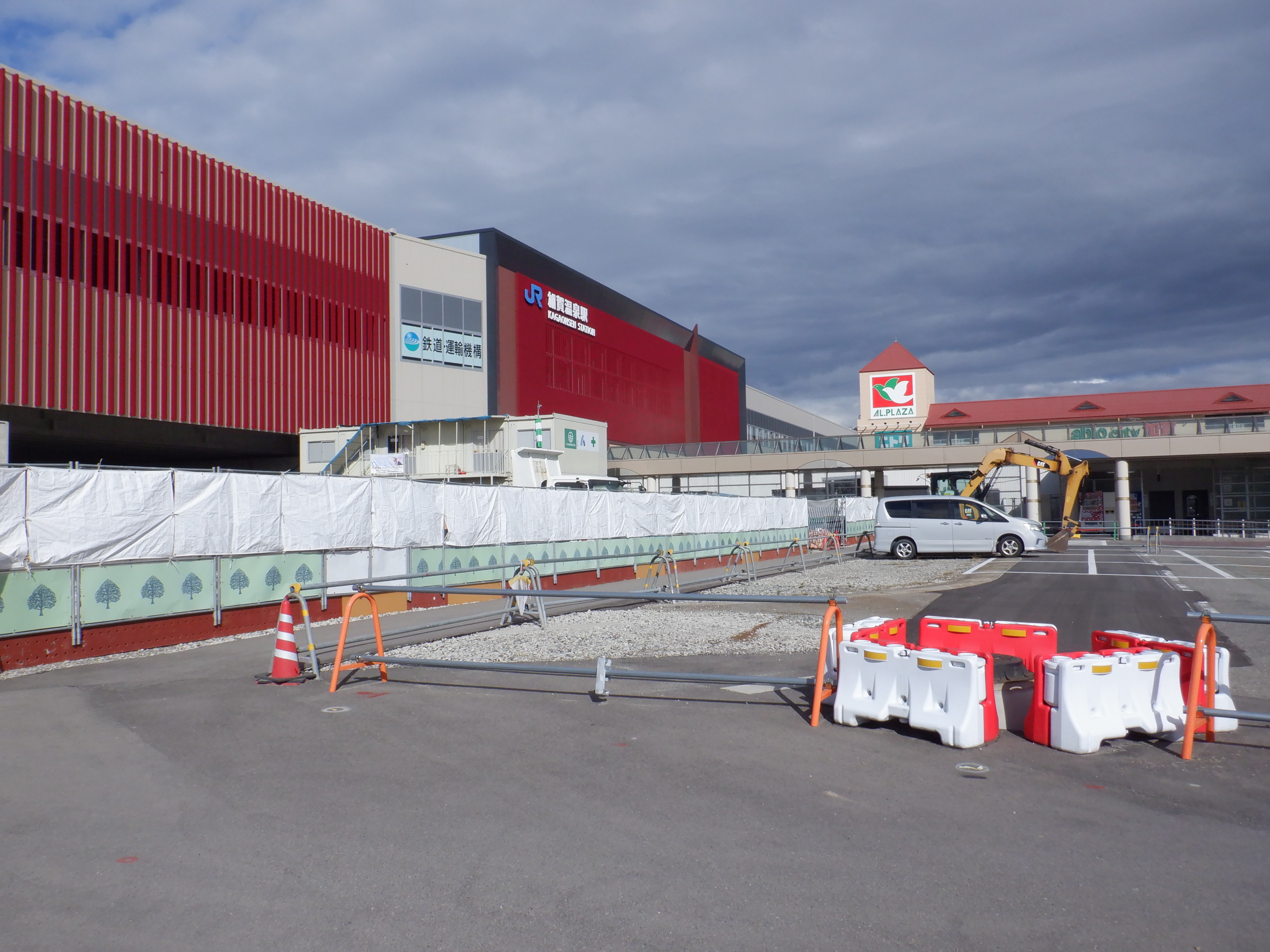 アルプラザ側のシェルター建設中のところと新幹線駅舎。