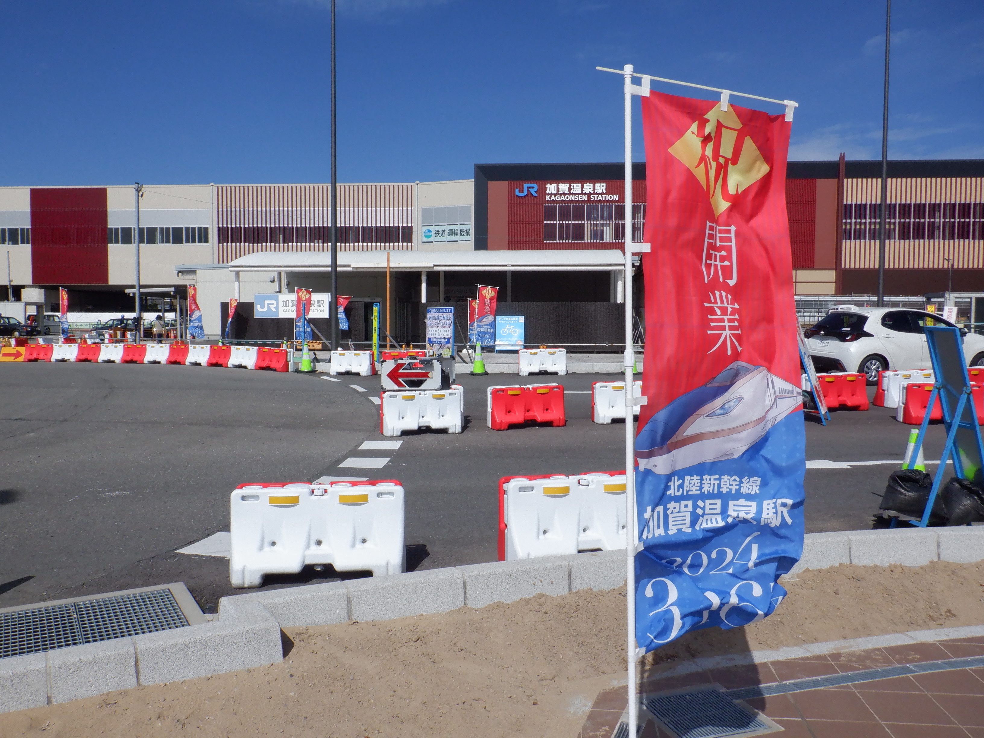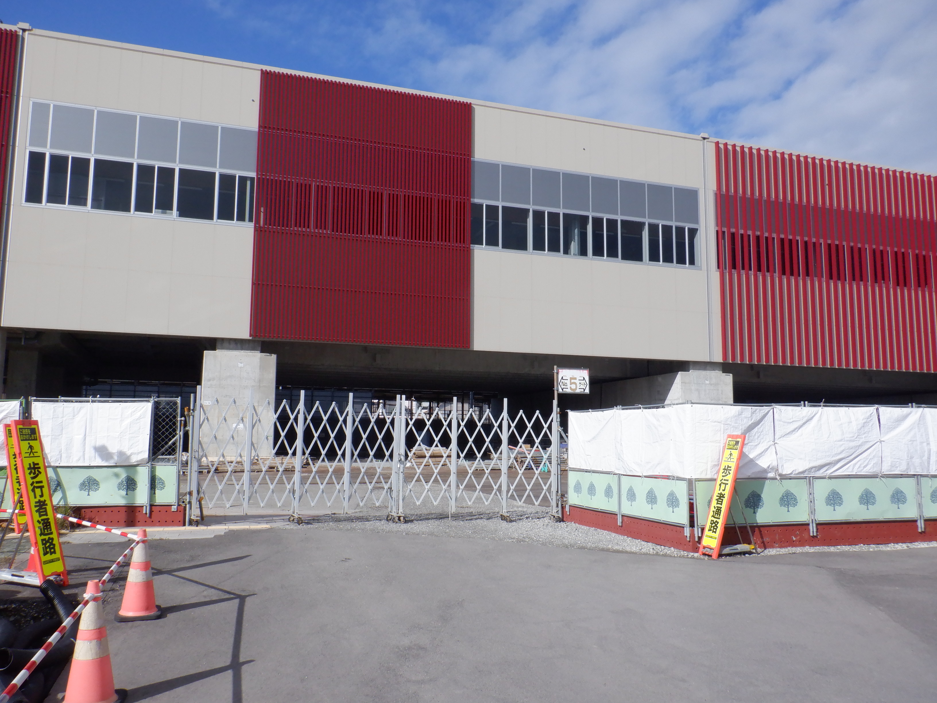 仮設駅舎のアルプラザ側から見た新幹線駅舎。