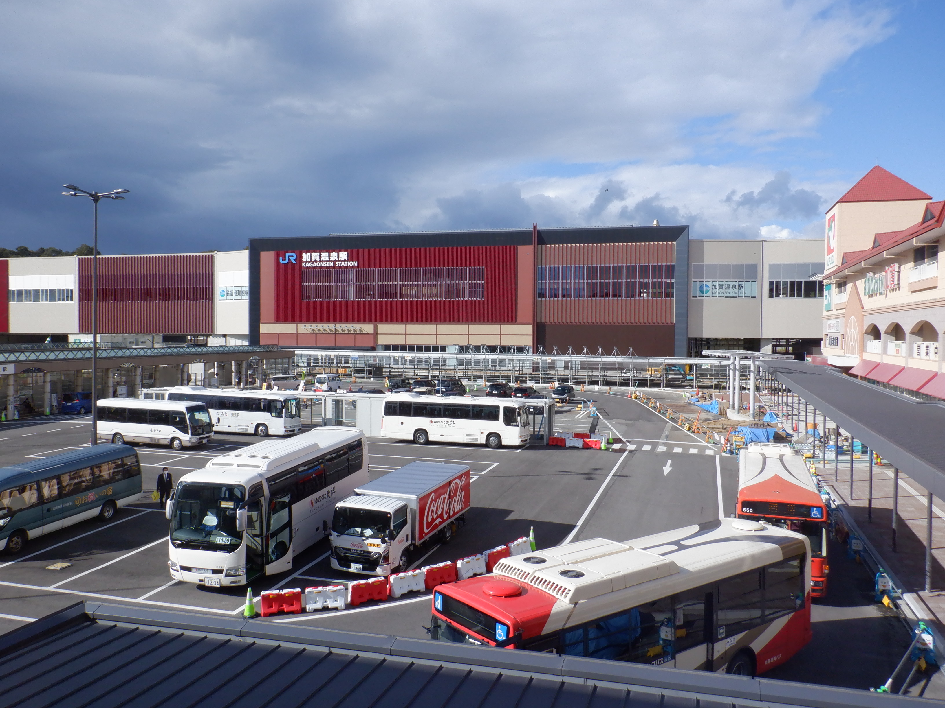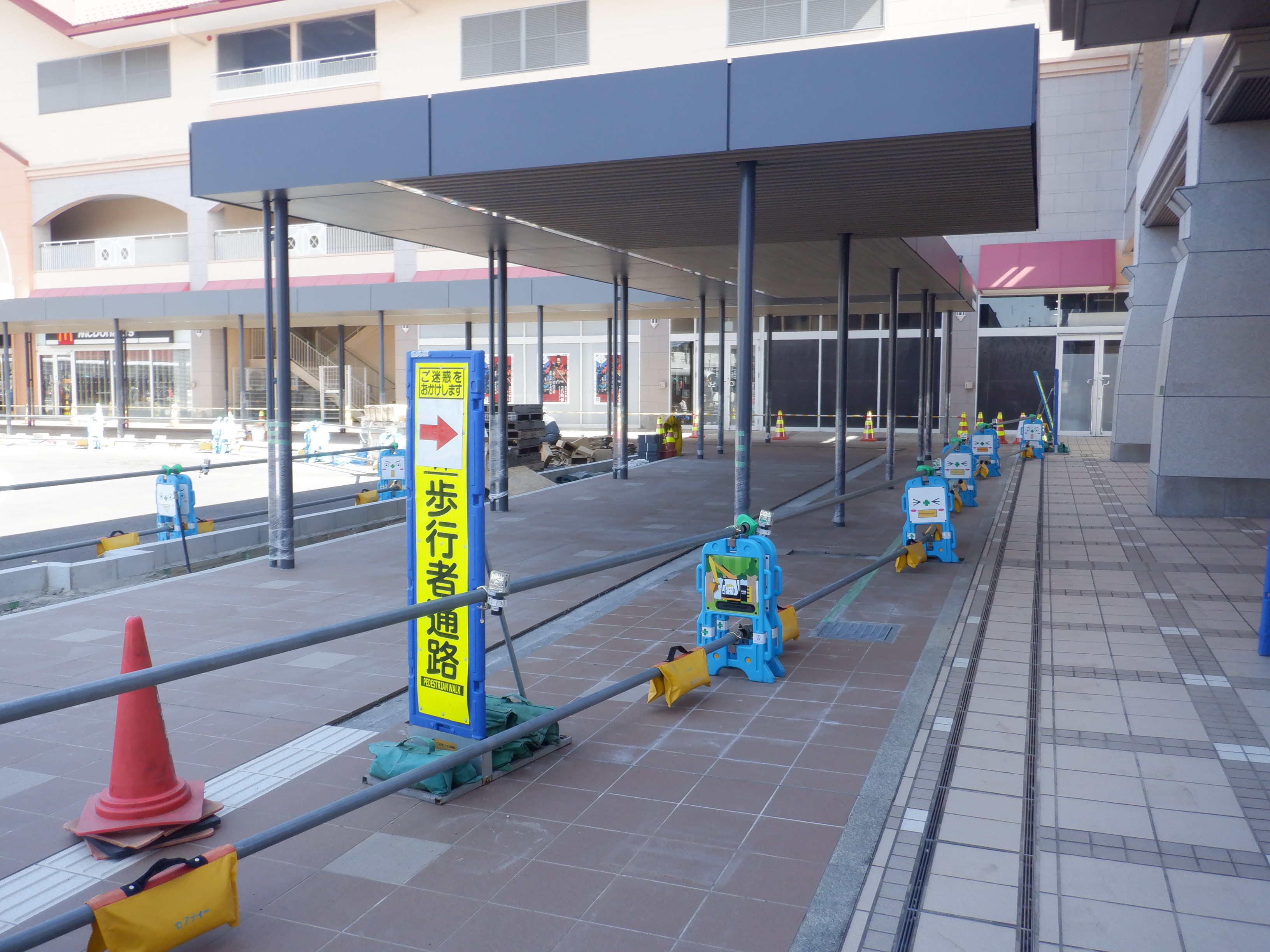 コンビニ・待合室等の前と仮設バスのりばだったところ。