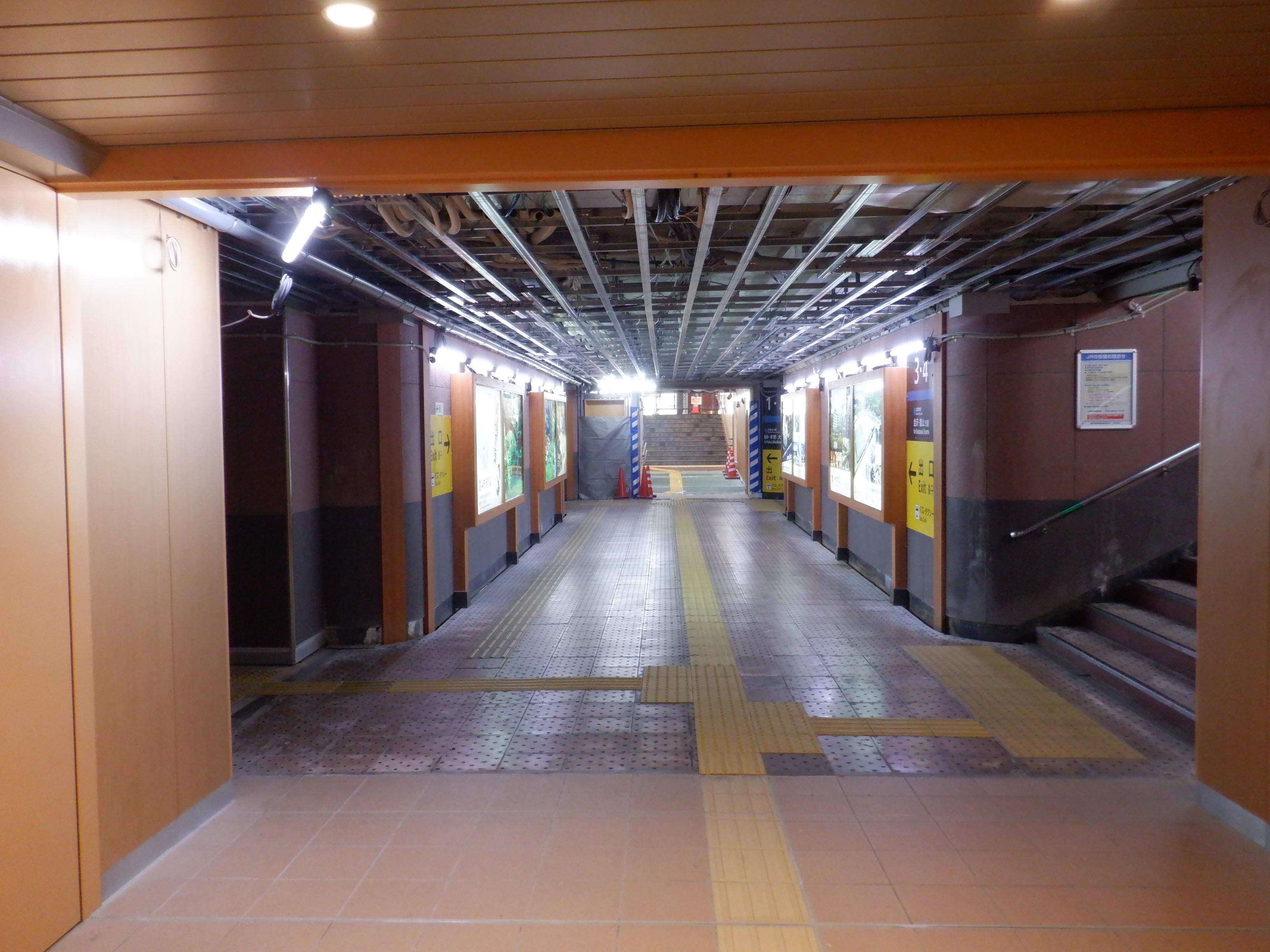 北口への地下自由通路への通路だったところ。バスのりばの跡もまだ残っています。
