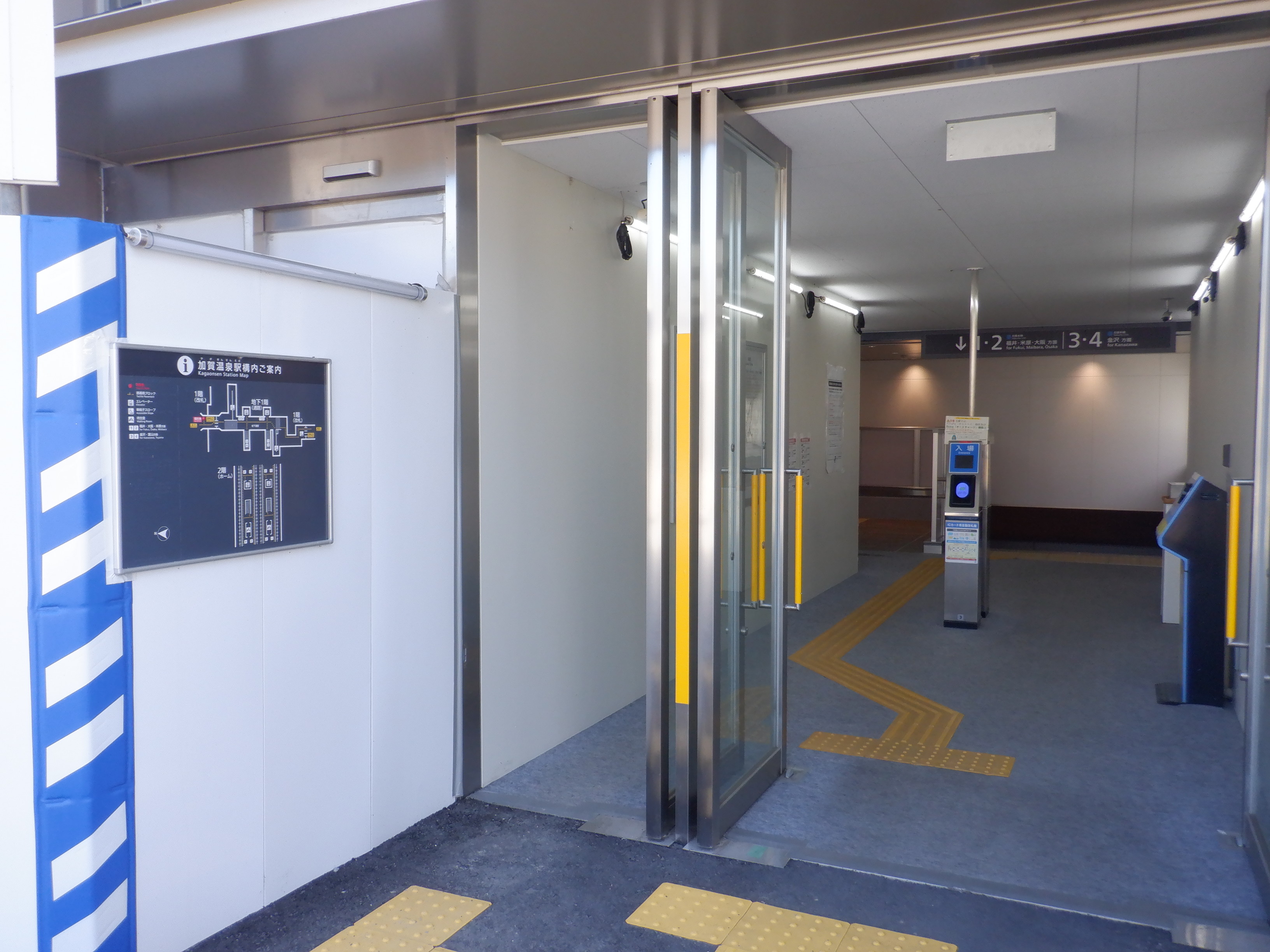 IRいしかわ鉄道の改札口となるところ。券売機が設置されるところも分かるようになってきました。