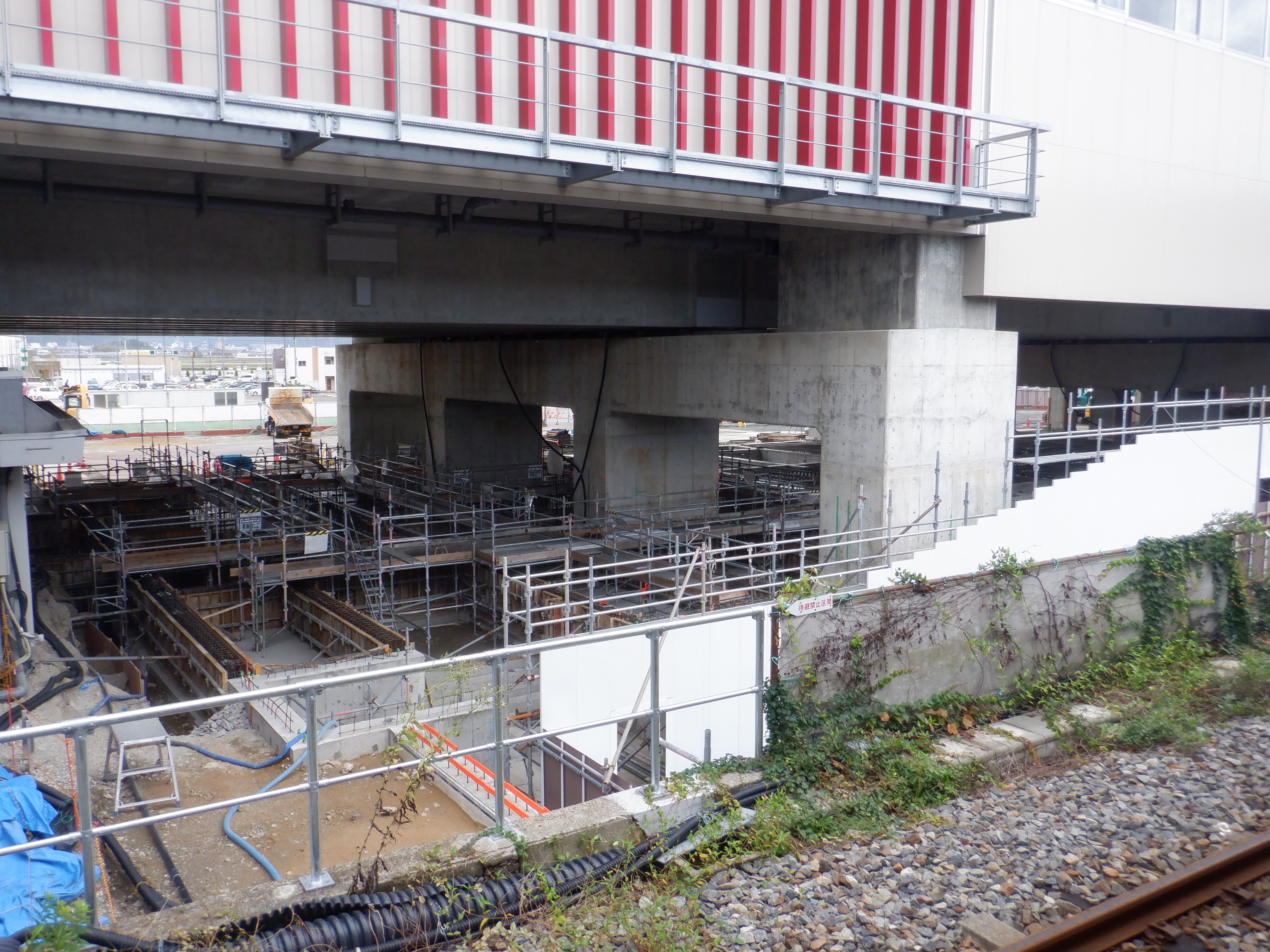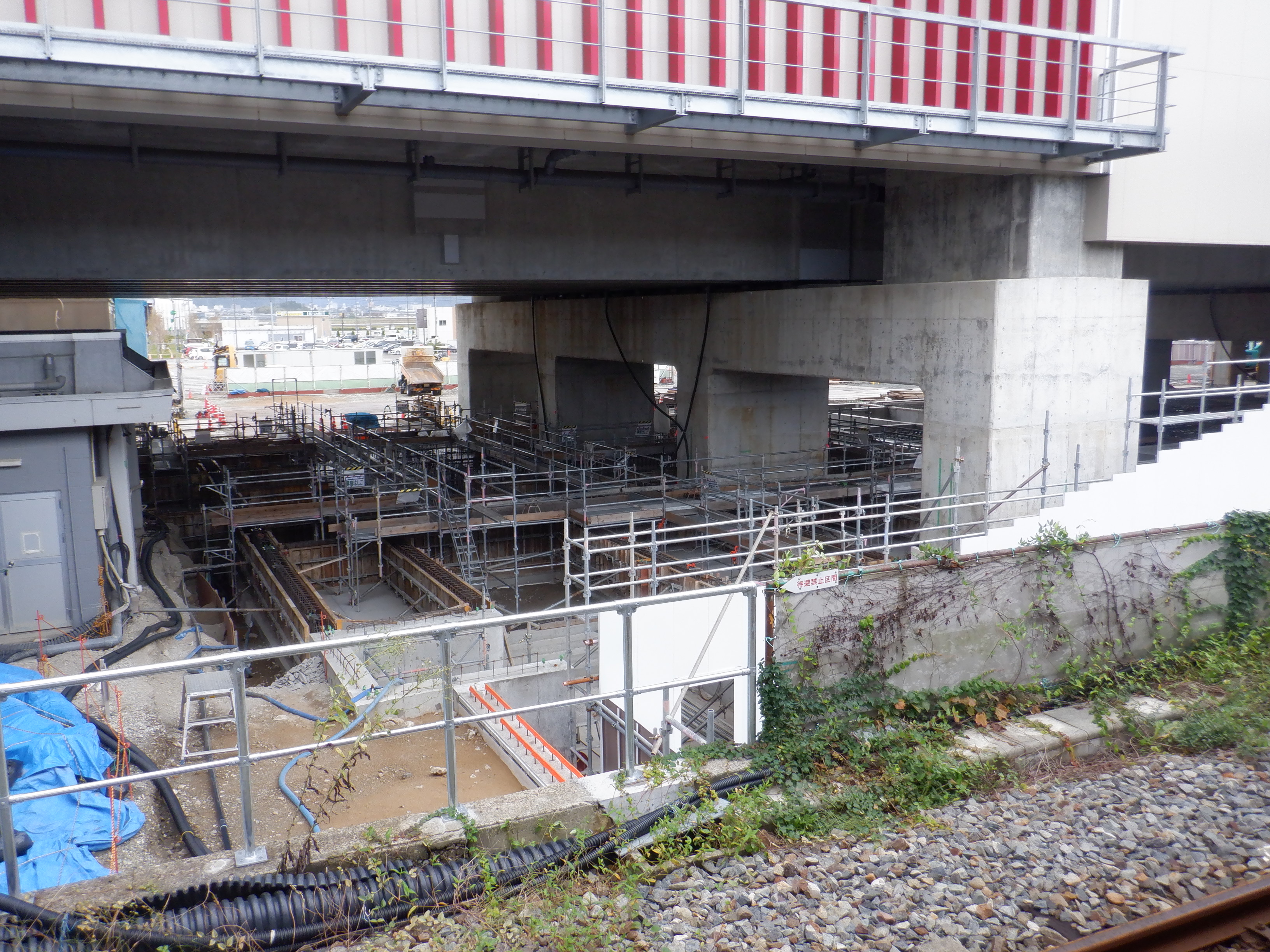 3・4番のりばから見た地下自由通路を再建設中のところ。