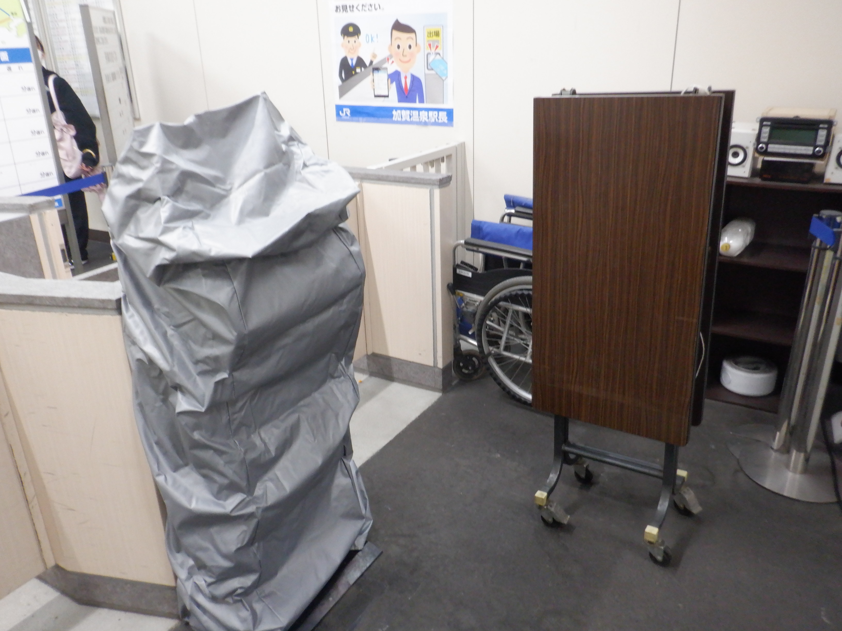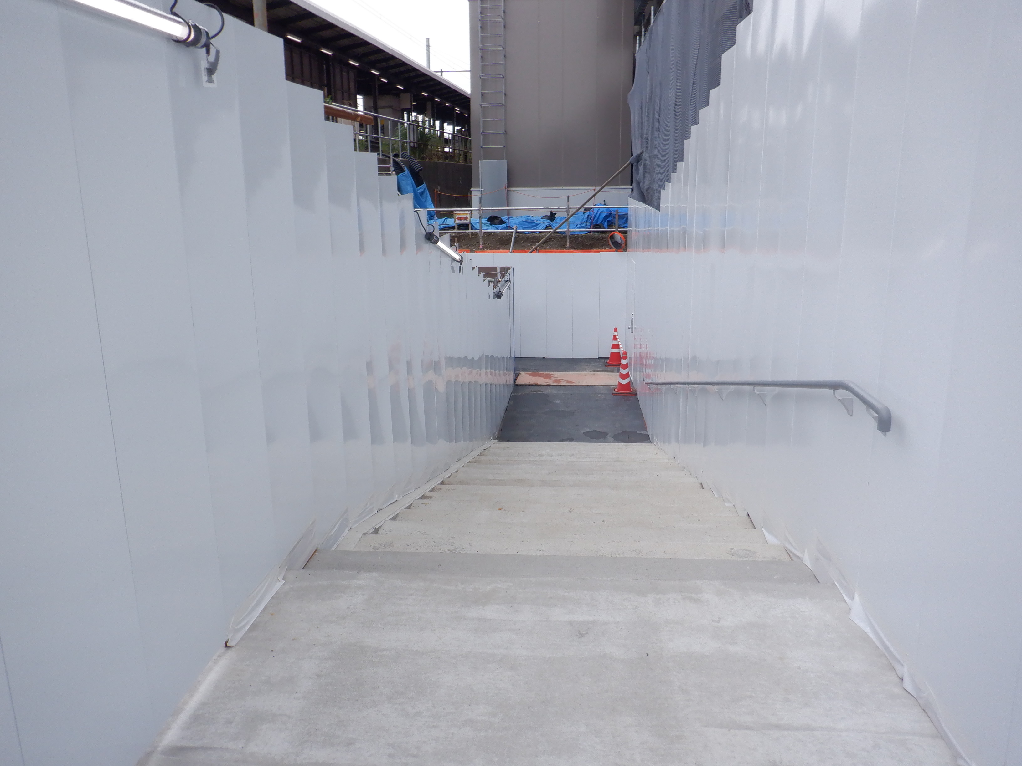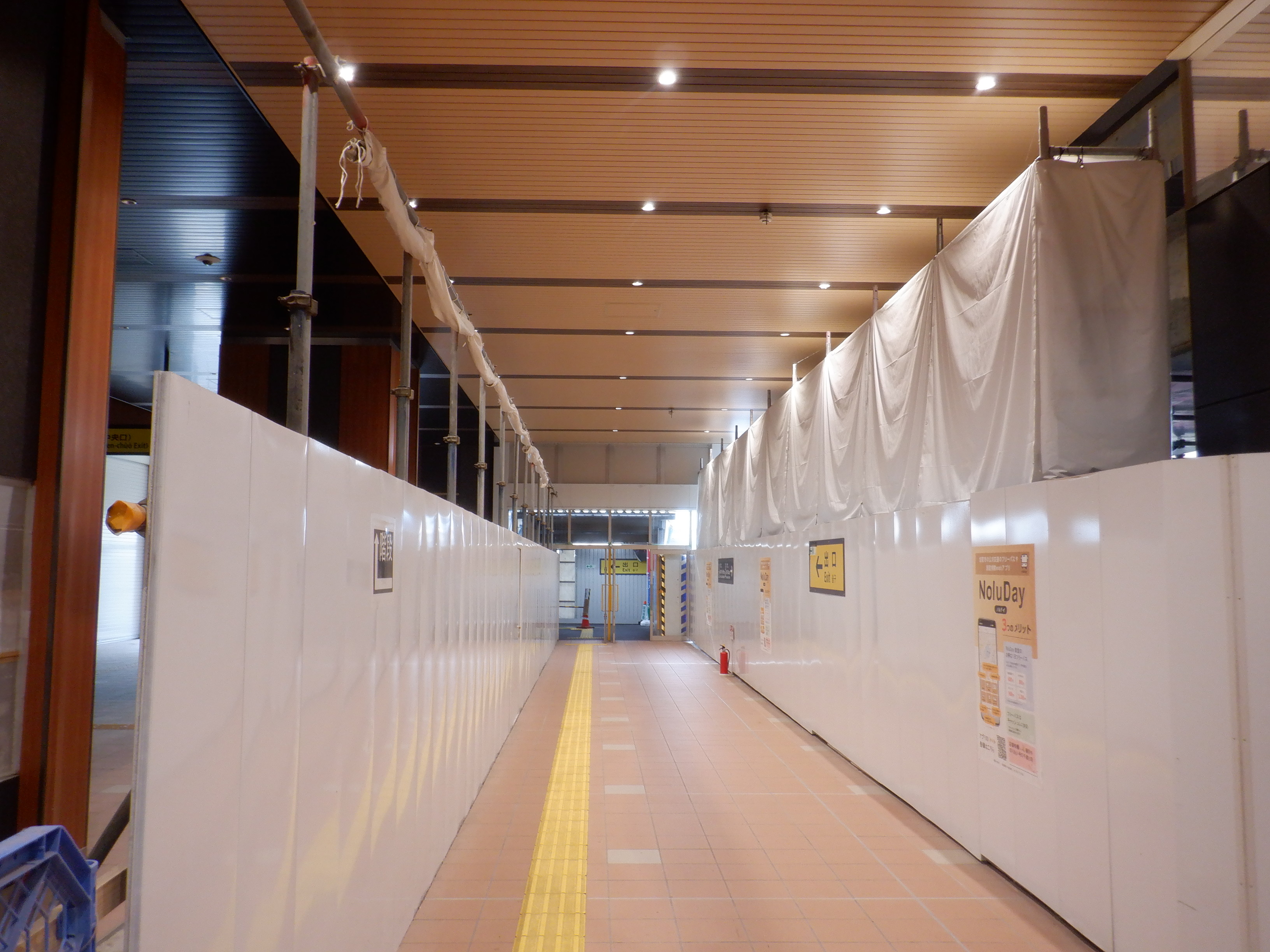 3・4番のりばから見た地下道の仮設出入口付近。
