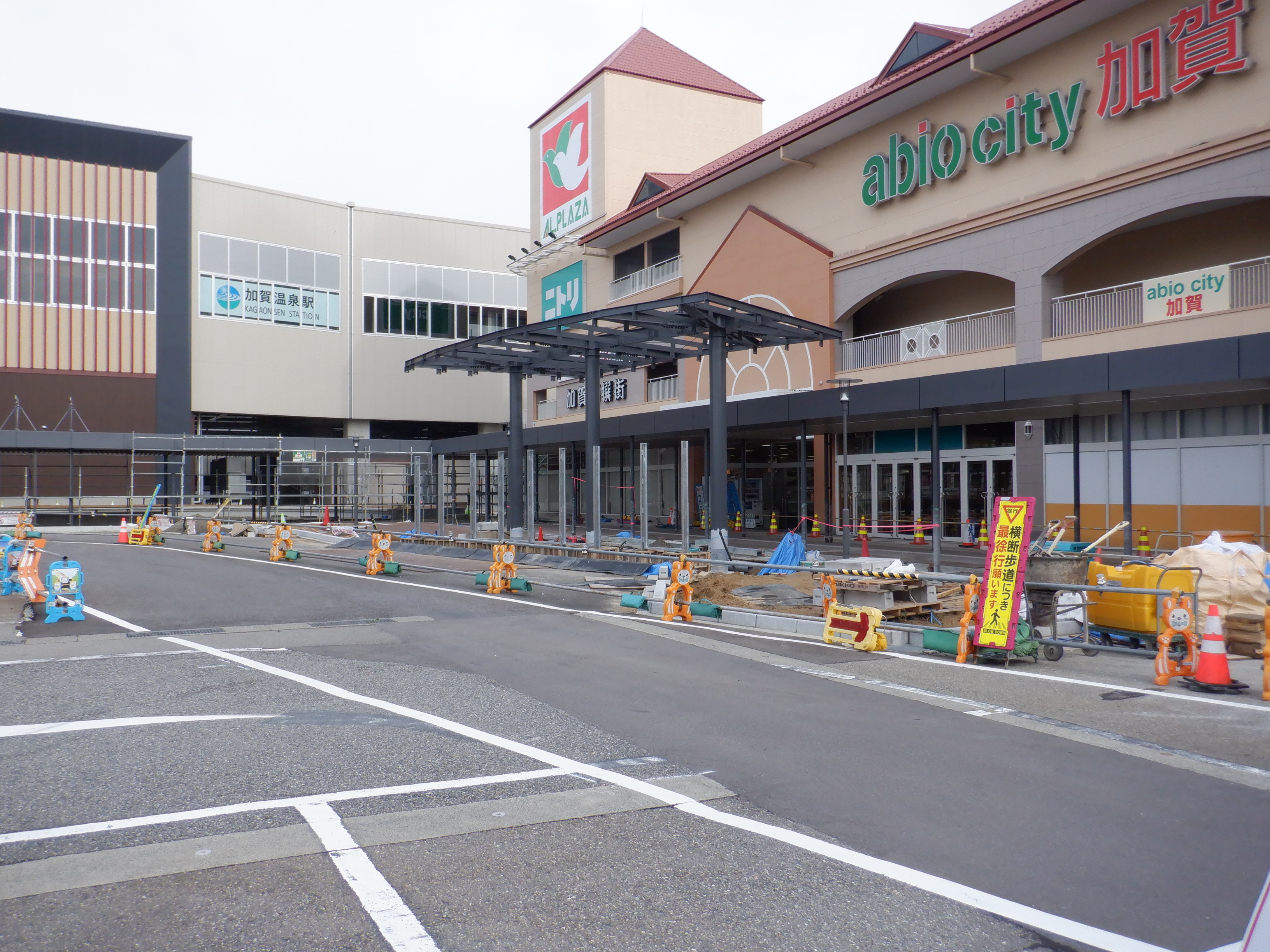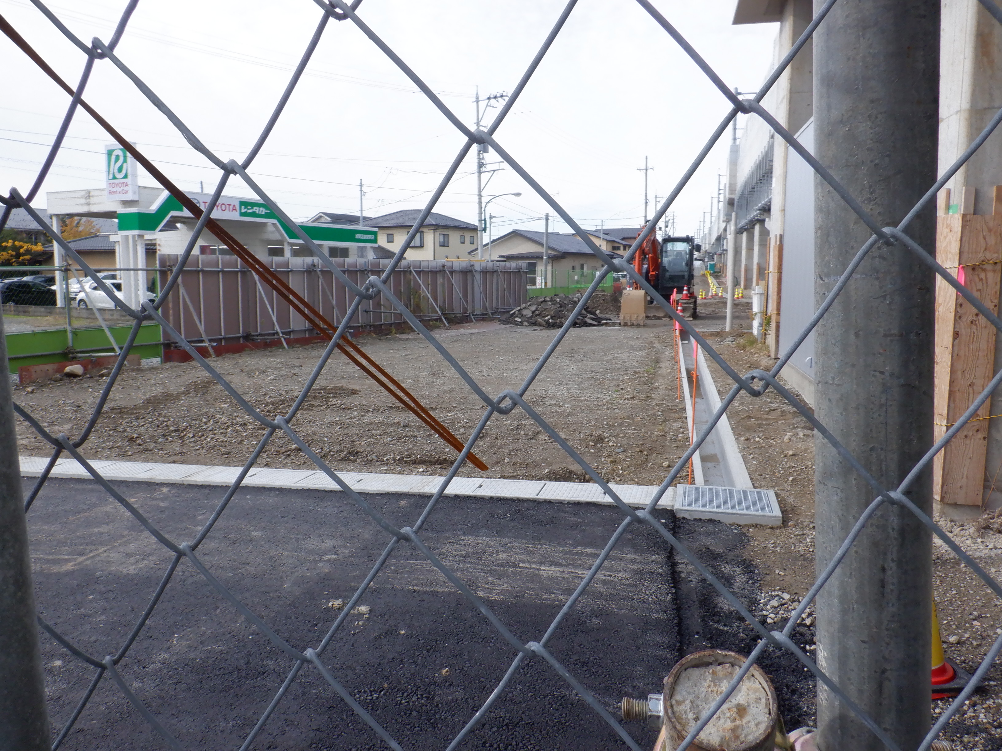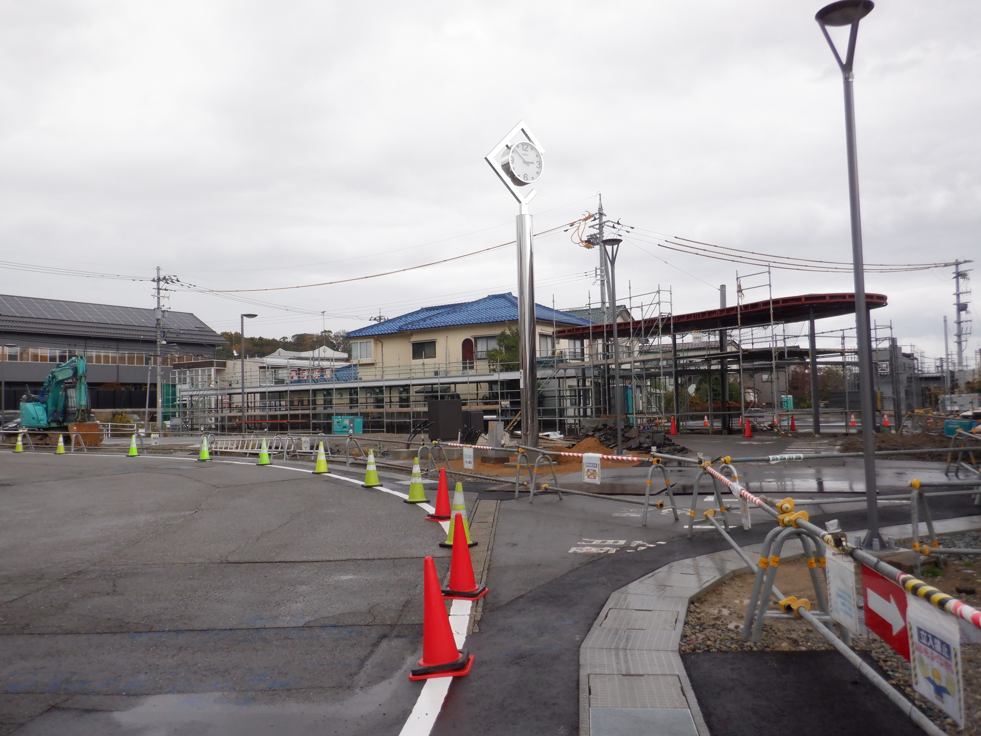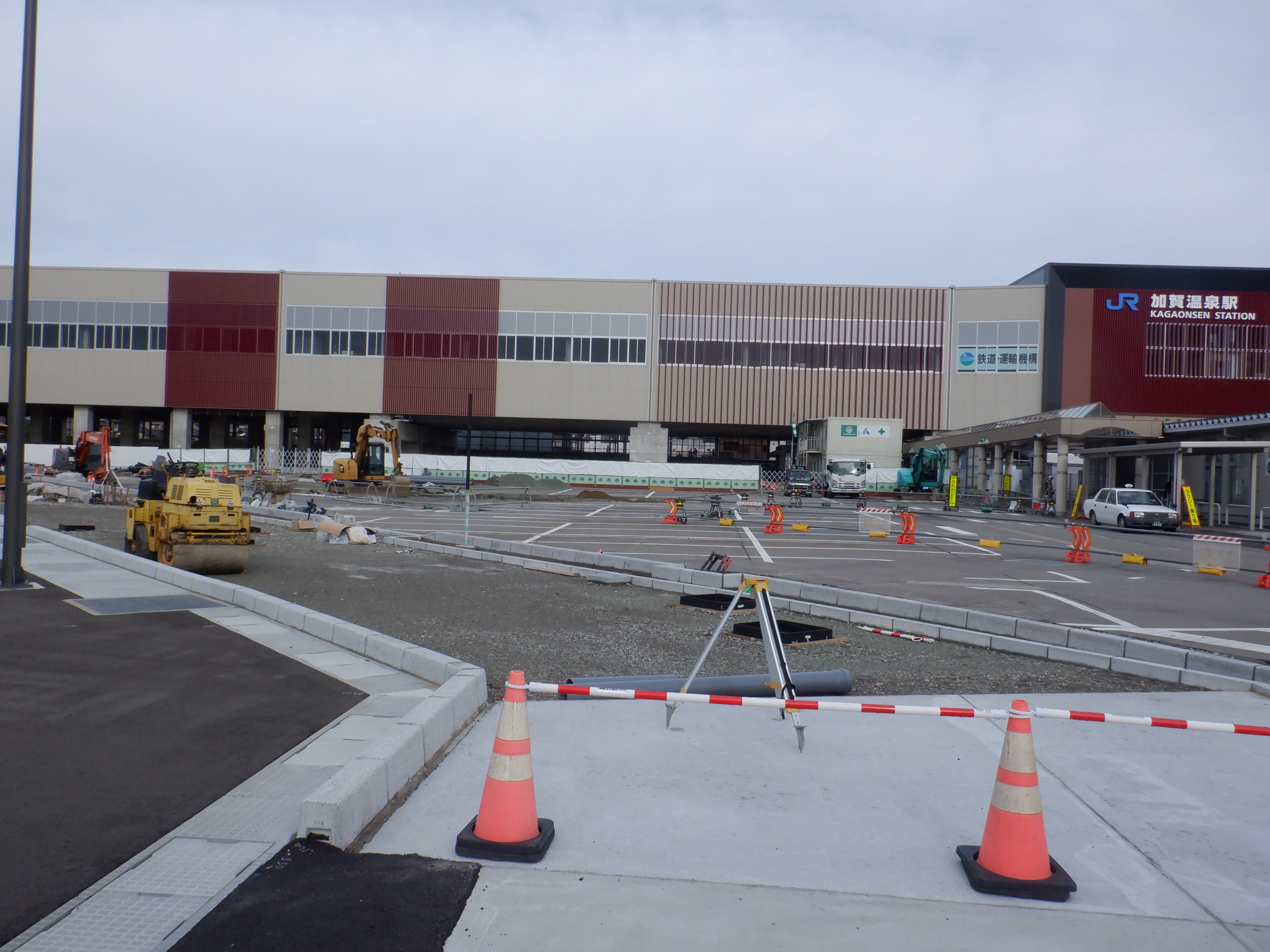大聖寺駅側。右側にレンタカー屋さん建設中の様子が見えます。