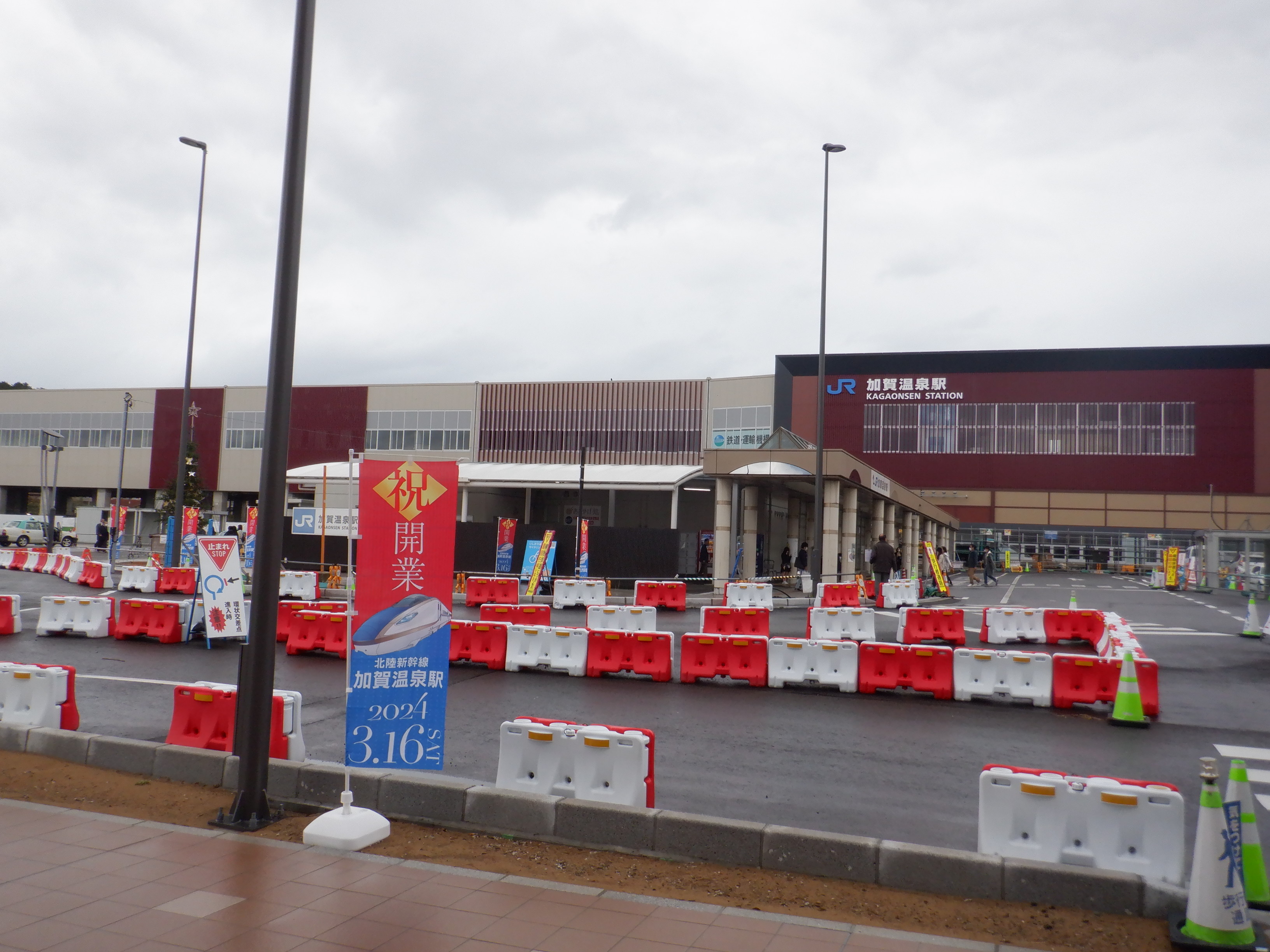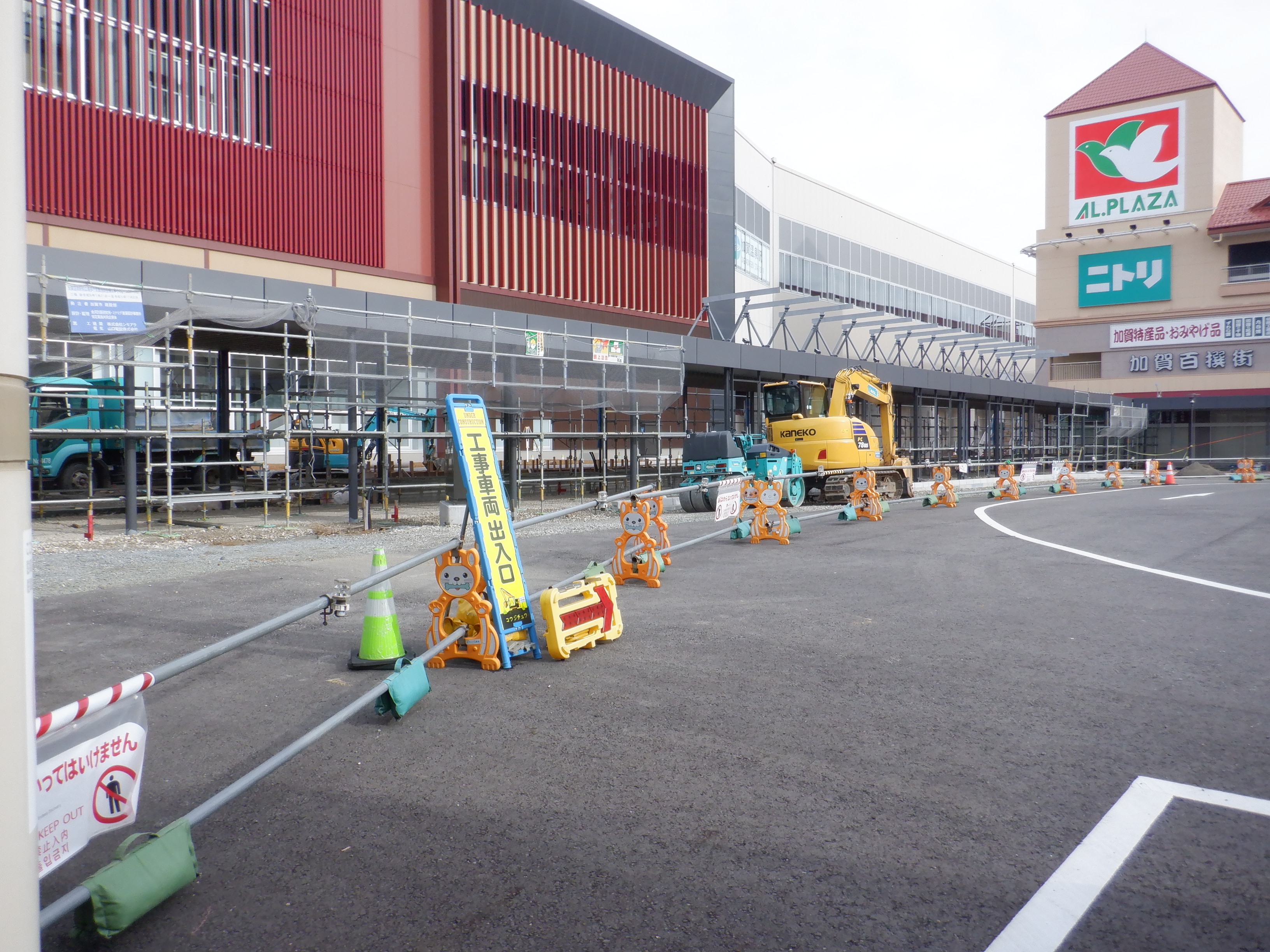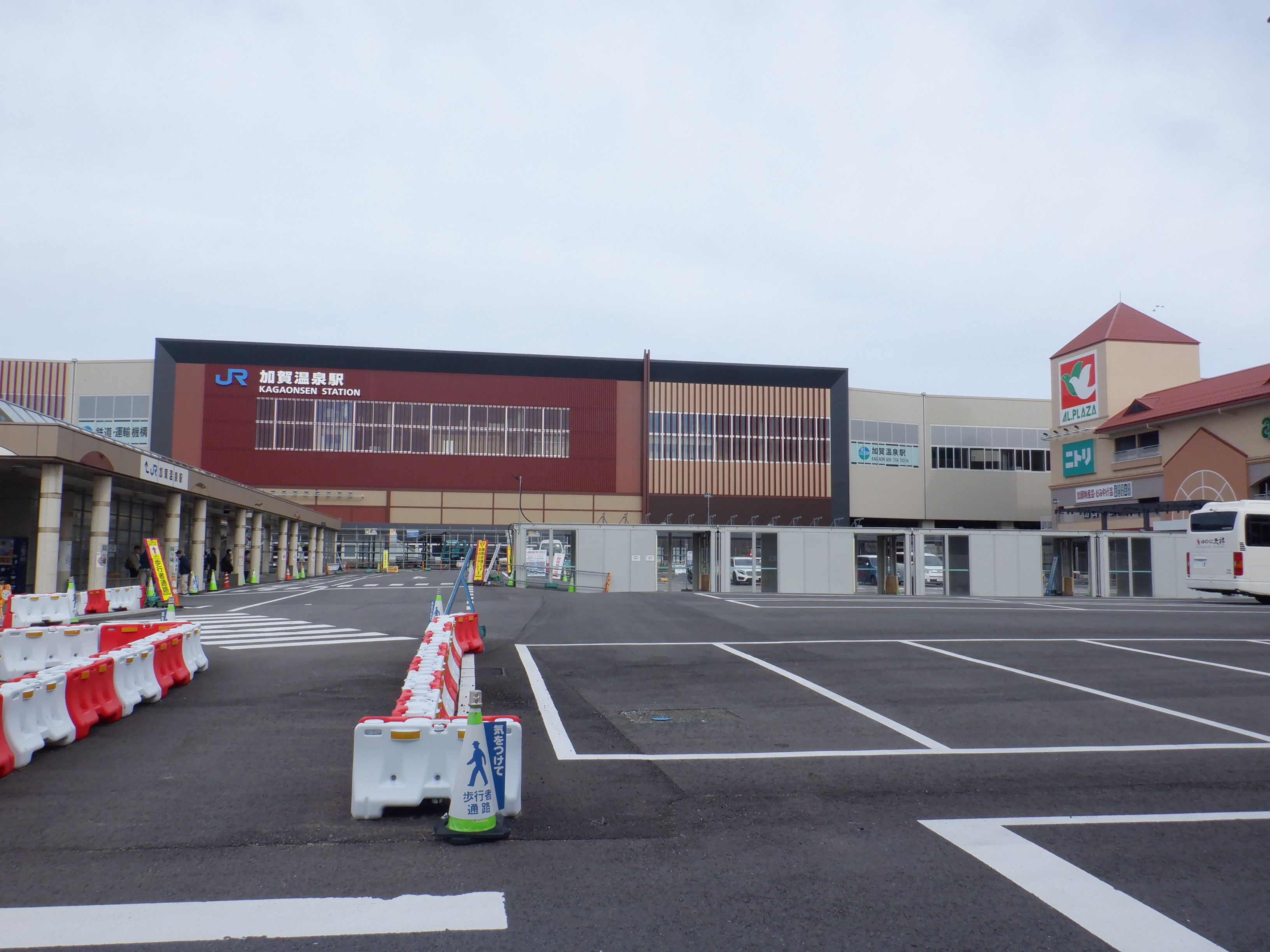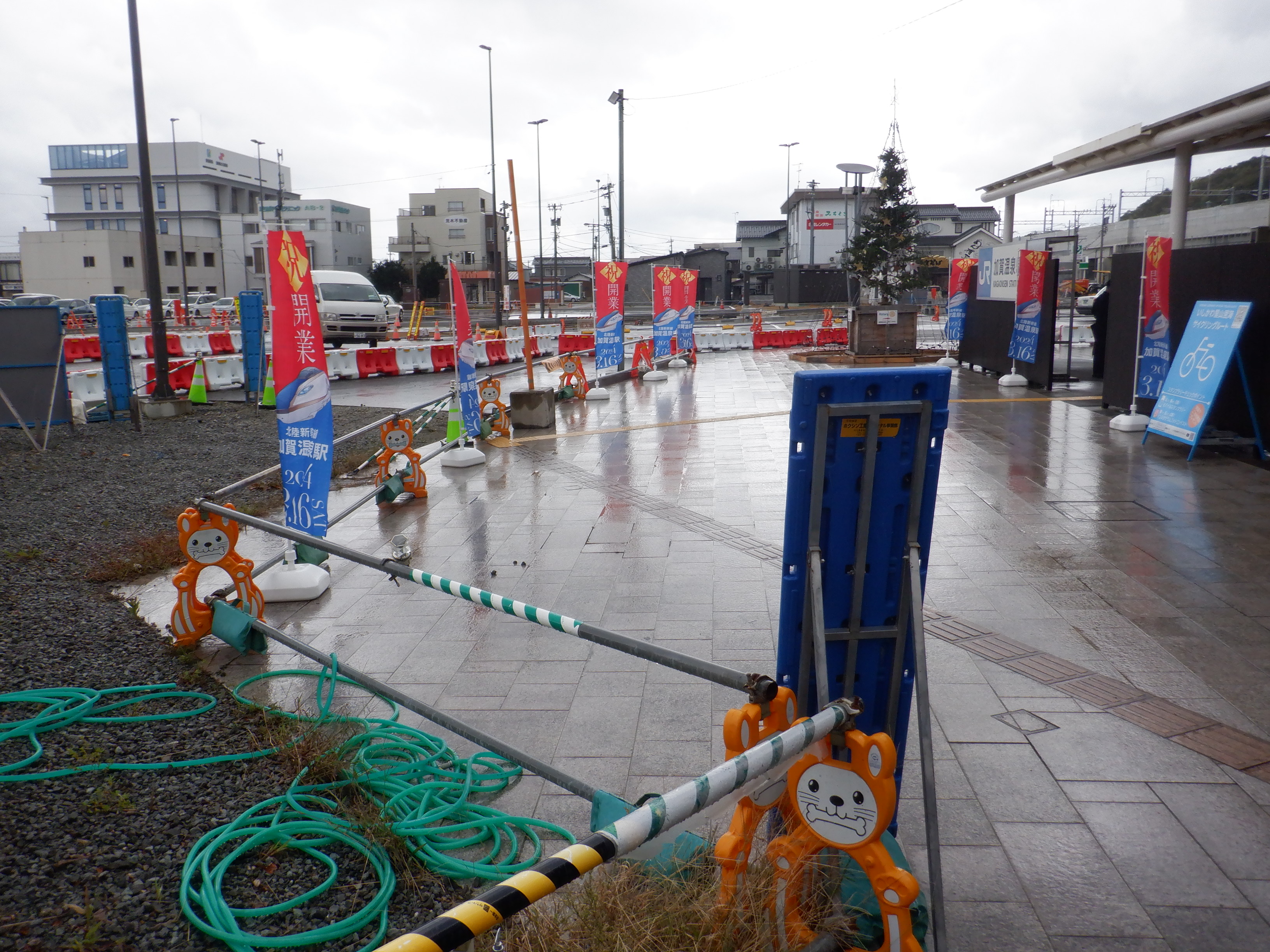 大聖寺駅側。右側にレンタカー屋さん建設中の様子が見えます。