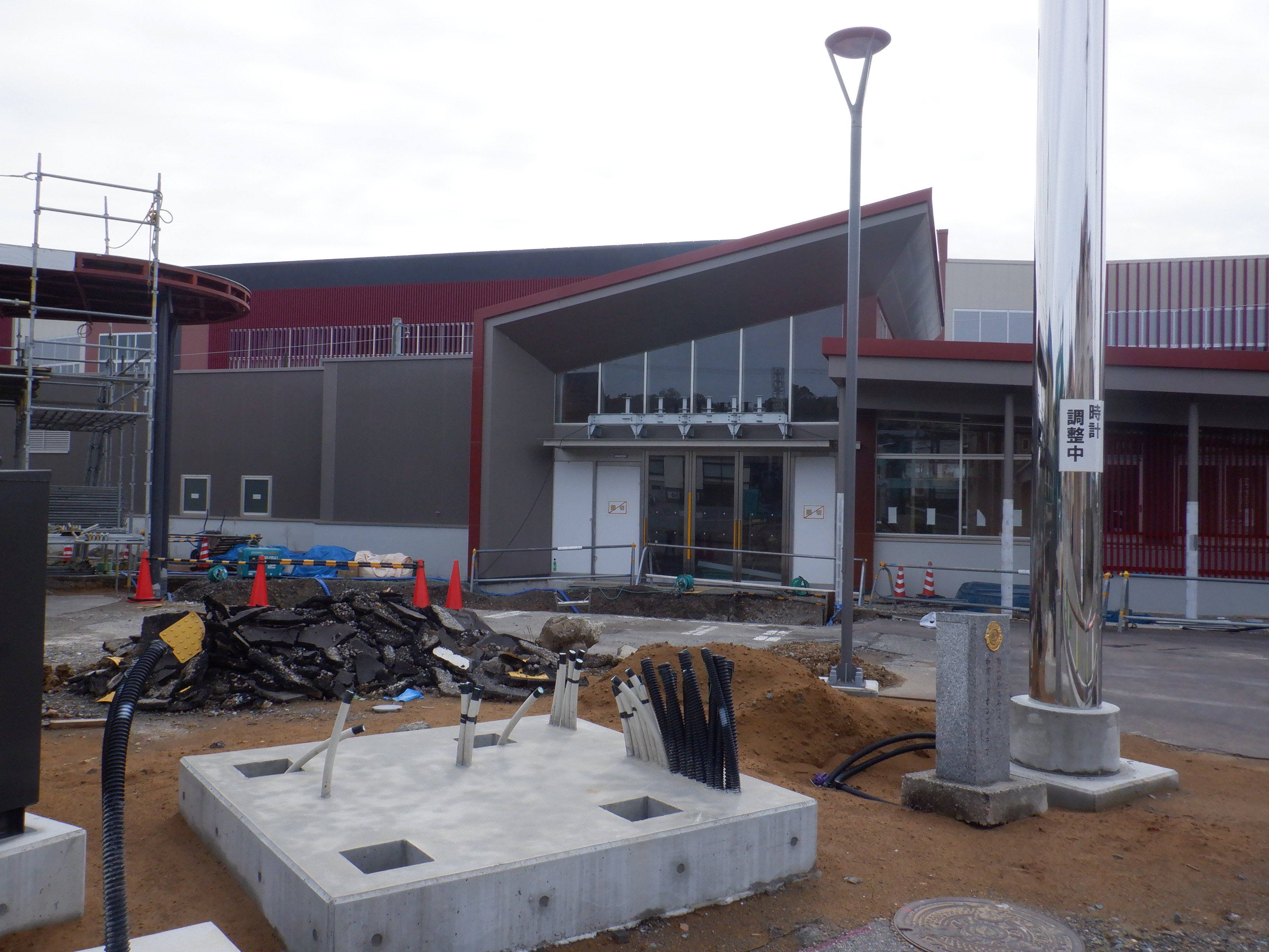 北口の駅前広場整備中の様子。