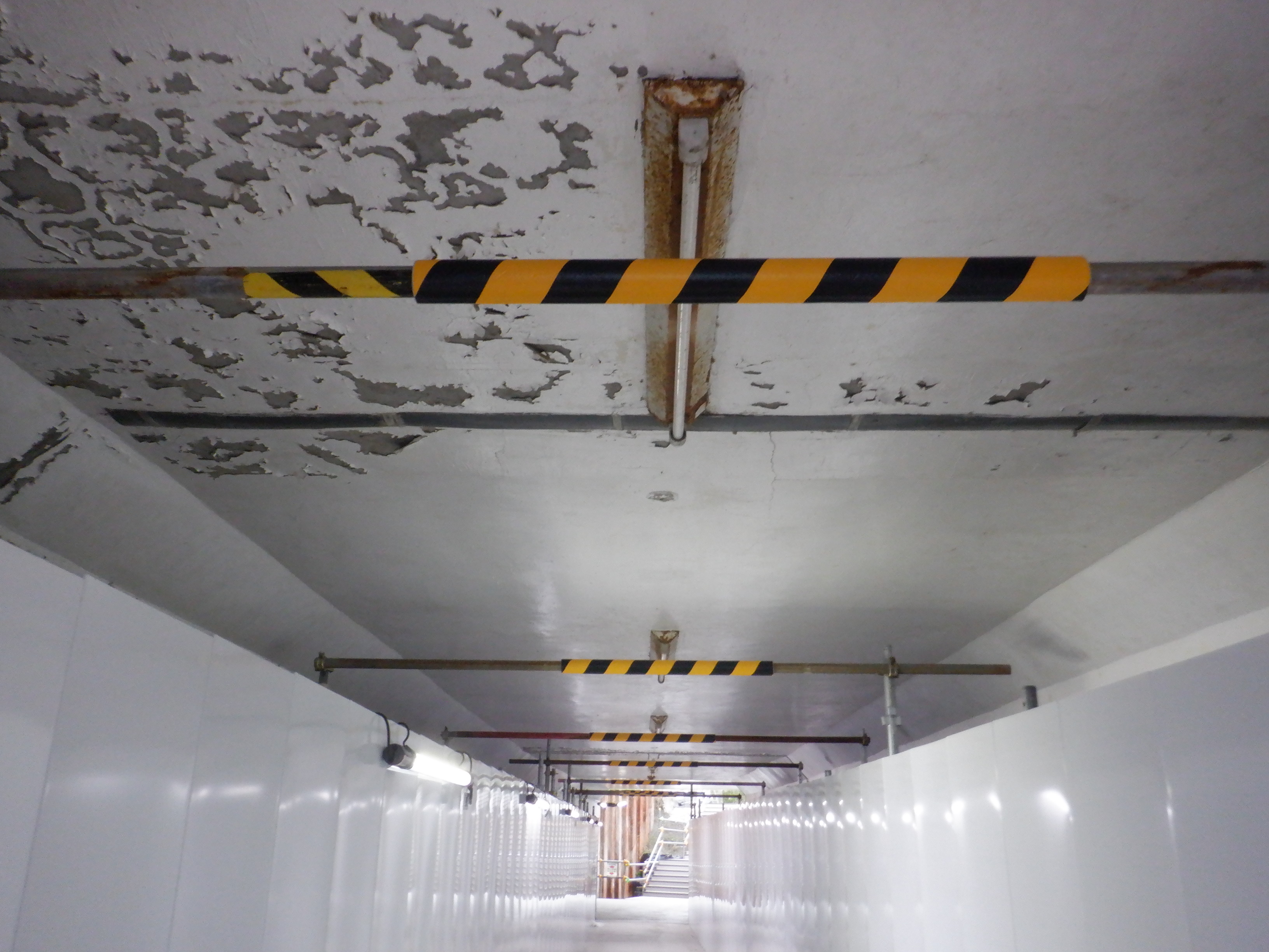 迂回路を通り北口へ。地下道の天井にかつての地下自由通路の名残が見えます。