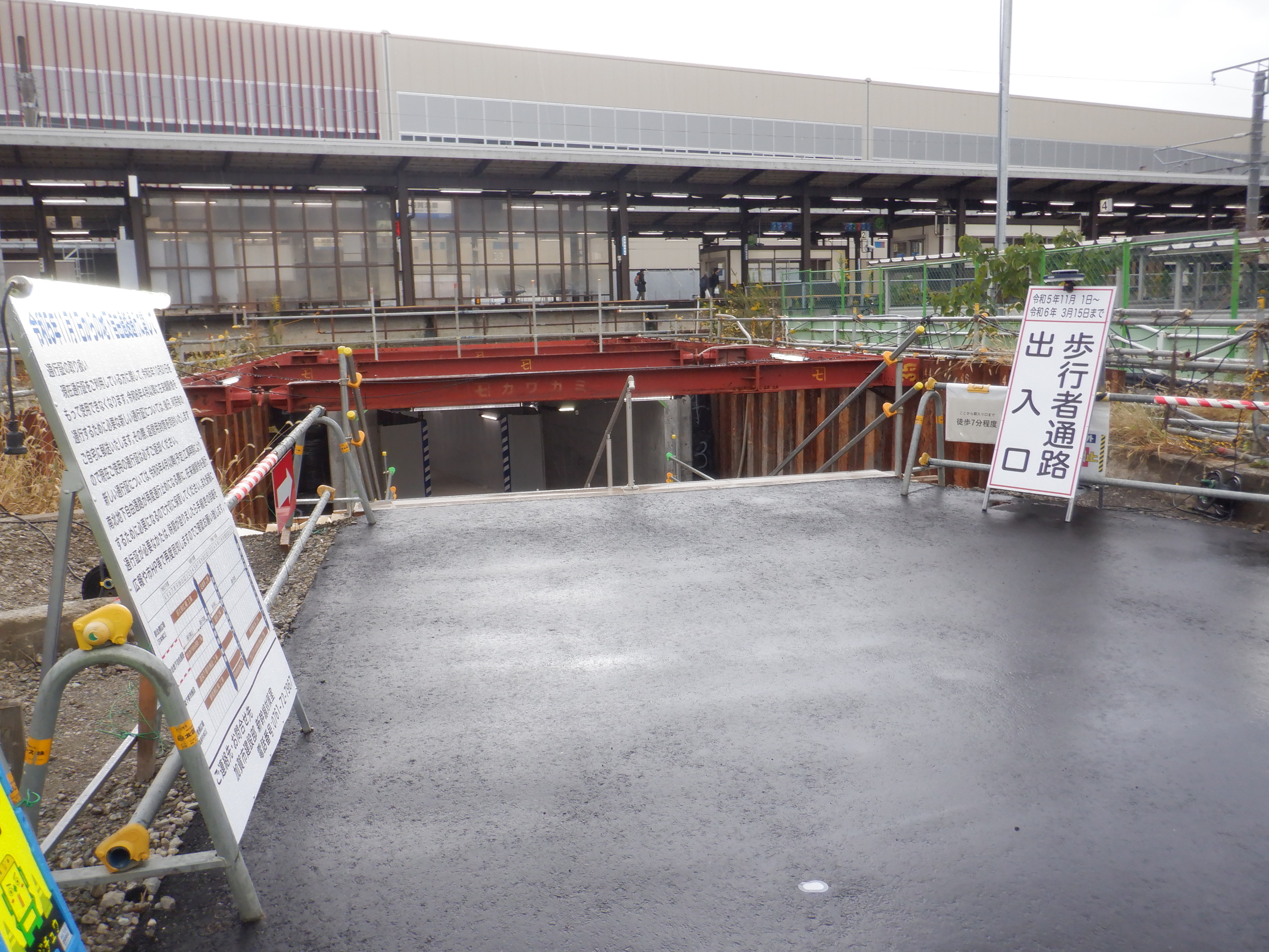 3・4番のりばから見た仮設地下道出入口付近。