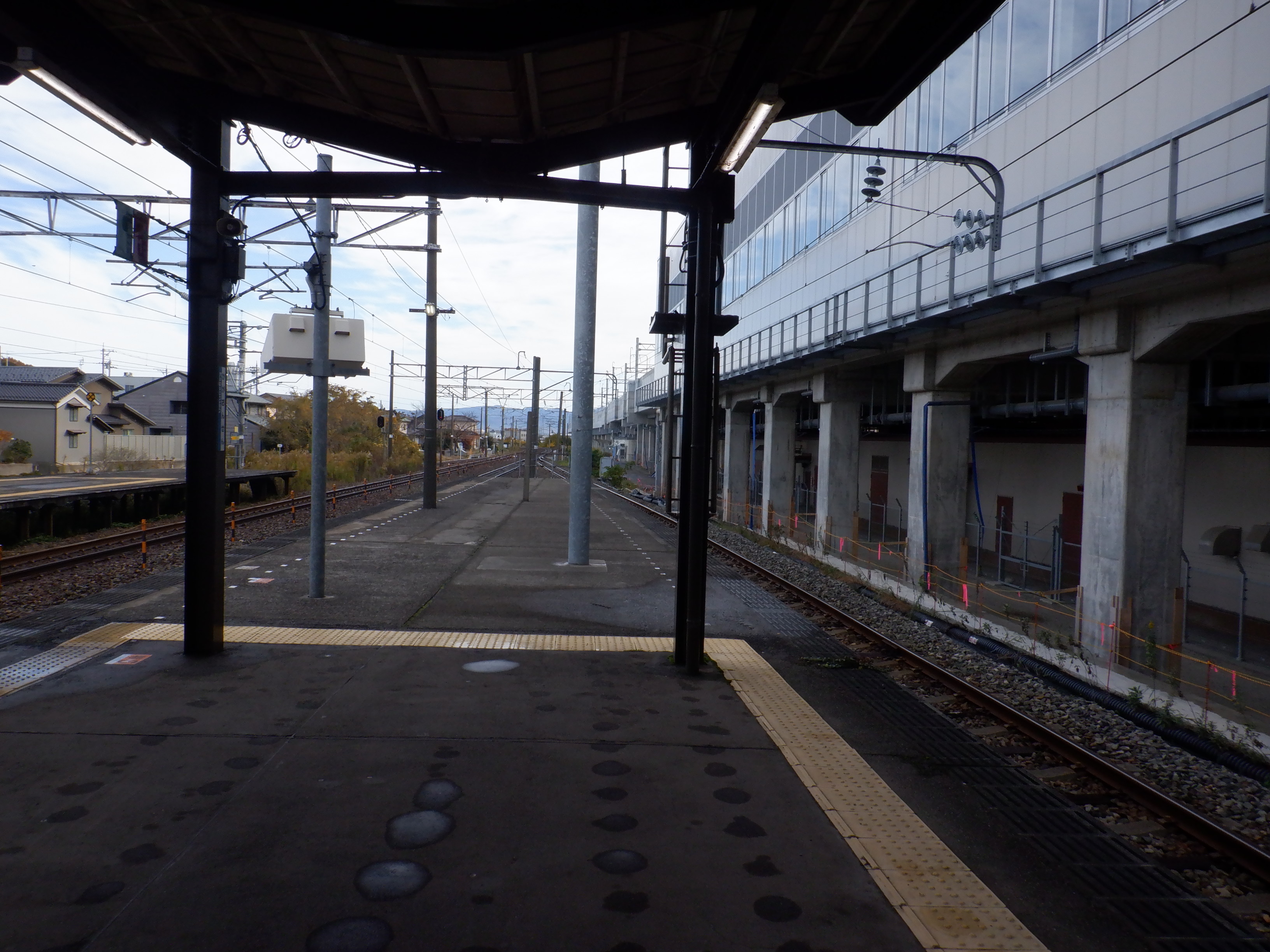 迂回路から見た在来線のホーム。