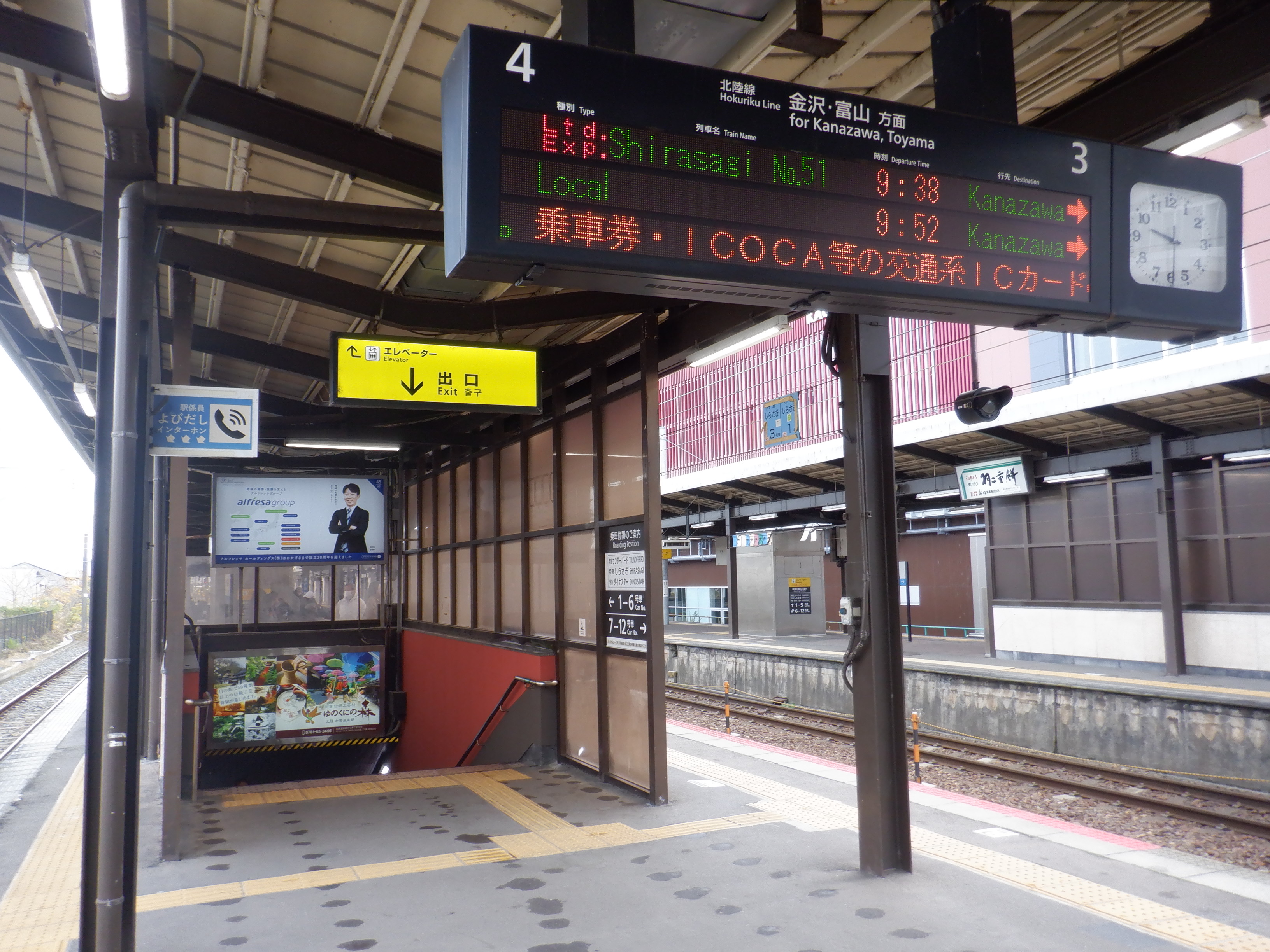 1・2番のりば側は北陸本線の部分と、並んでいる駅の部分もシールになっています。
