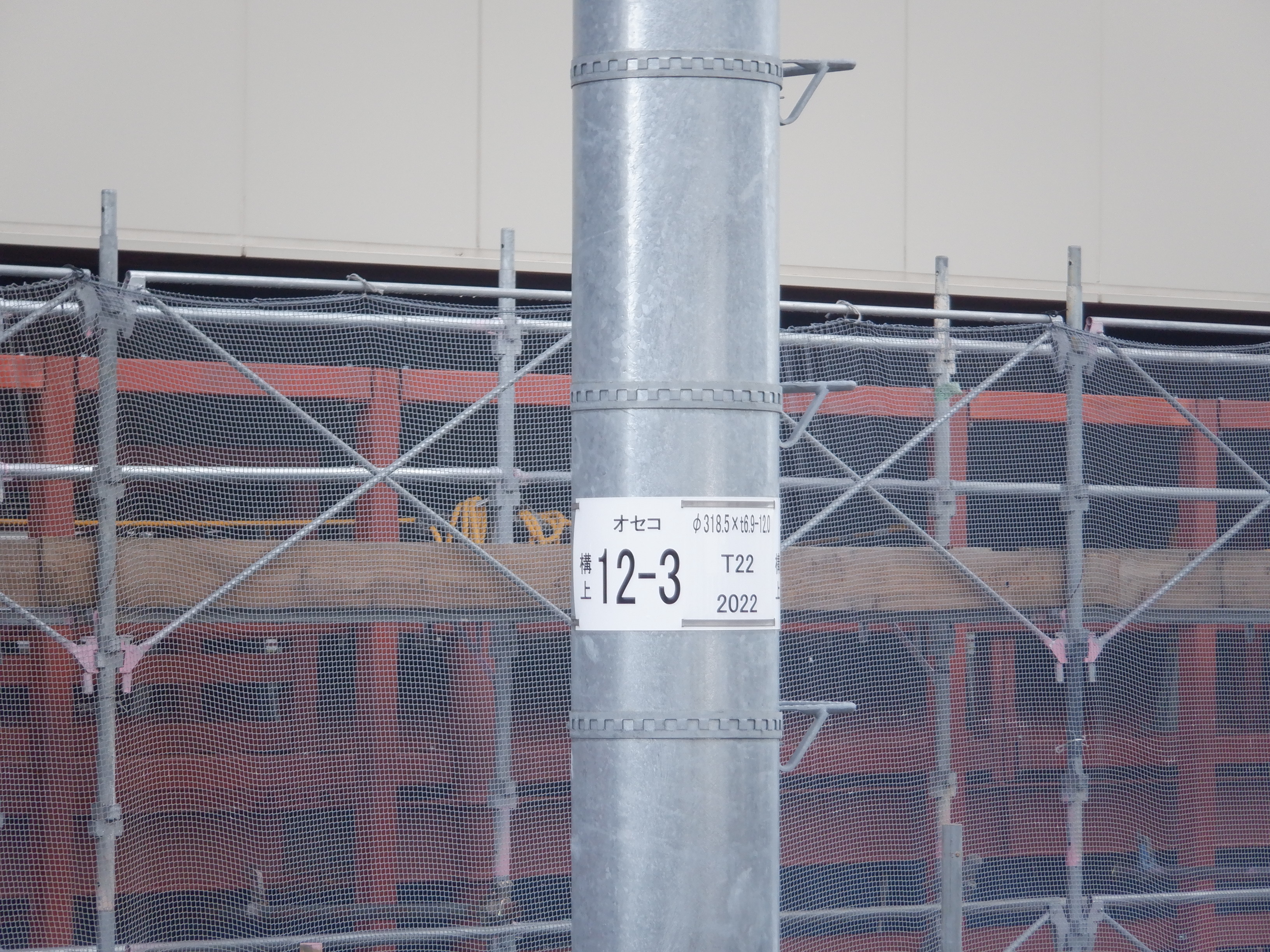 「オセコ」の表示があるものに差し替えられていない架線柱。