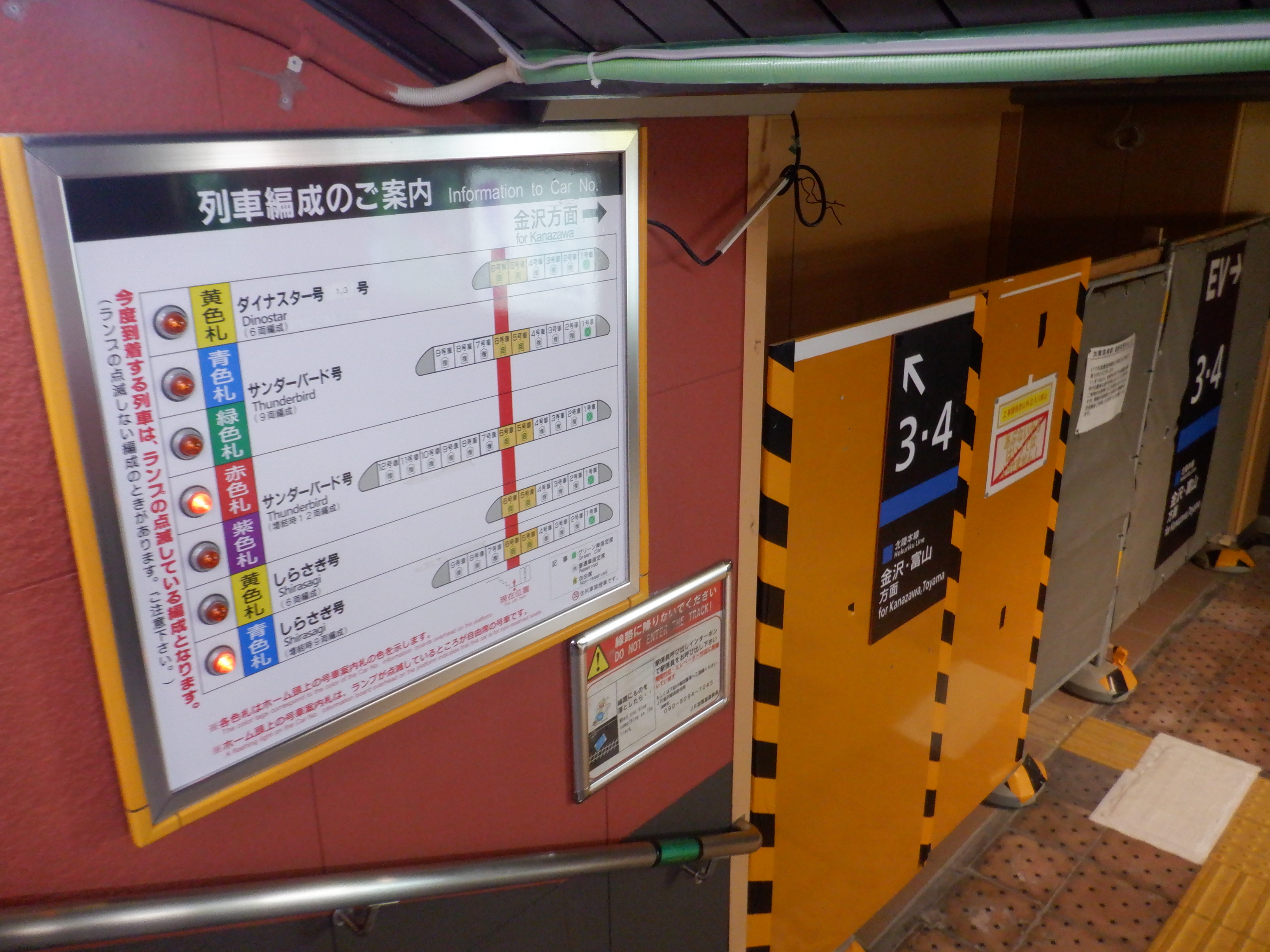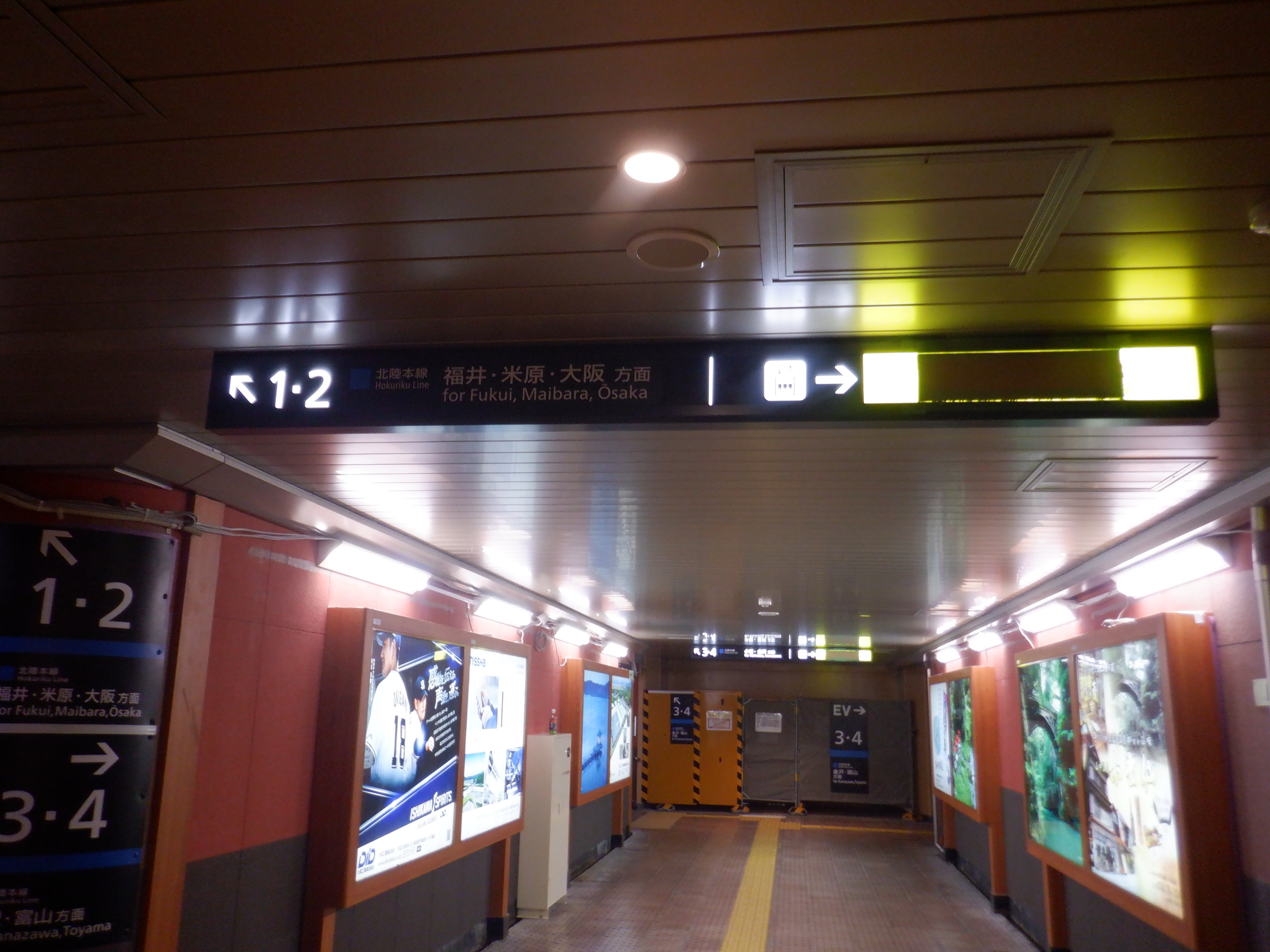 地下道の3・4番のりばの案内両面。