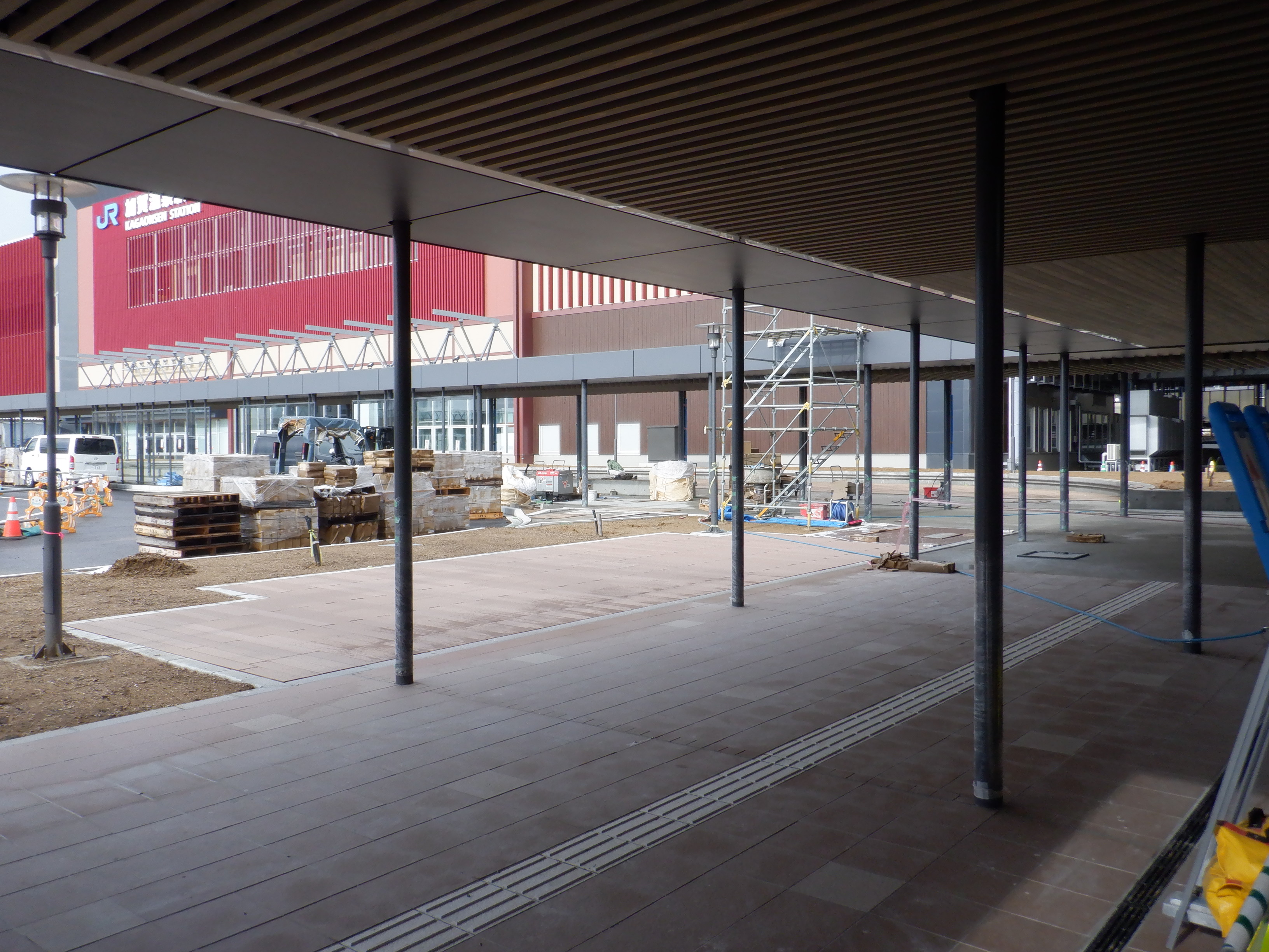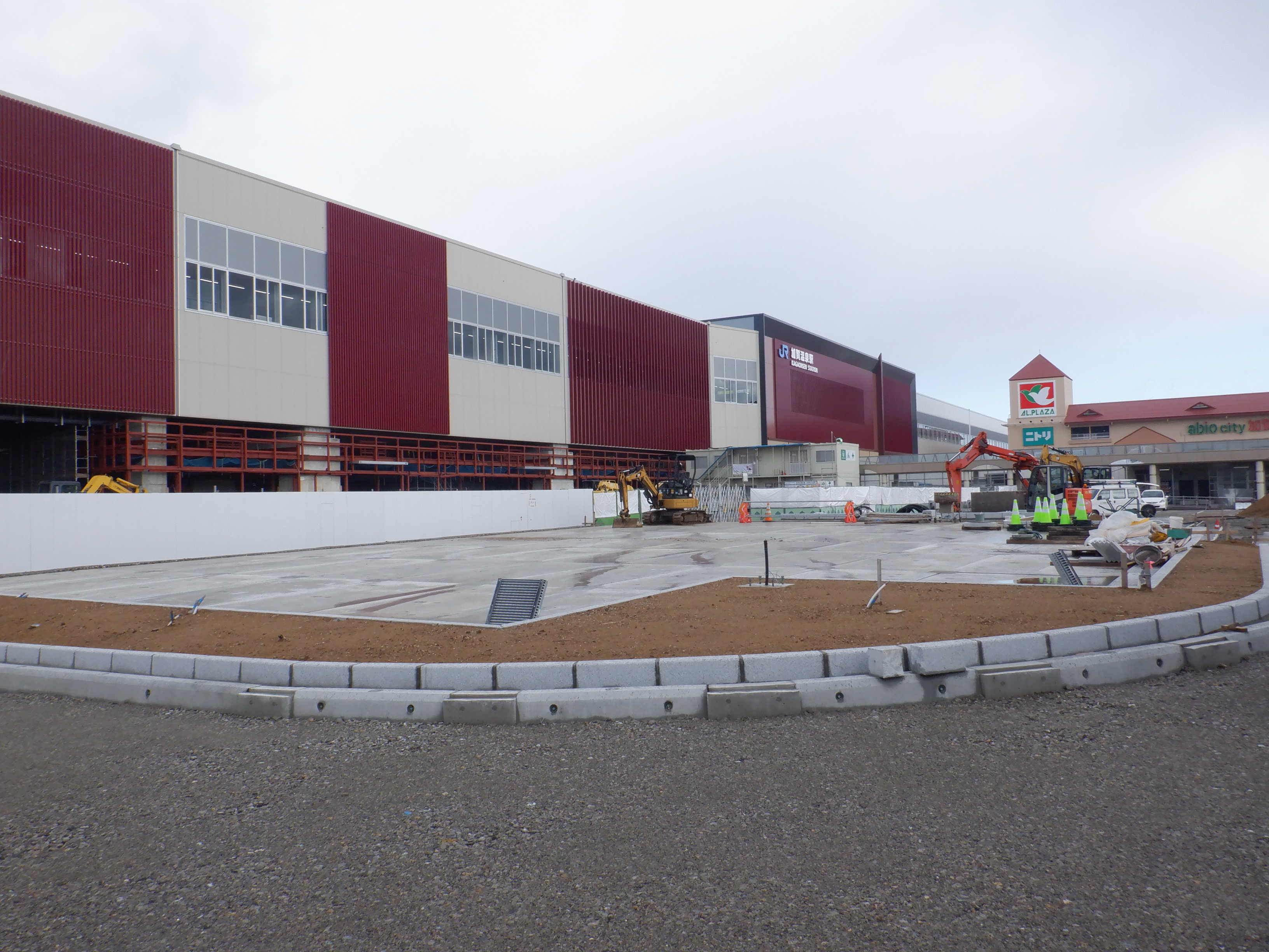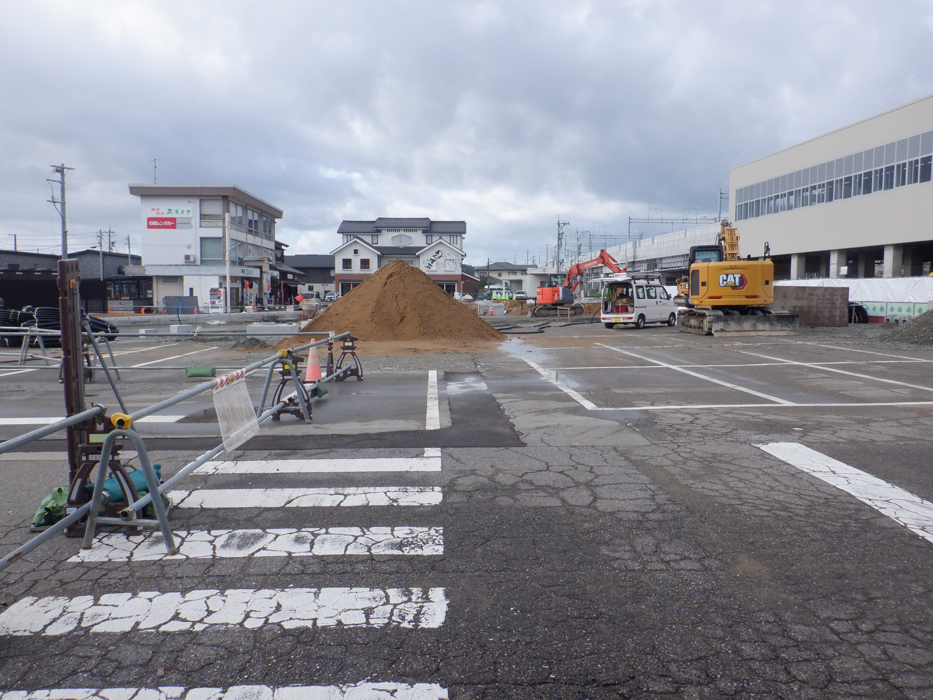 北口の駅前広場整備中の様子。