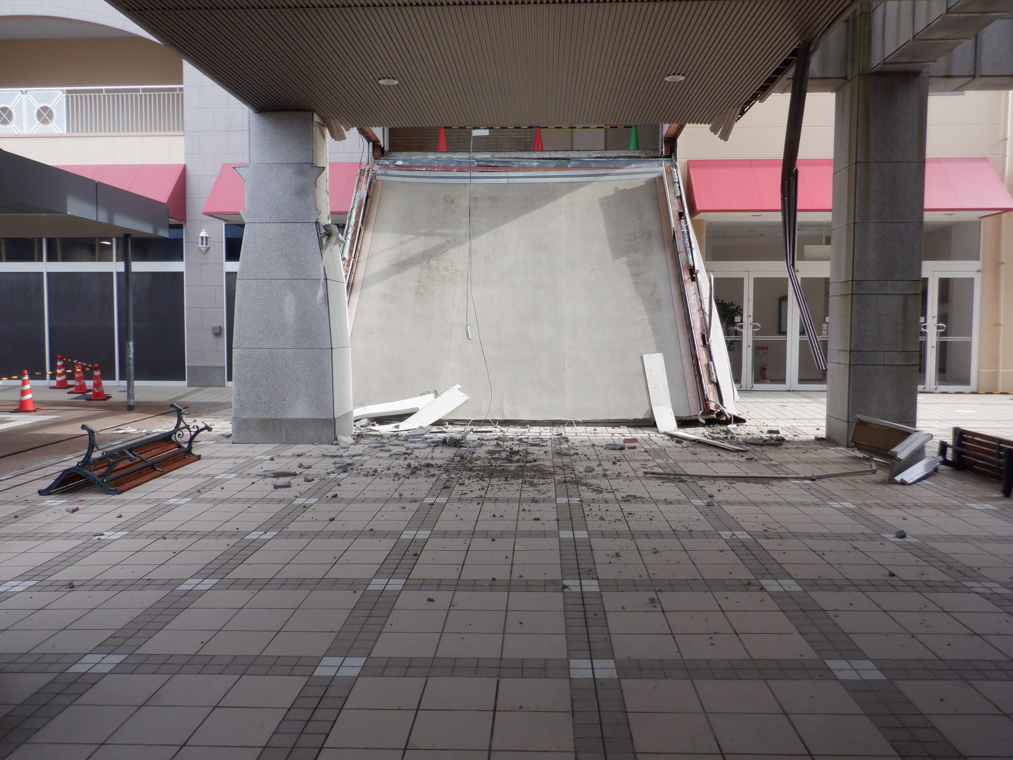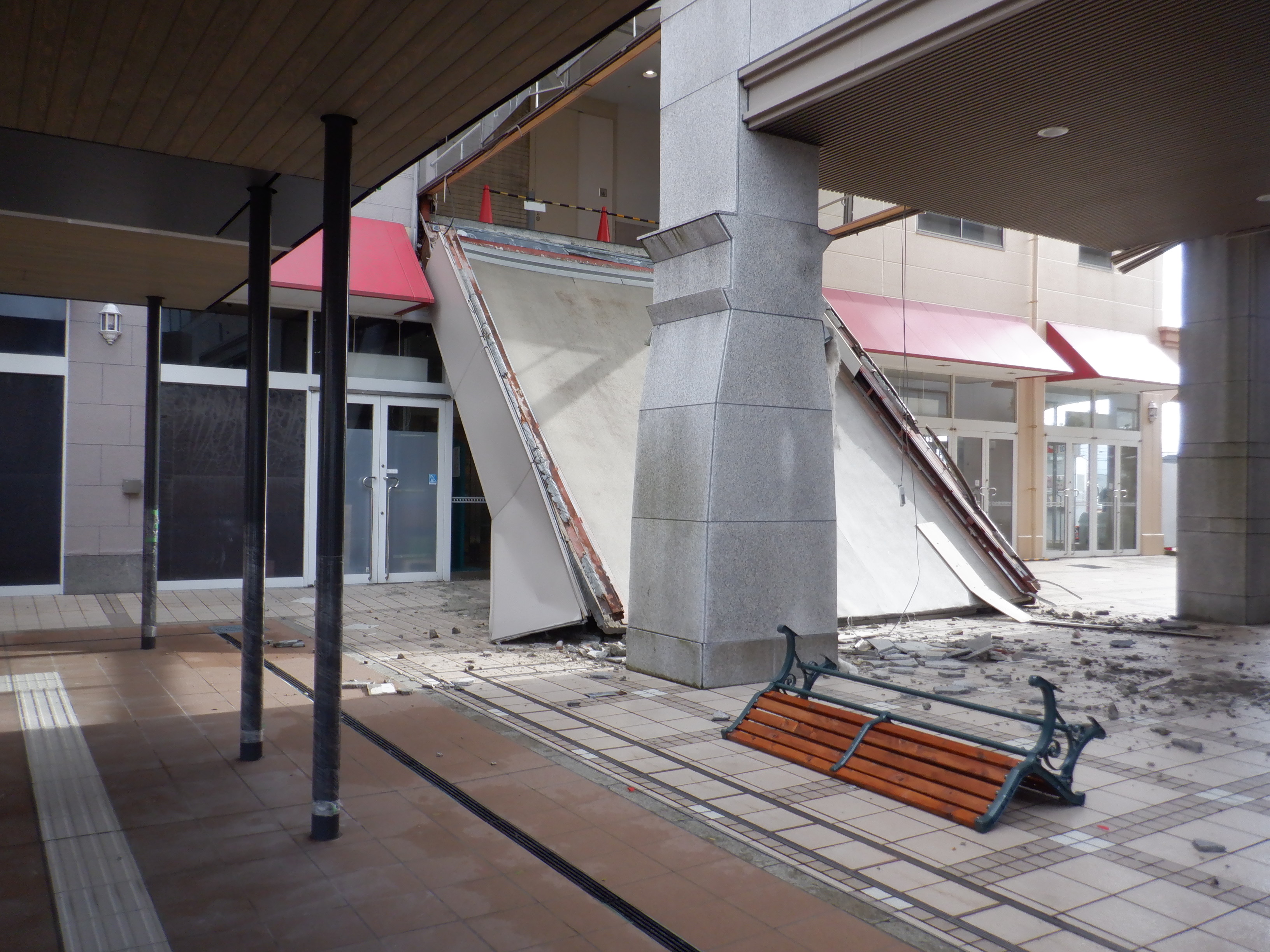 2024年の正月休みの間なので、ほぼ年越しの様子、ではありますが、元日の能登半島地震の影響によりアルプラザとアビオシティホールの接続部分が大きく破損したため、年越しの様子から大きく変化があります。次回分の掲載枚数が多いため、今回以降、1ページに1回分の構成とします。