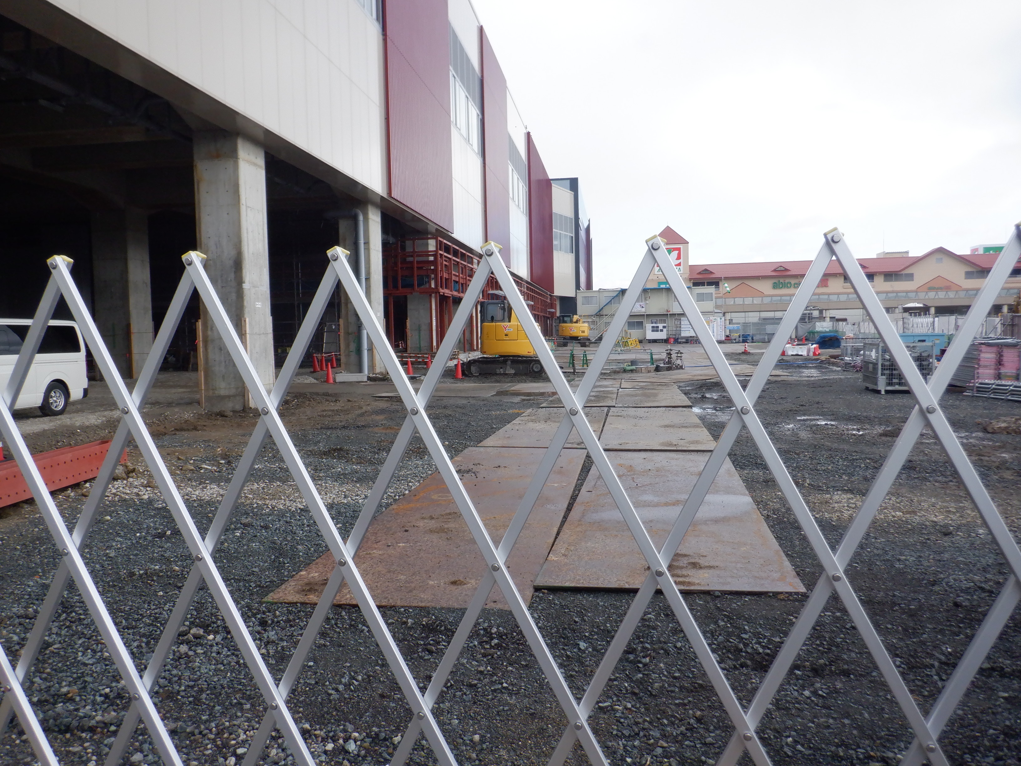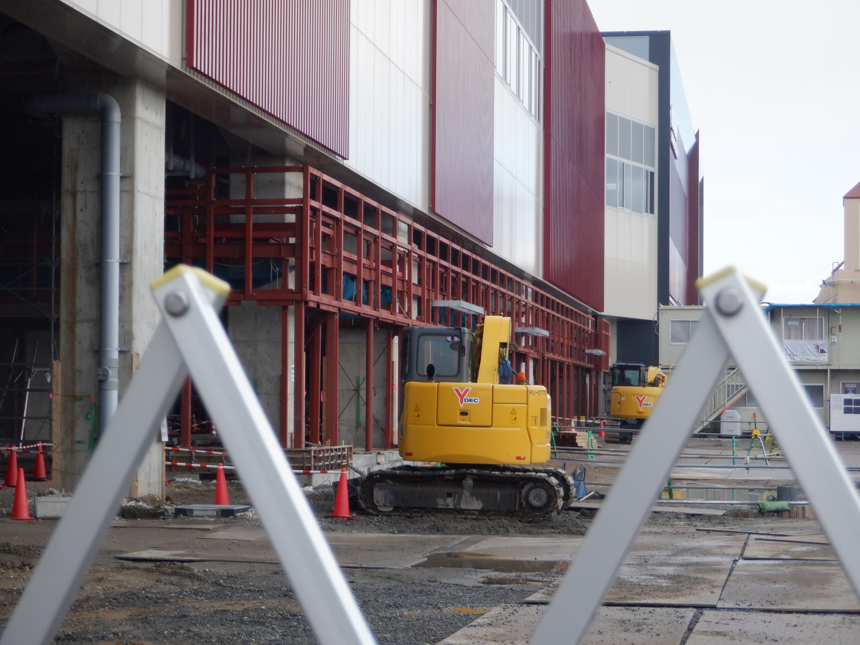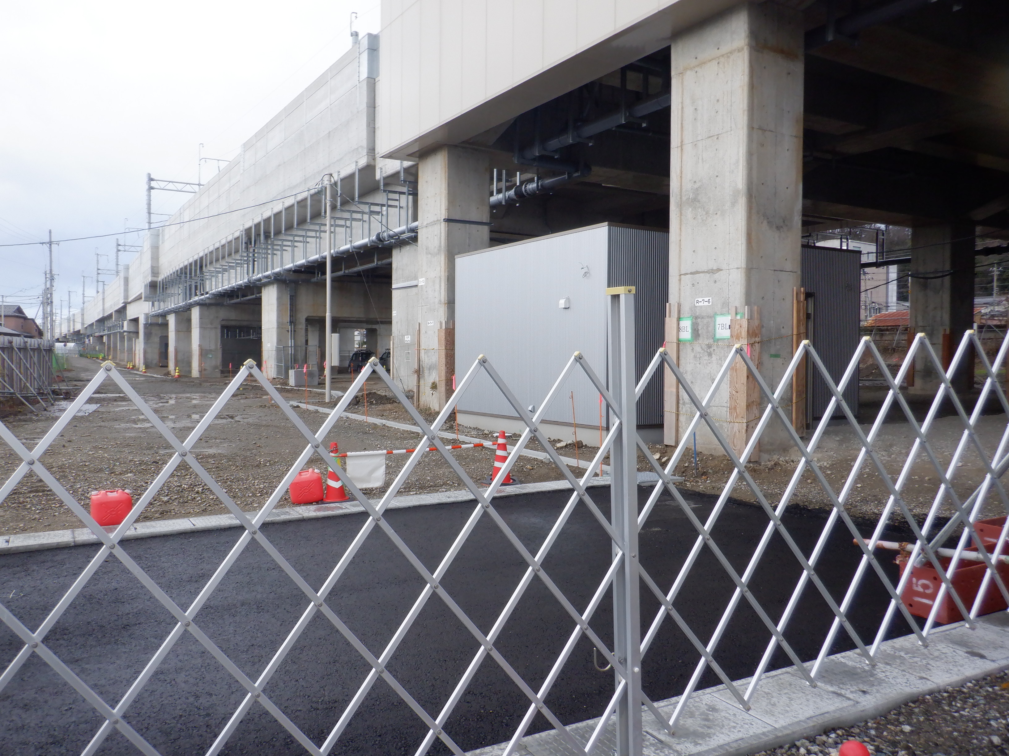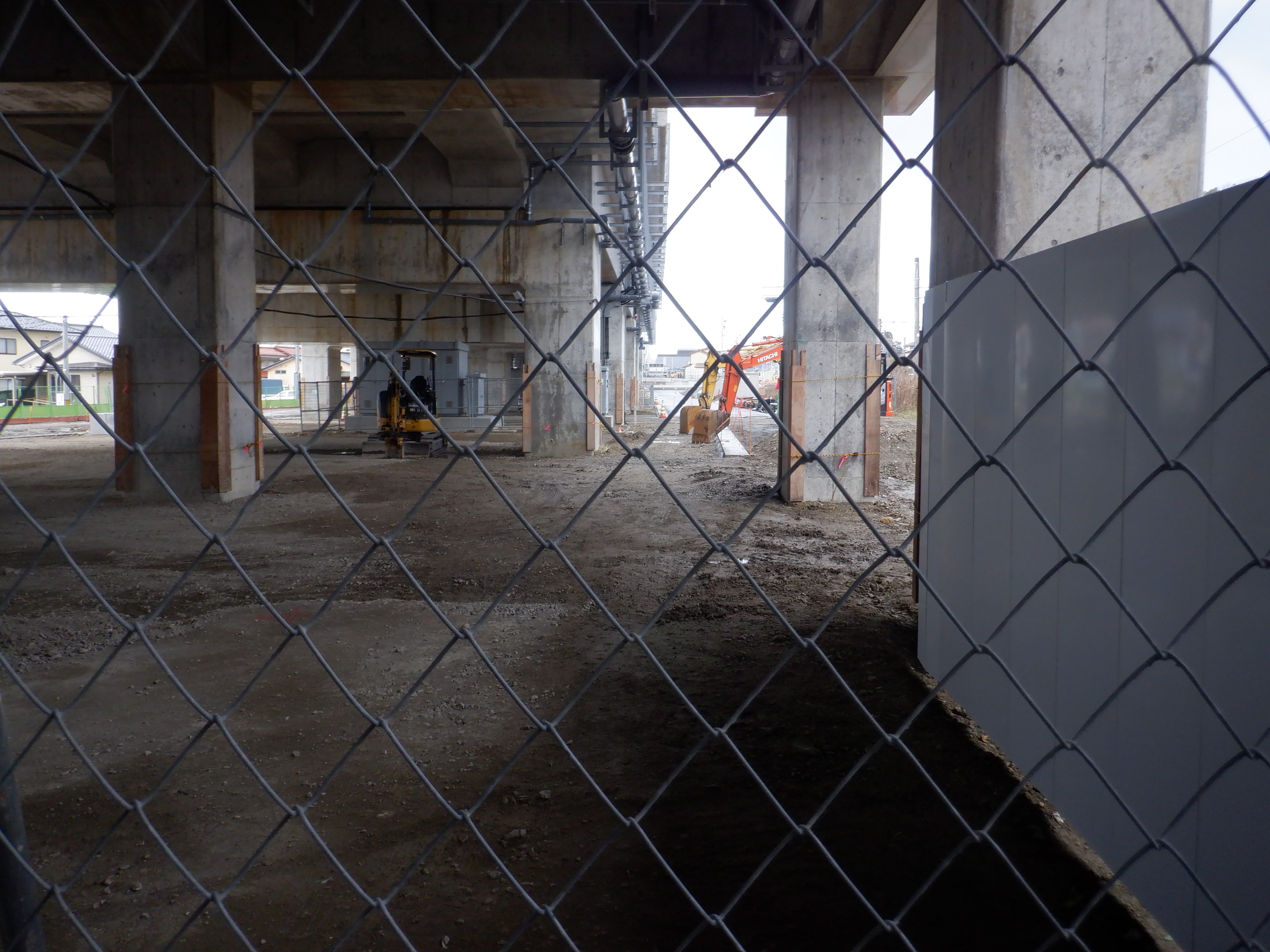 高架下部都市施設(コンビニ・待合室等)を建設中のところ。