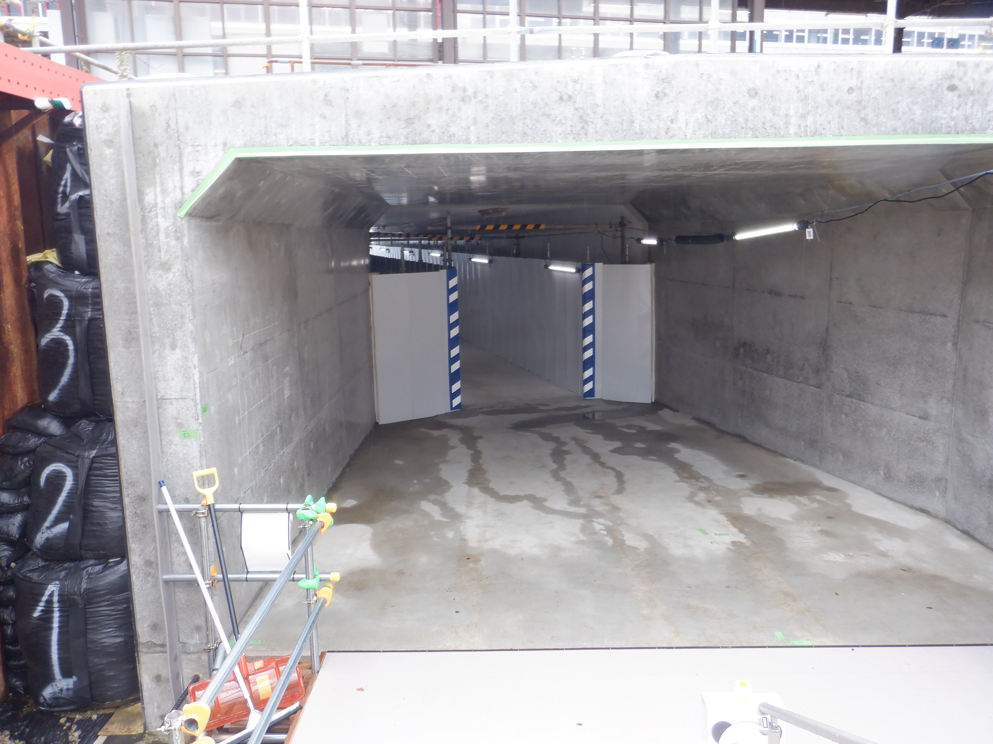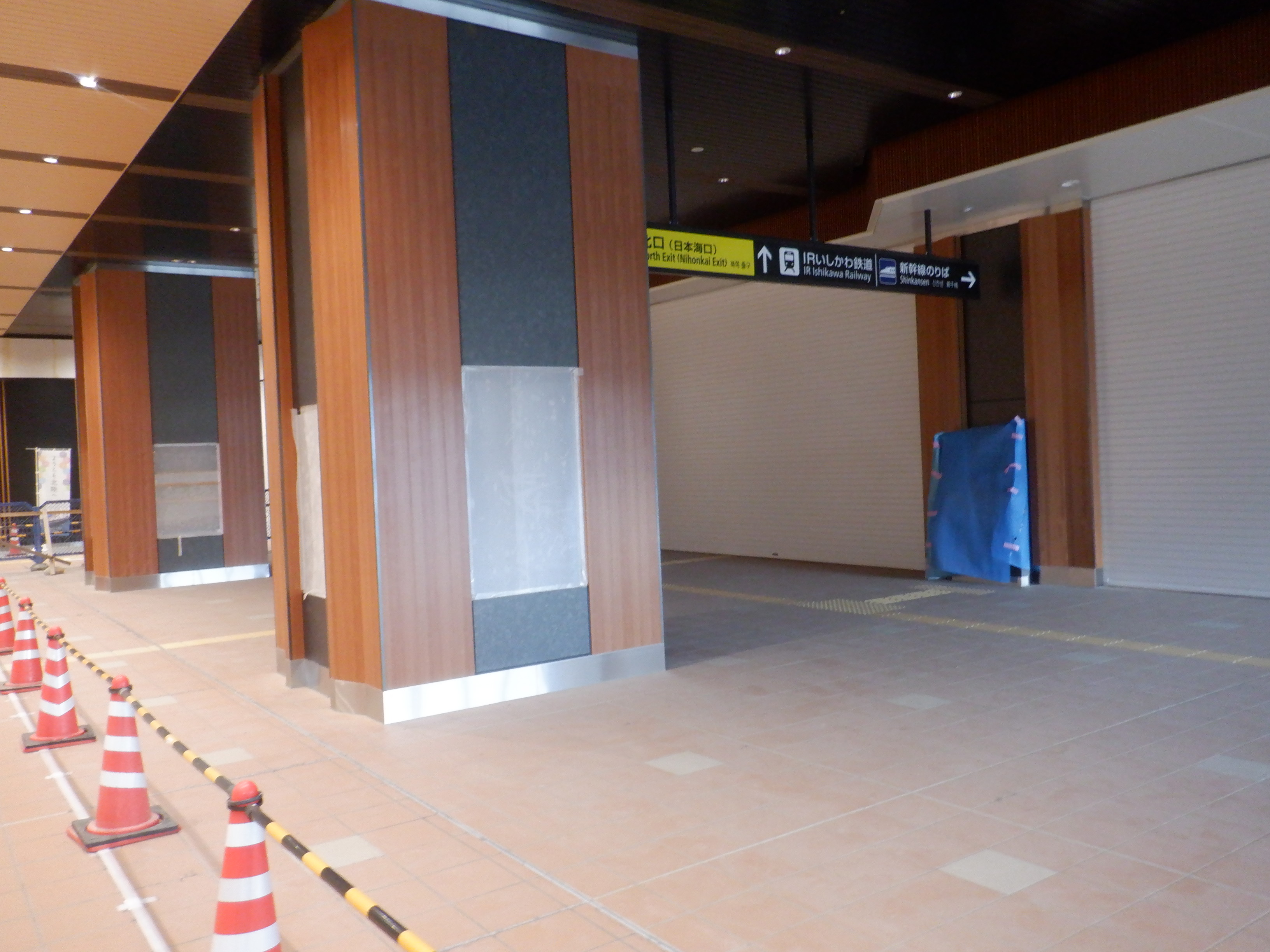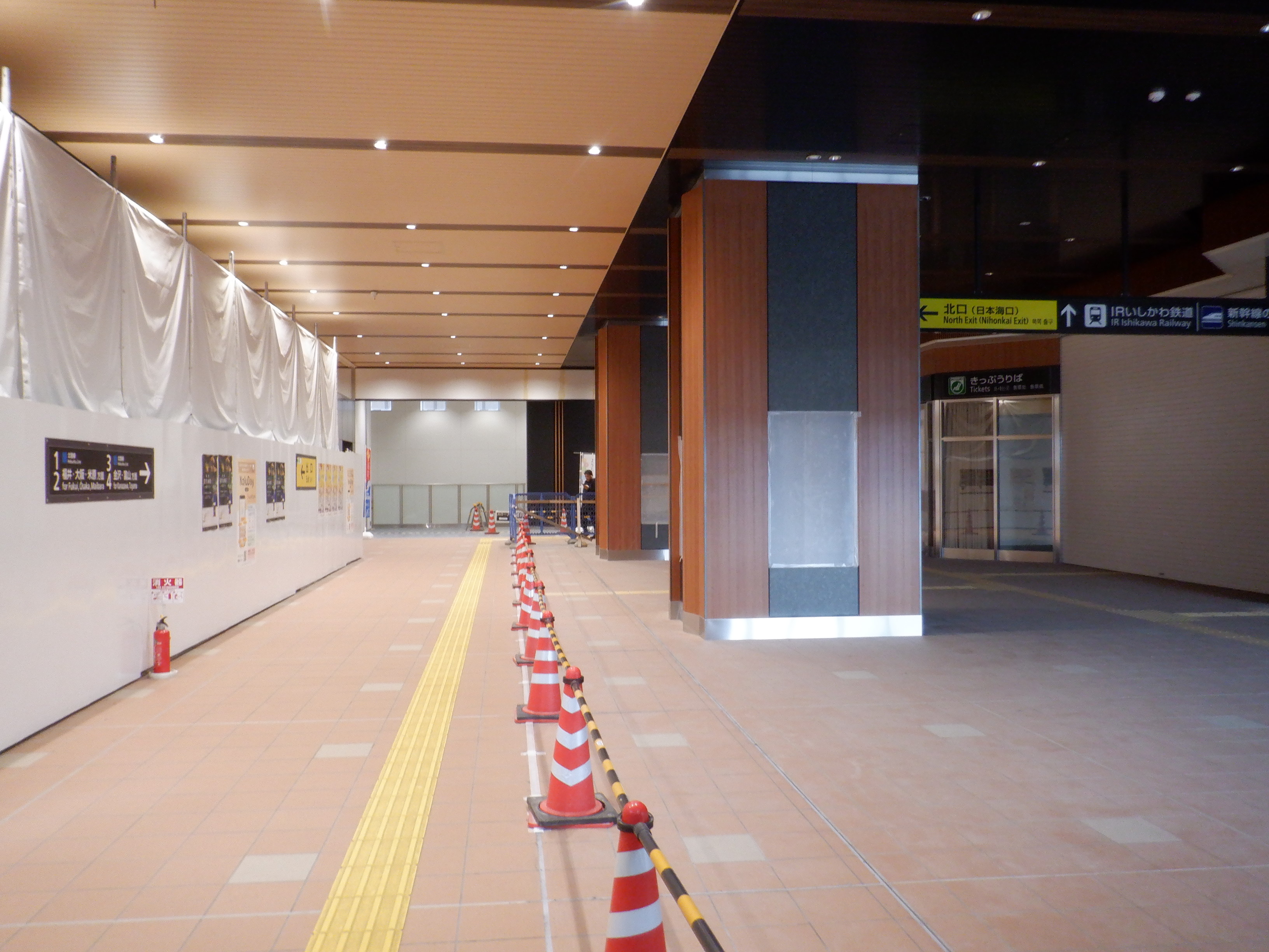仮設通路となっている新幹線のりばコンコースとなるところ。