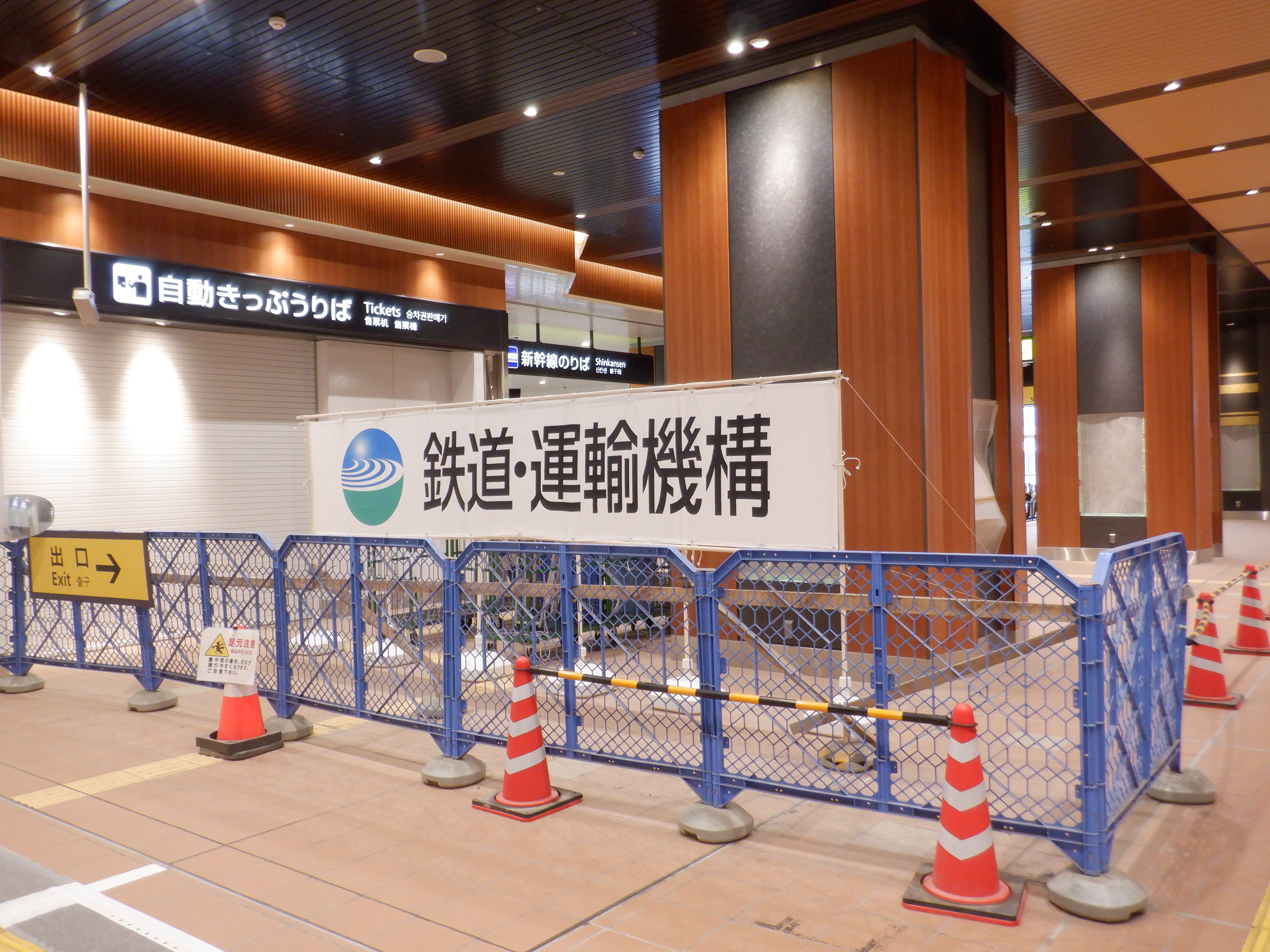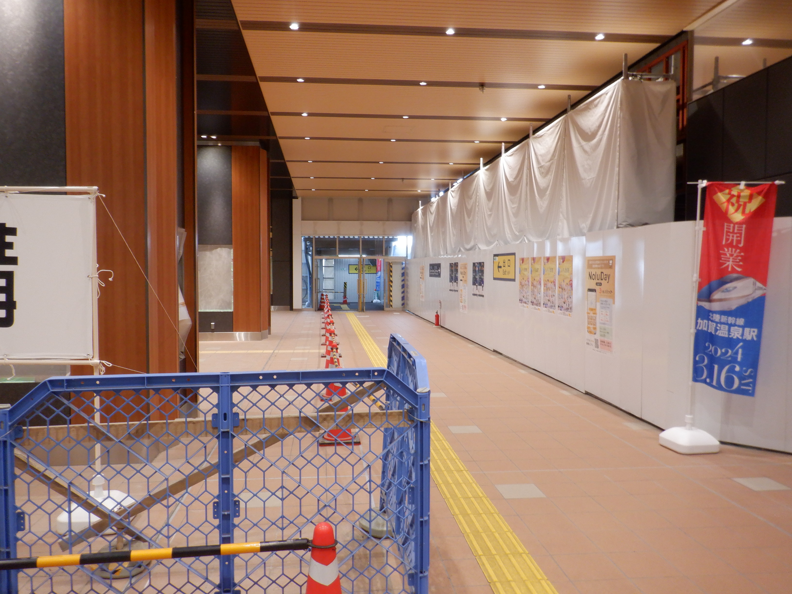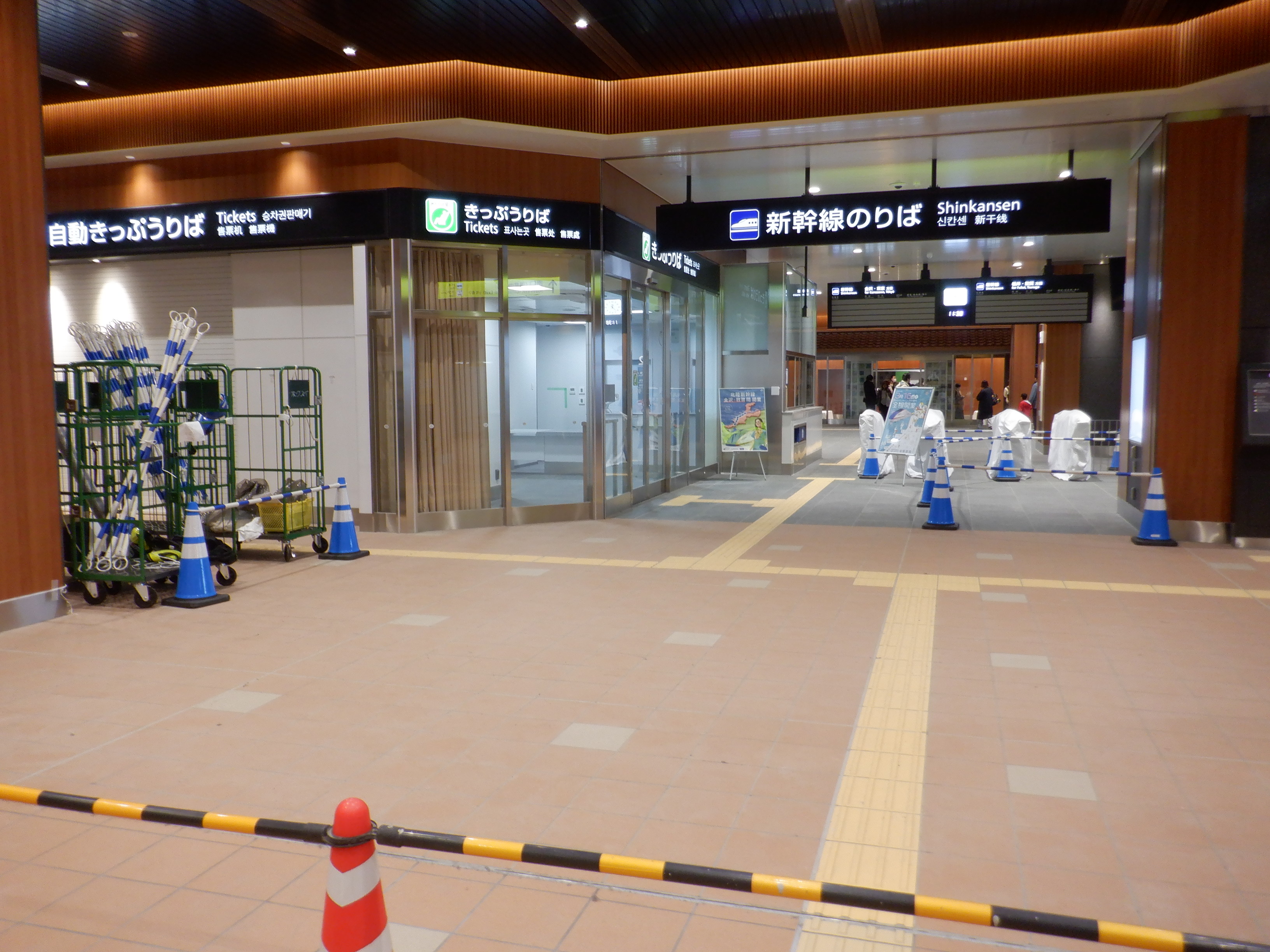仮設通路となっている新幹線のりばコンコースとなるところ。今回はシャッターが開いていて、改札口とその先が見えます。珍しいです。