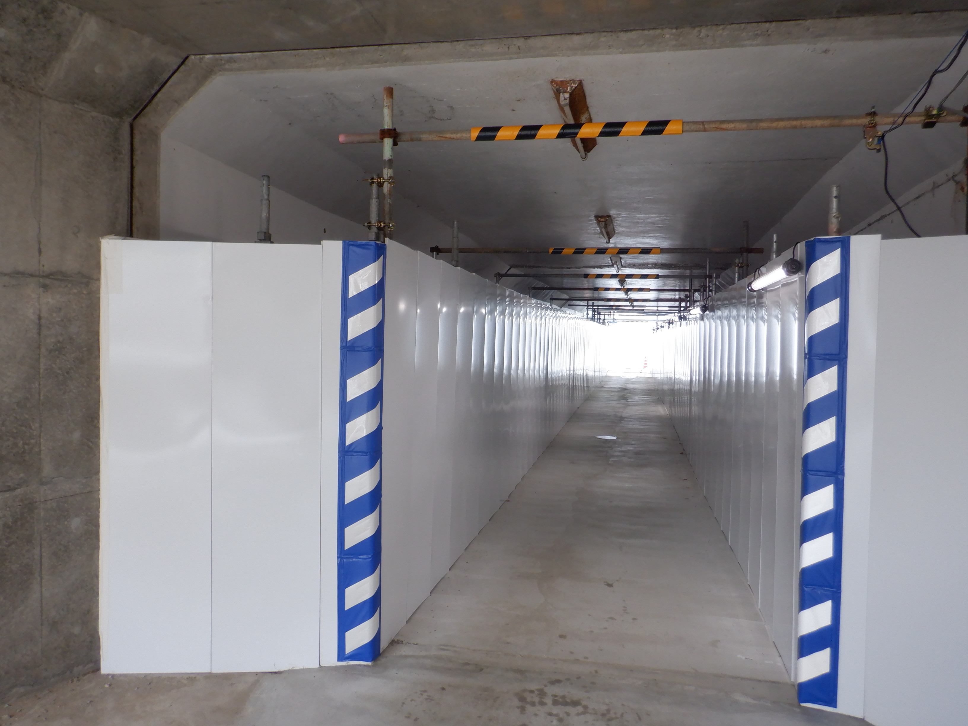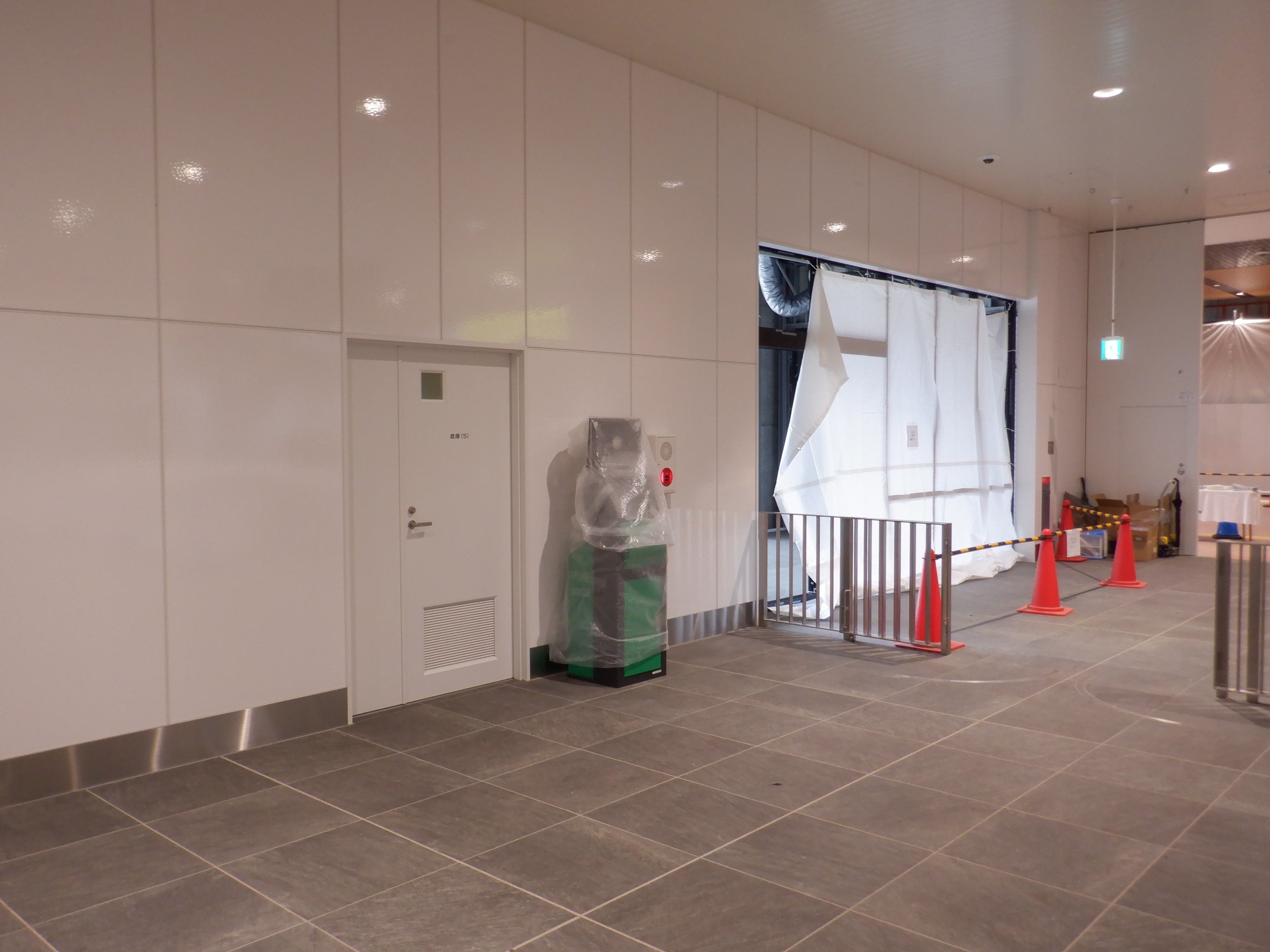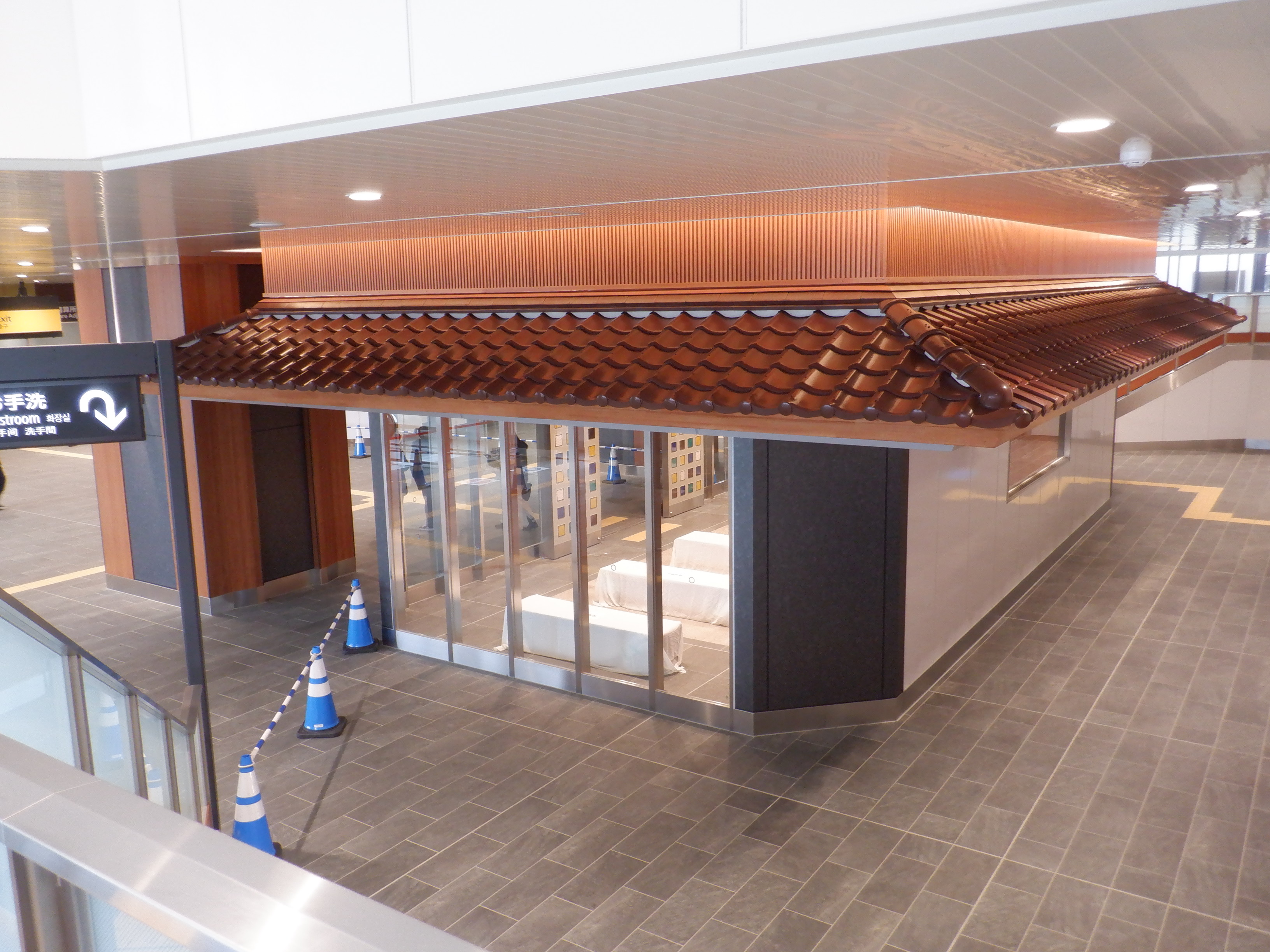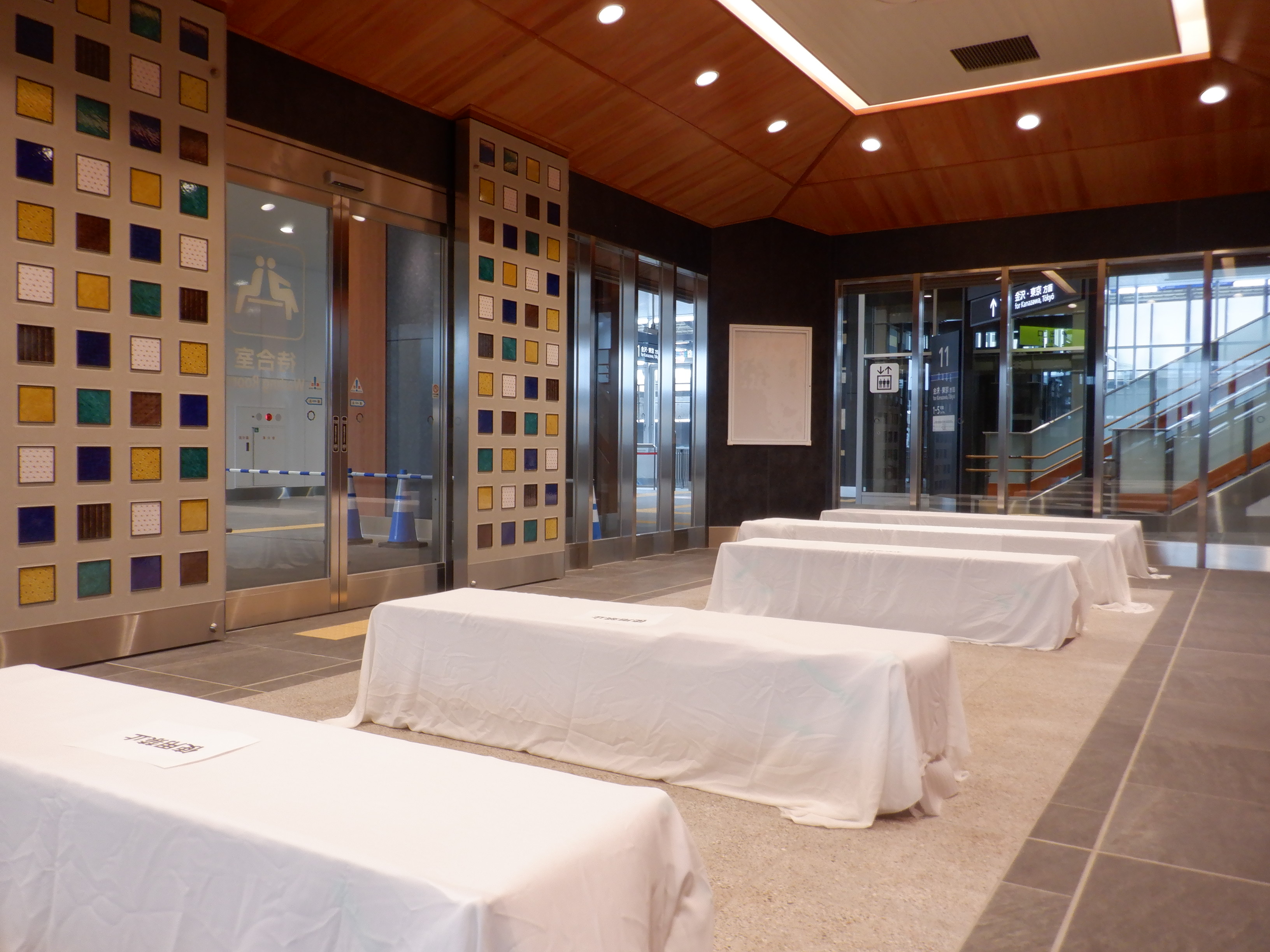 仮設通路となっている新幹線のりばコンコースとなるところ。今回はシャッターが開いていて、改札口とその先が見えます。珍しいです。