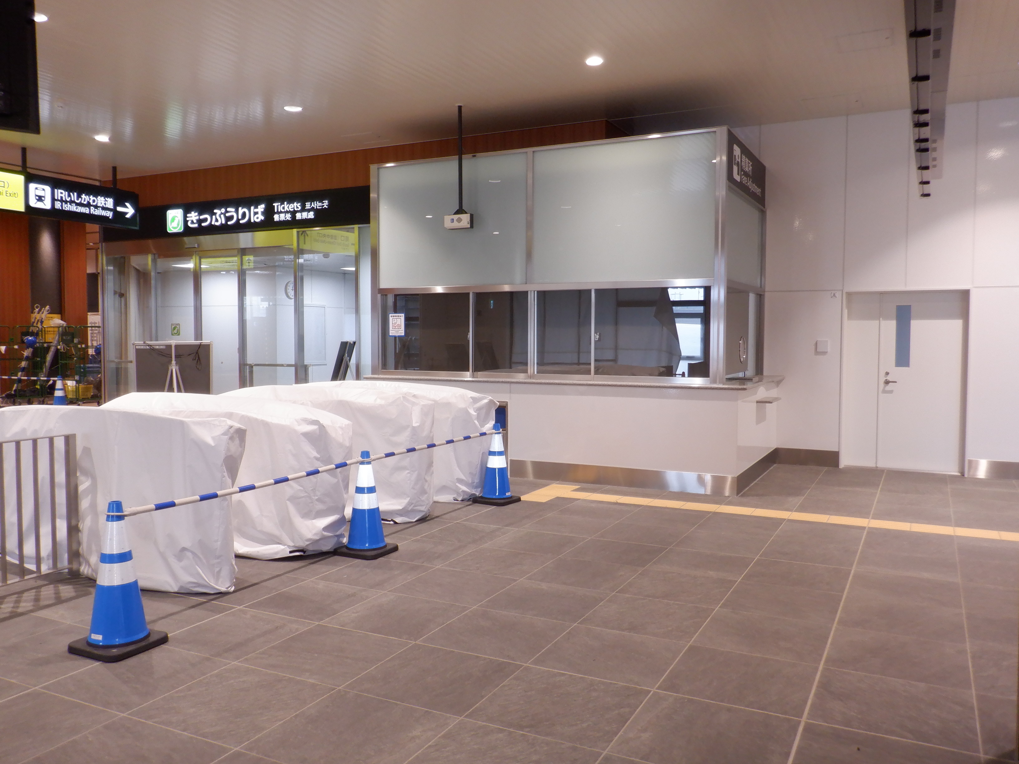 IRいしかわ鉄道の改札口となるところ。券売機が設置されました。