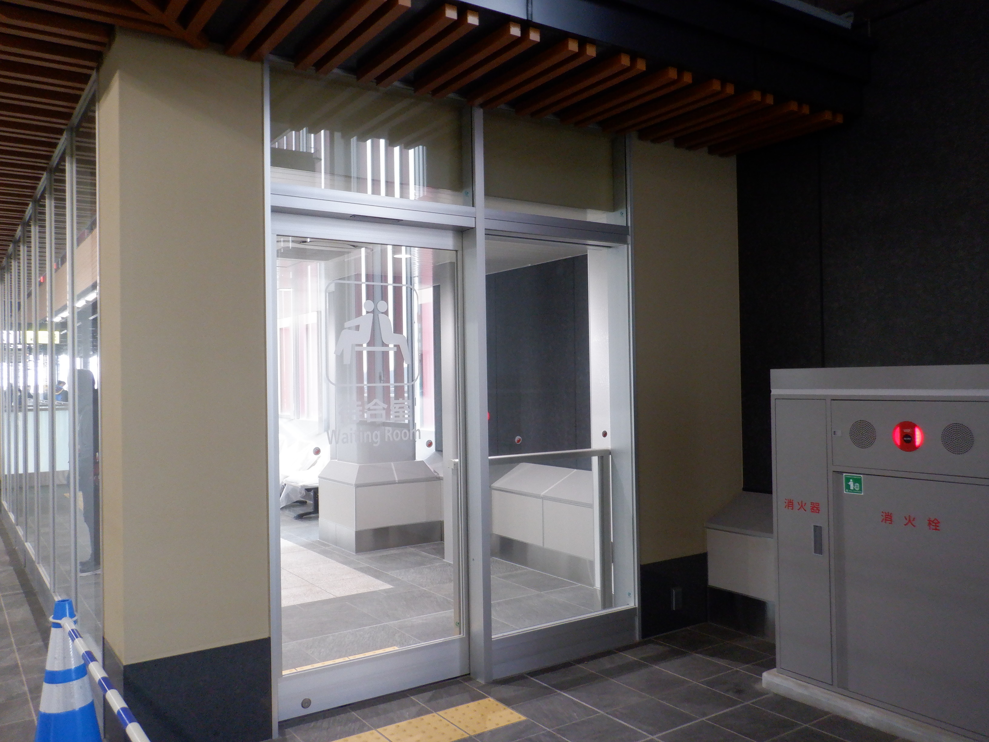 待合室とその前にある消火栓。