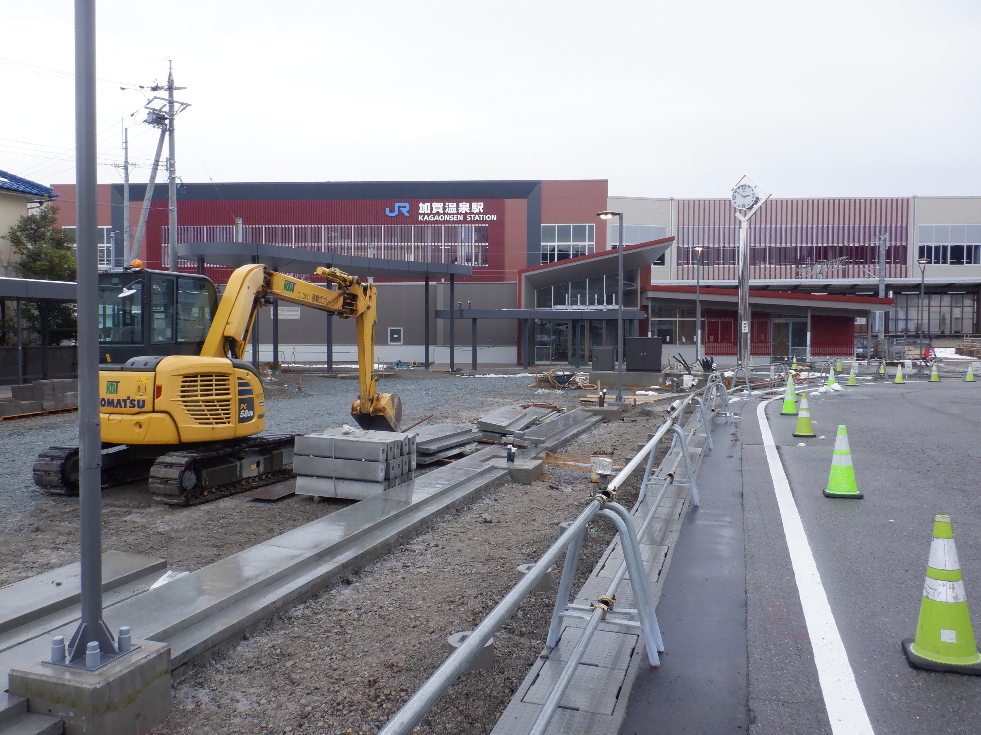 北口の駅前広場整備中の様子。