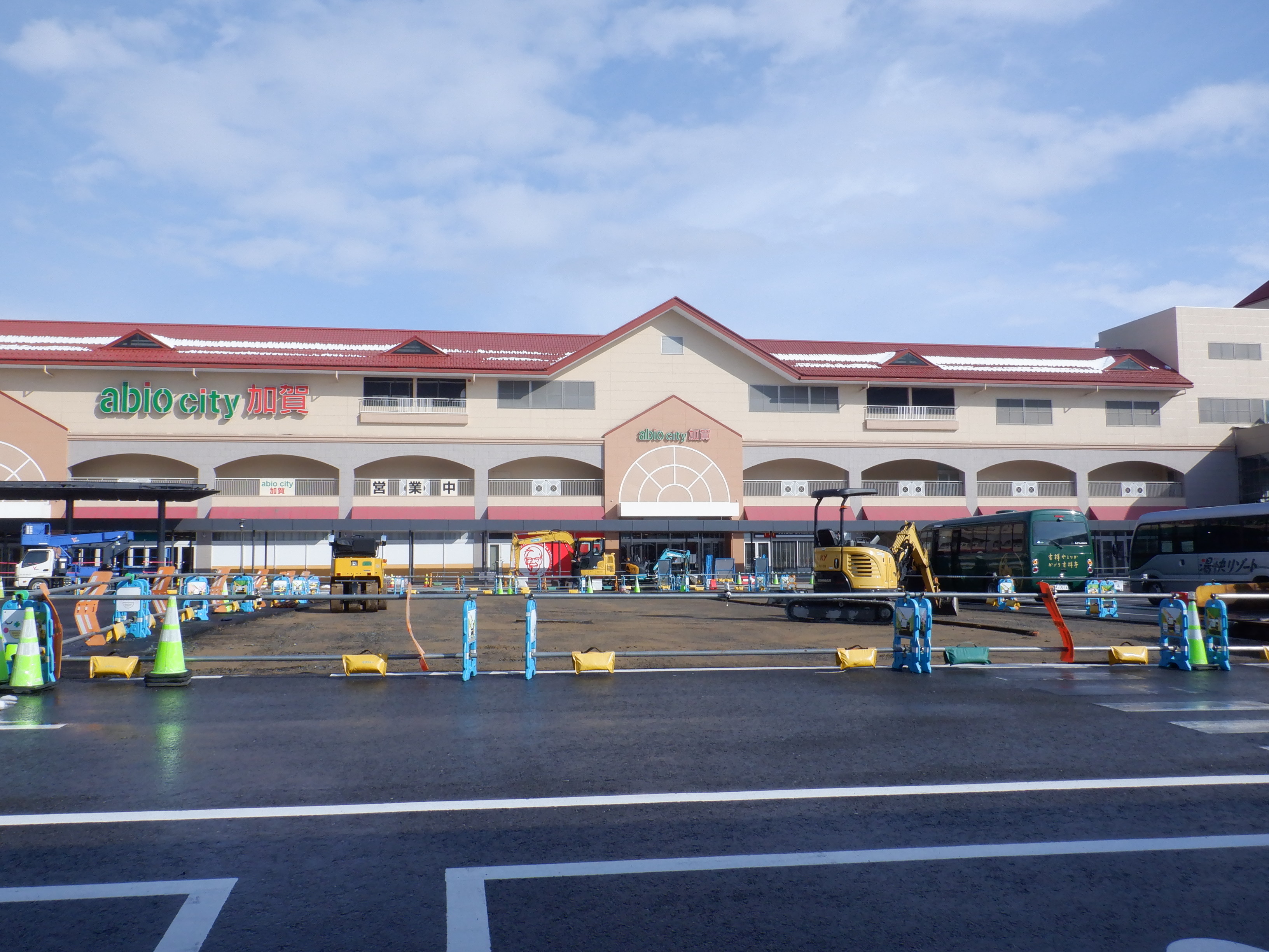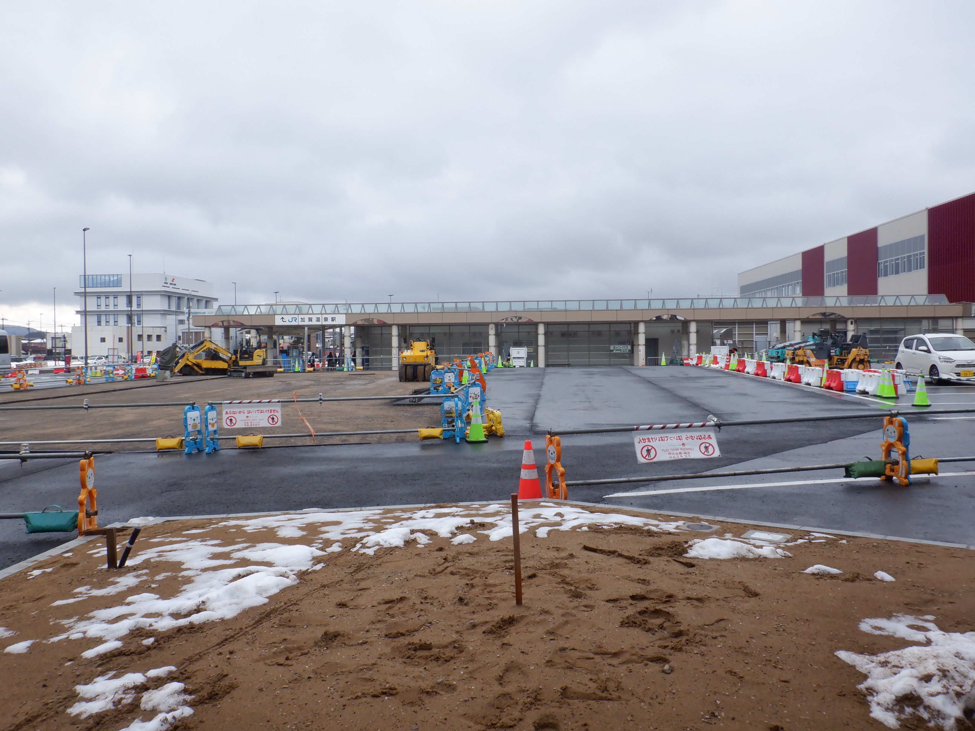 12番のりばから見た仮設駅舎とアルプラザの間の整備中のところ。