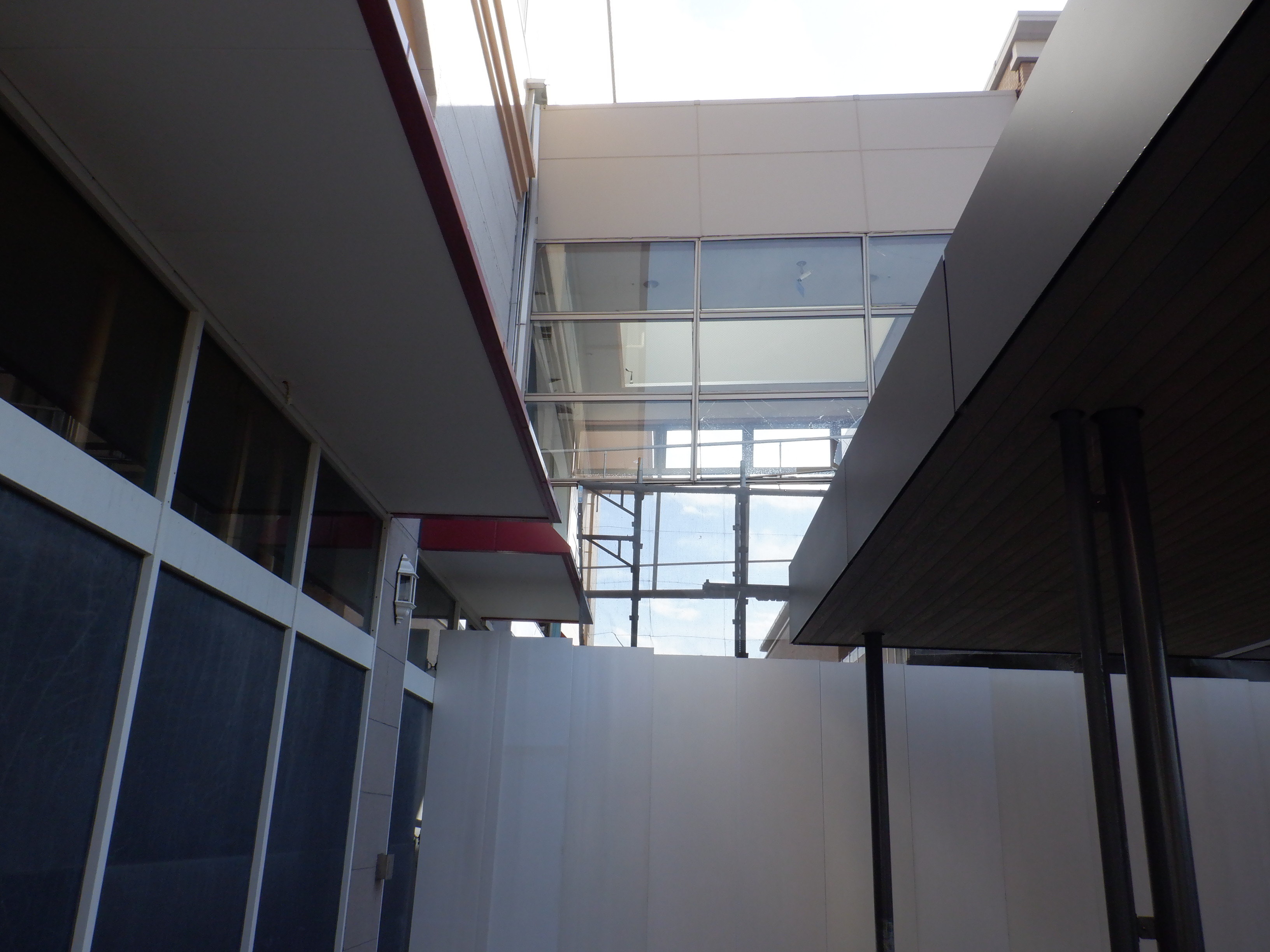 北口への迂回通路から見たレンタカー屋さんの建物となるところ。